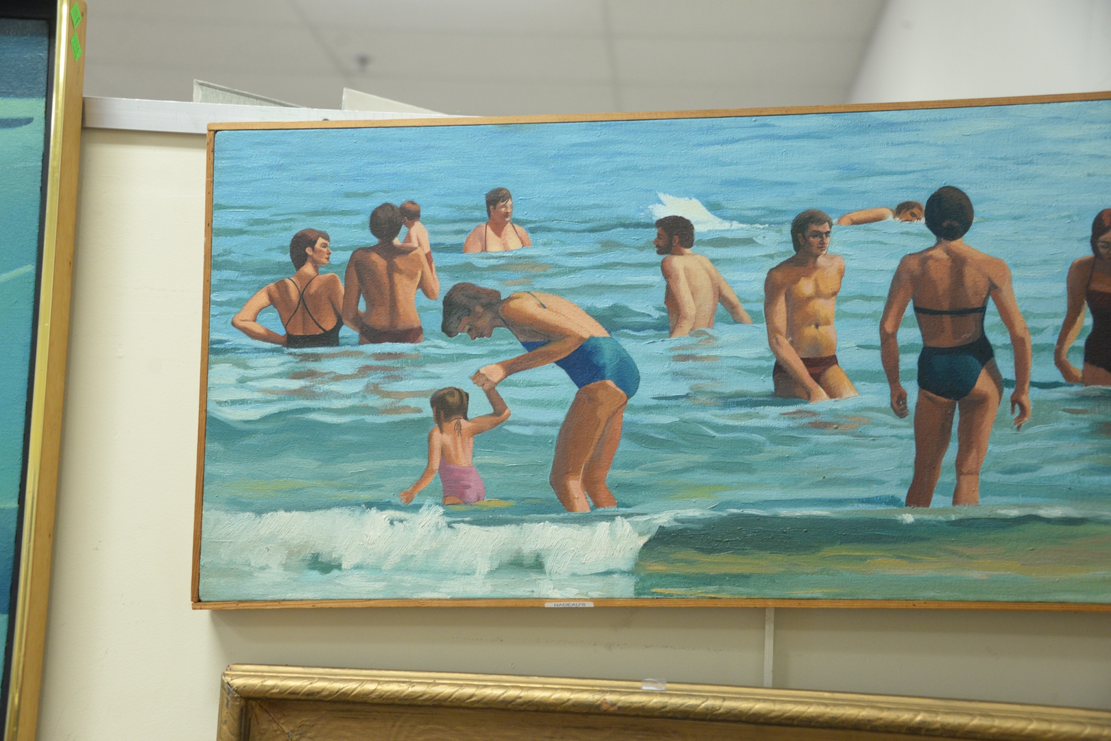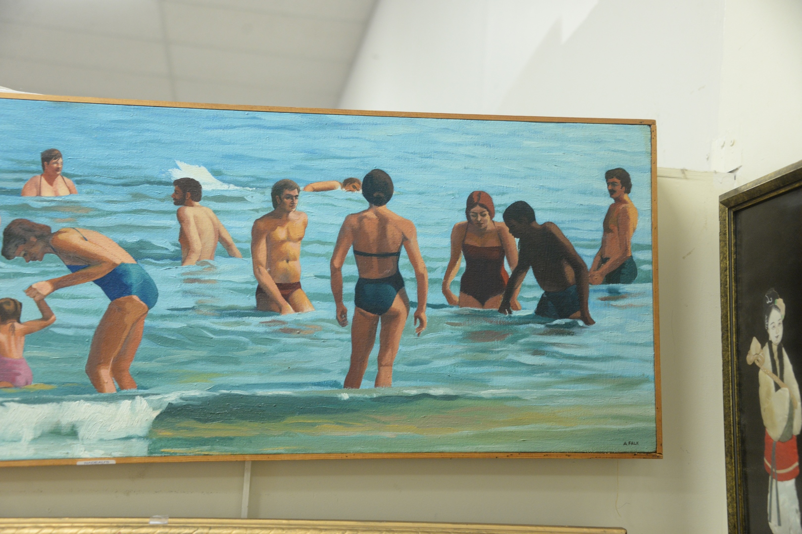 Lot 470: Alan Falk (American, b. 1945), Beach Scene, oil on canvas, signed lower right “A. Falk”, 15″ x 36 1/4″.