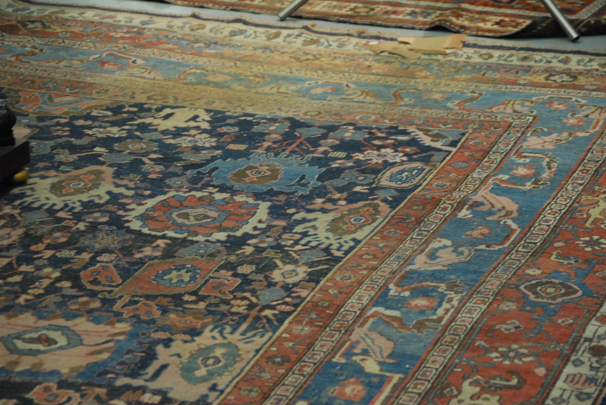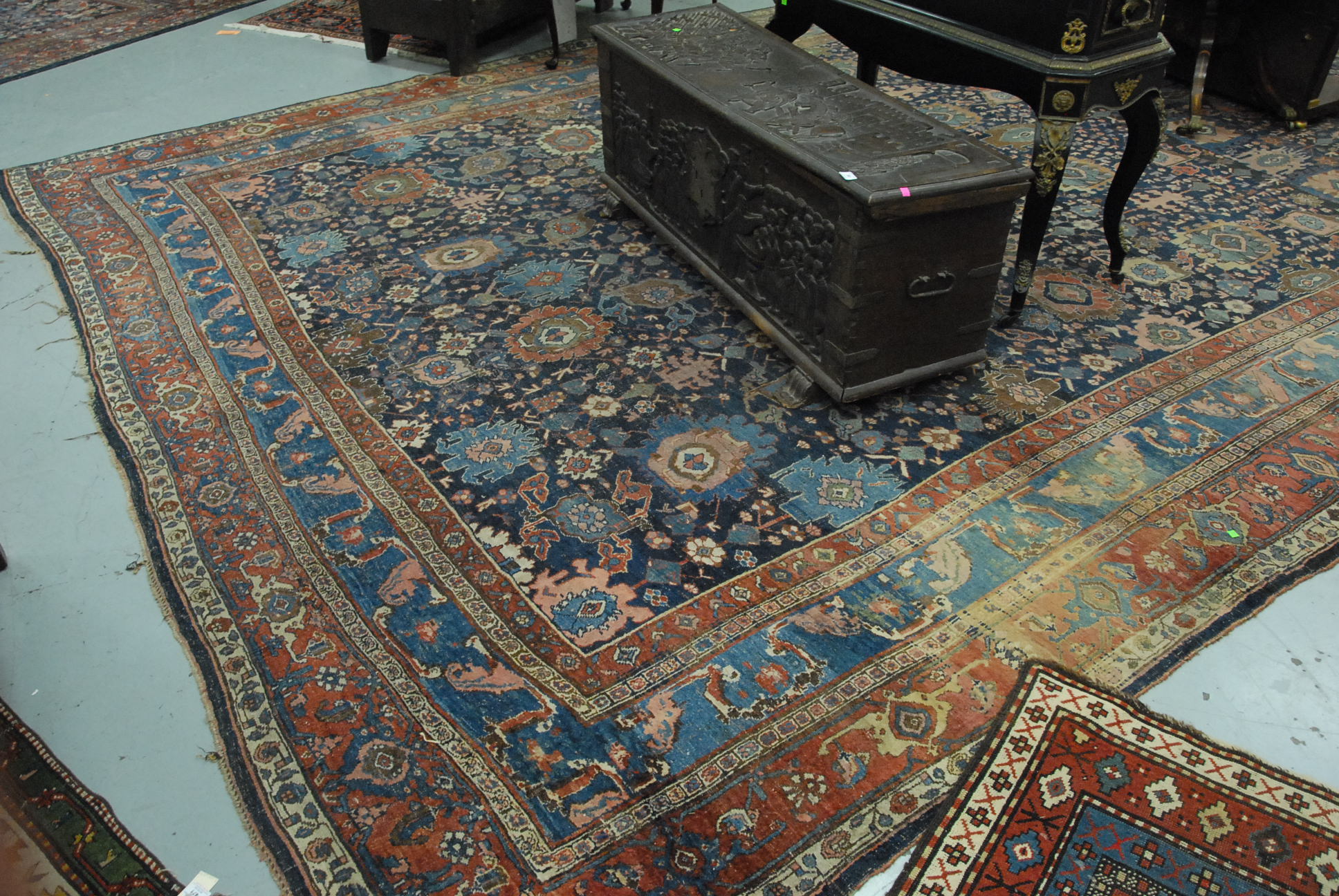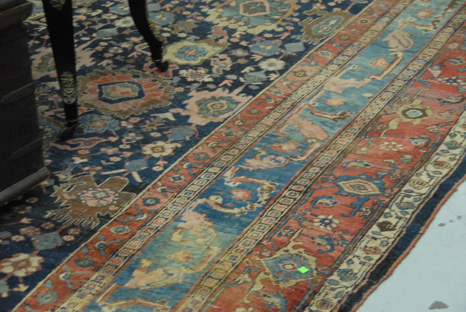Bidjar Oriental carpet, late 19th to early 20th century low, some staining. 12’3 x 19′