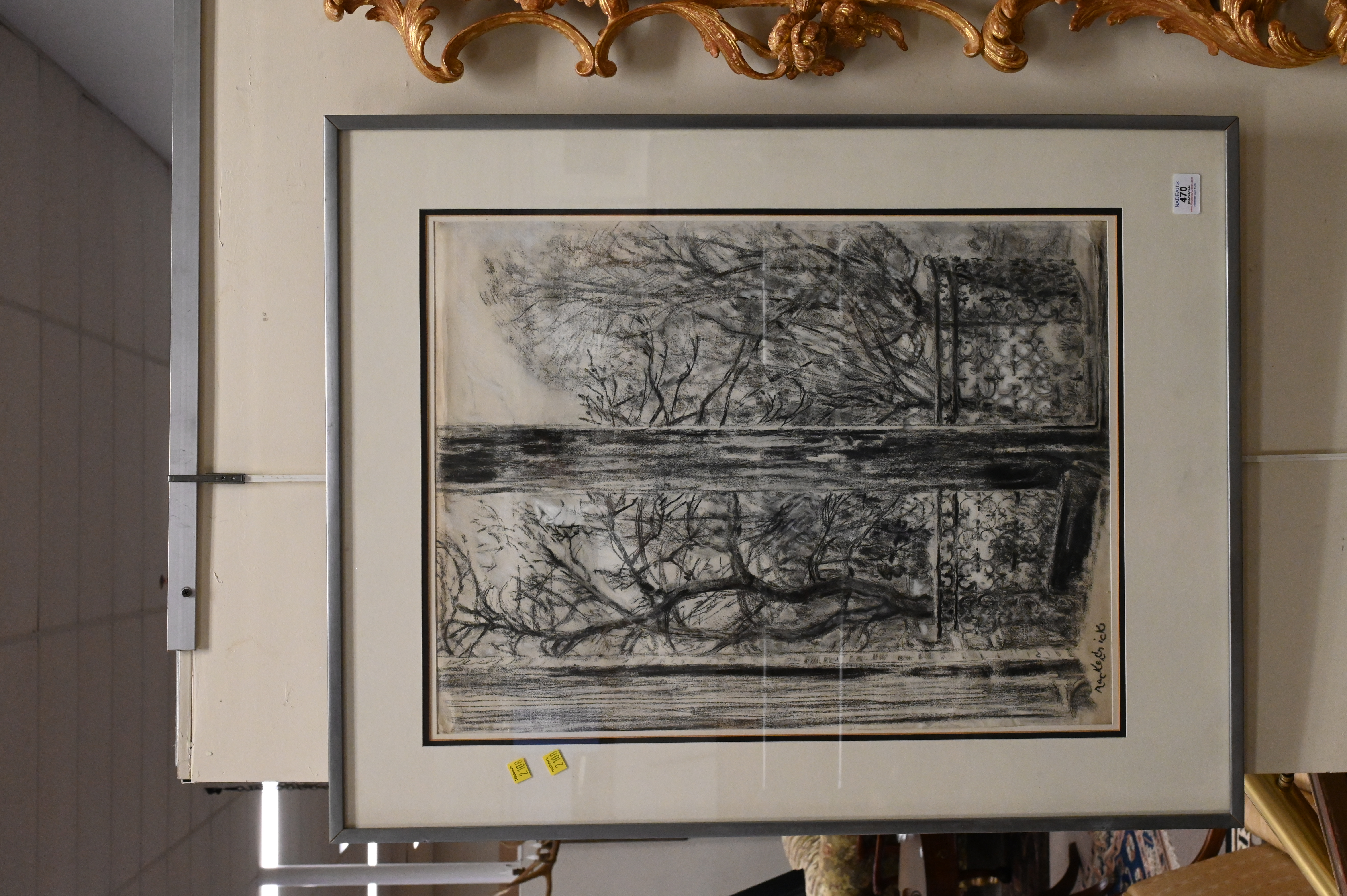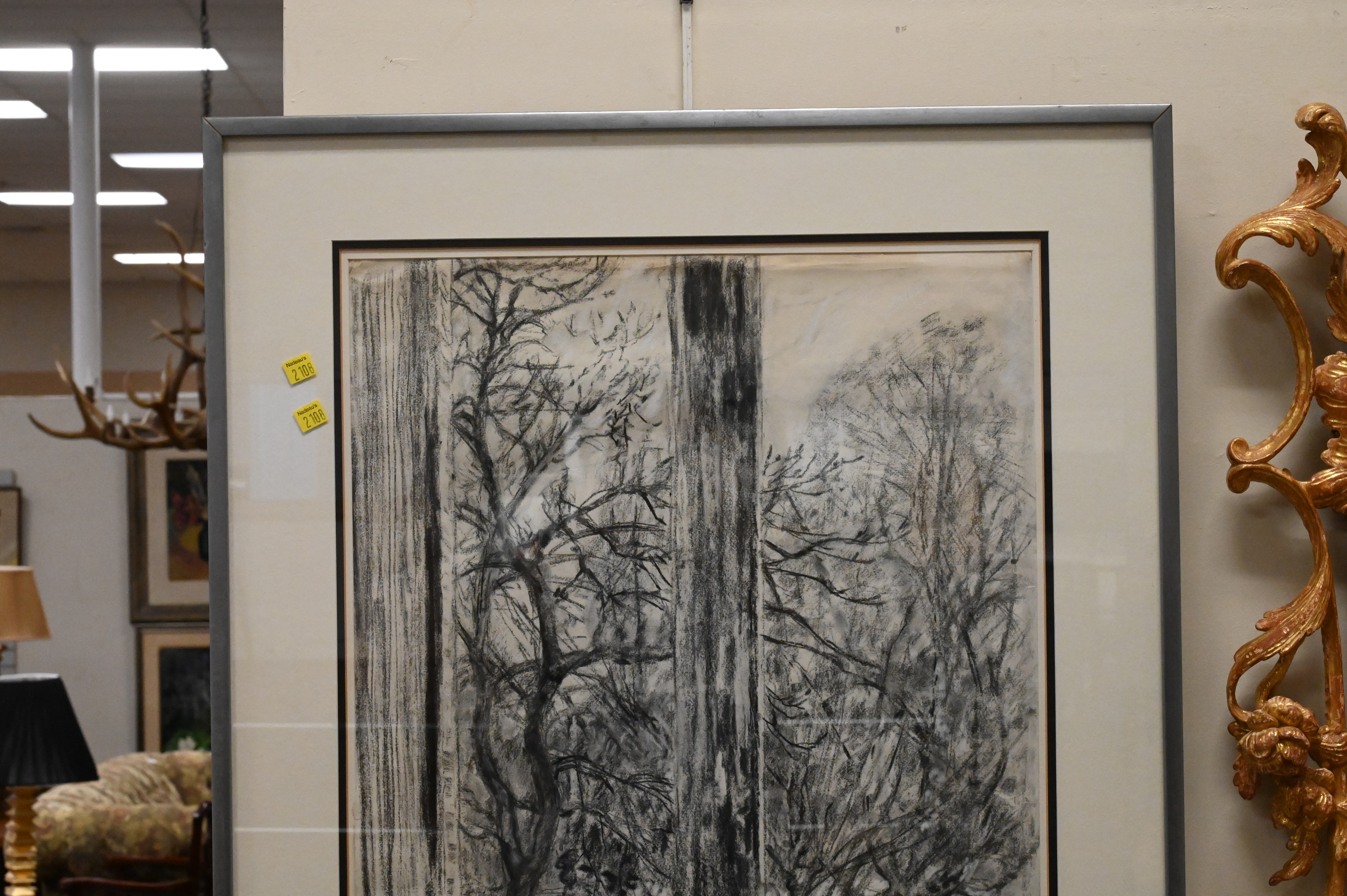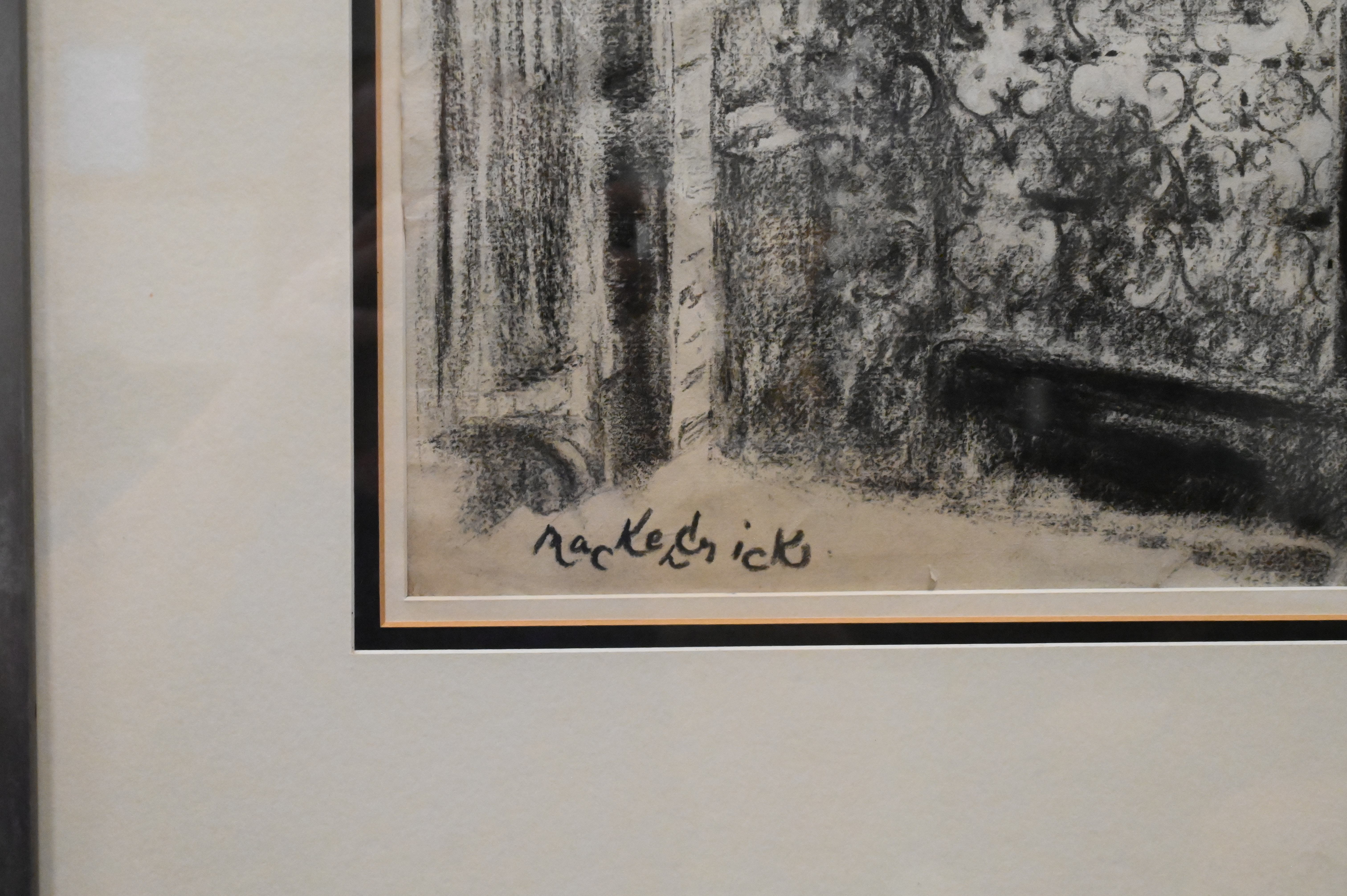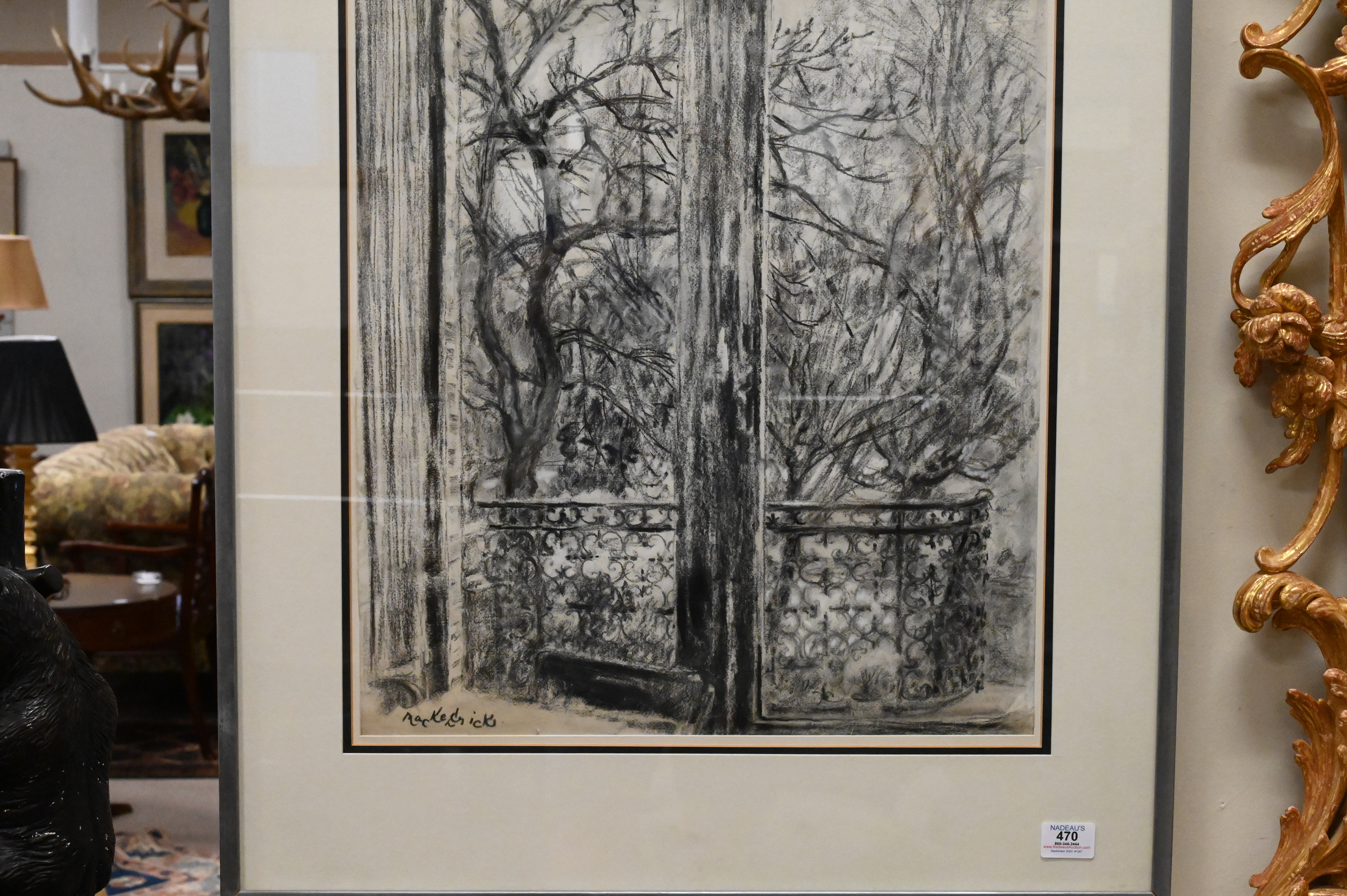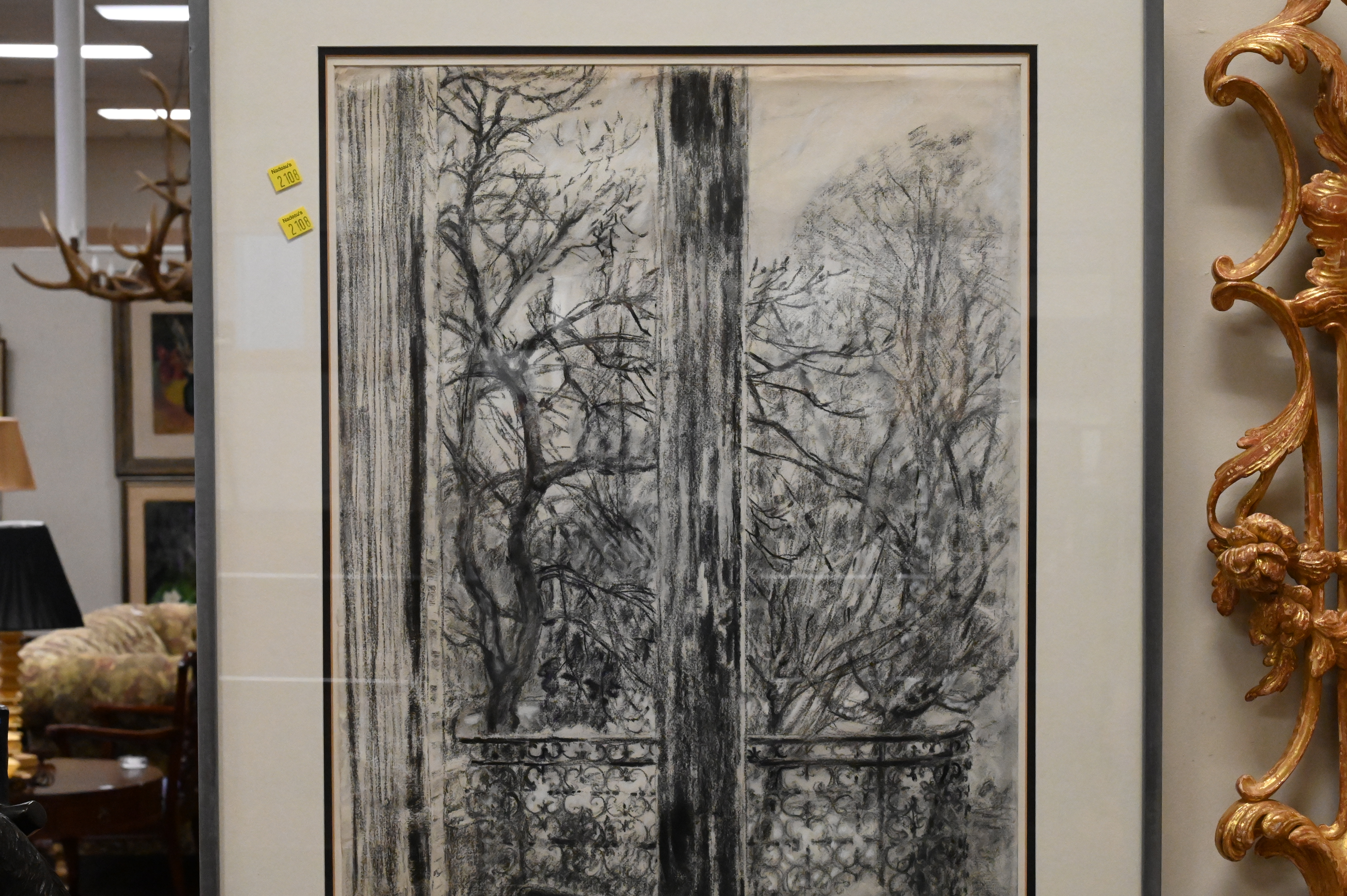 Lillian Mackendrick (American 1906-1987) “View from a Window to a Garden” charcoal on paper signed lower left 25″ x 18 1/2″