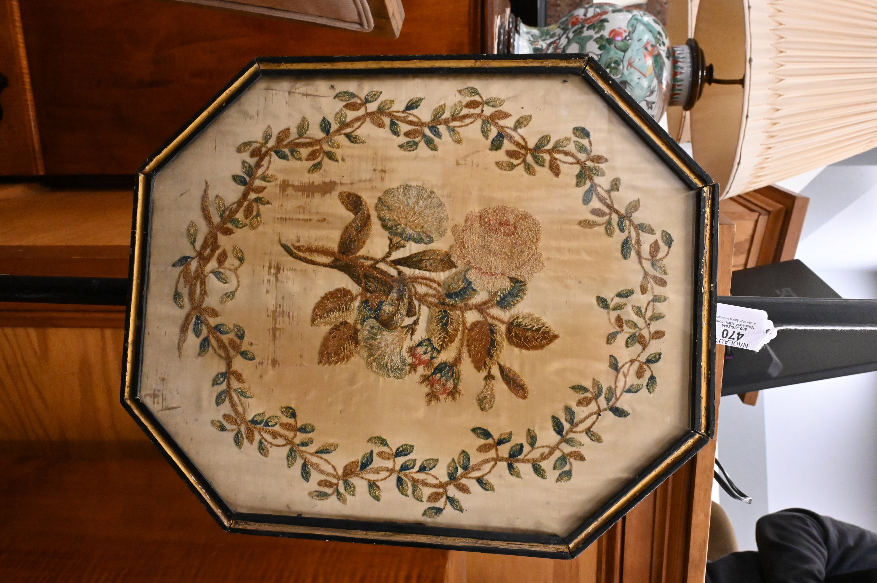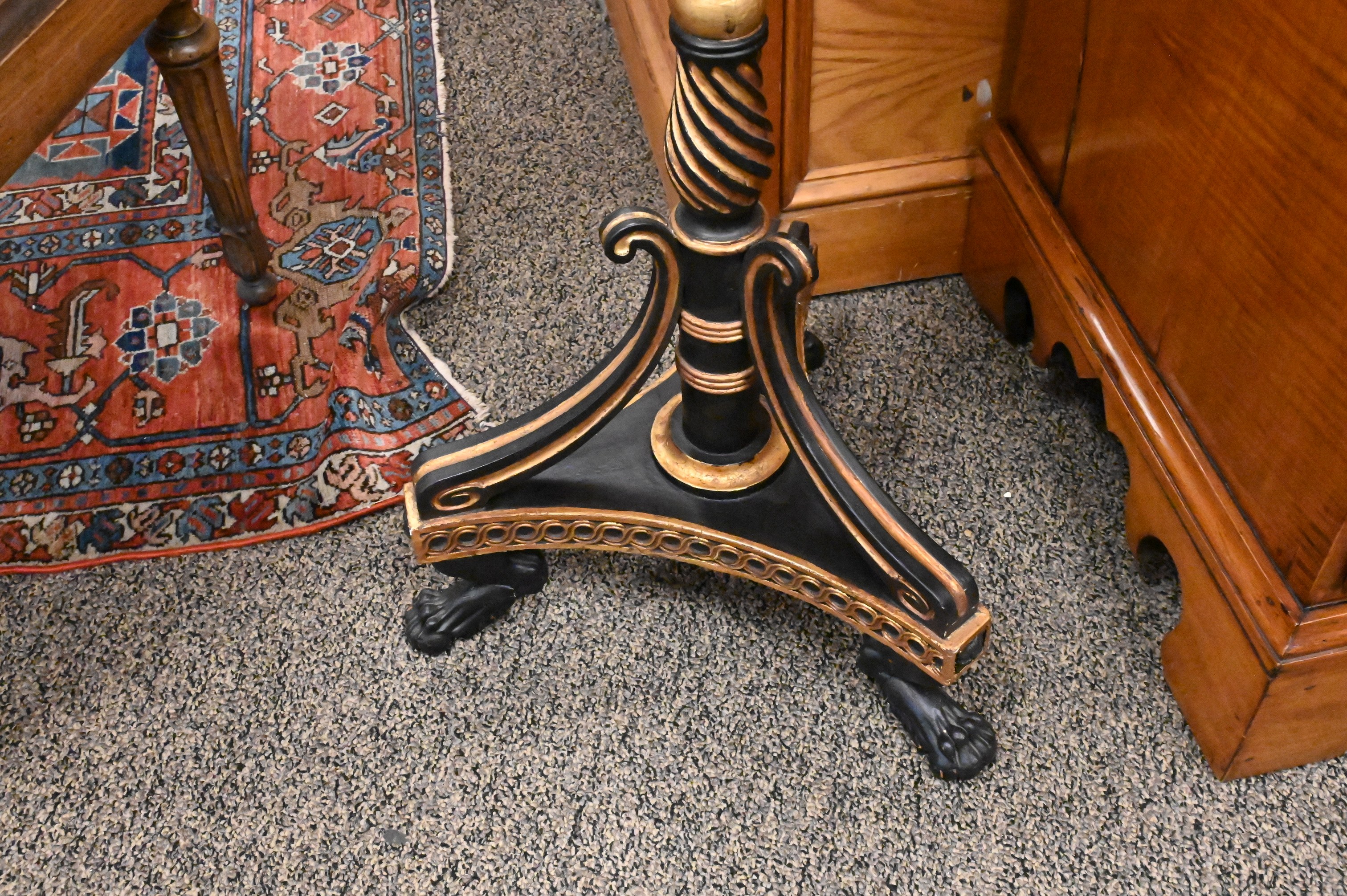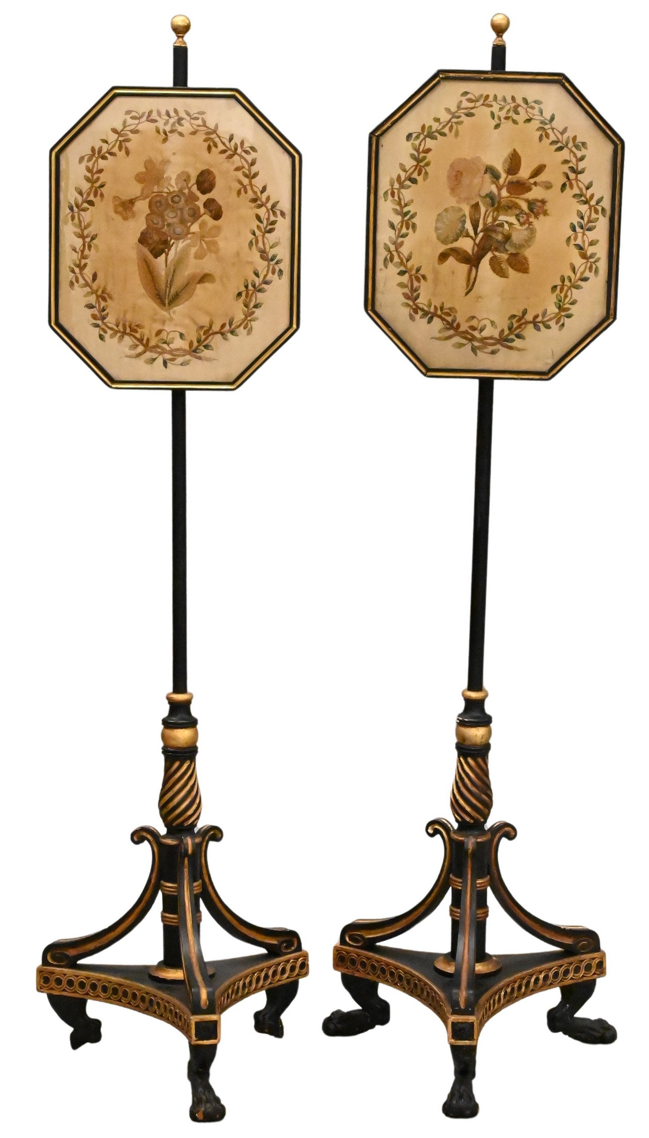 Lot 470: Pair of Regency Gilt and Ebonized Wood Pole Screens