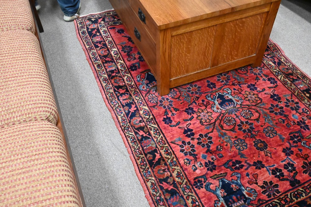 Lot 470: Sarouk Oriental Throw Rug, 4′ 2″ x 6′ 4″, (some wear).