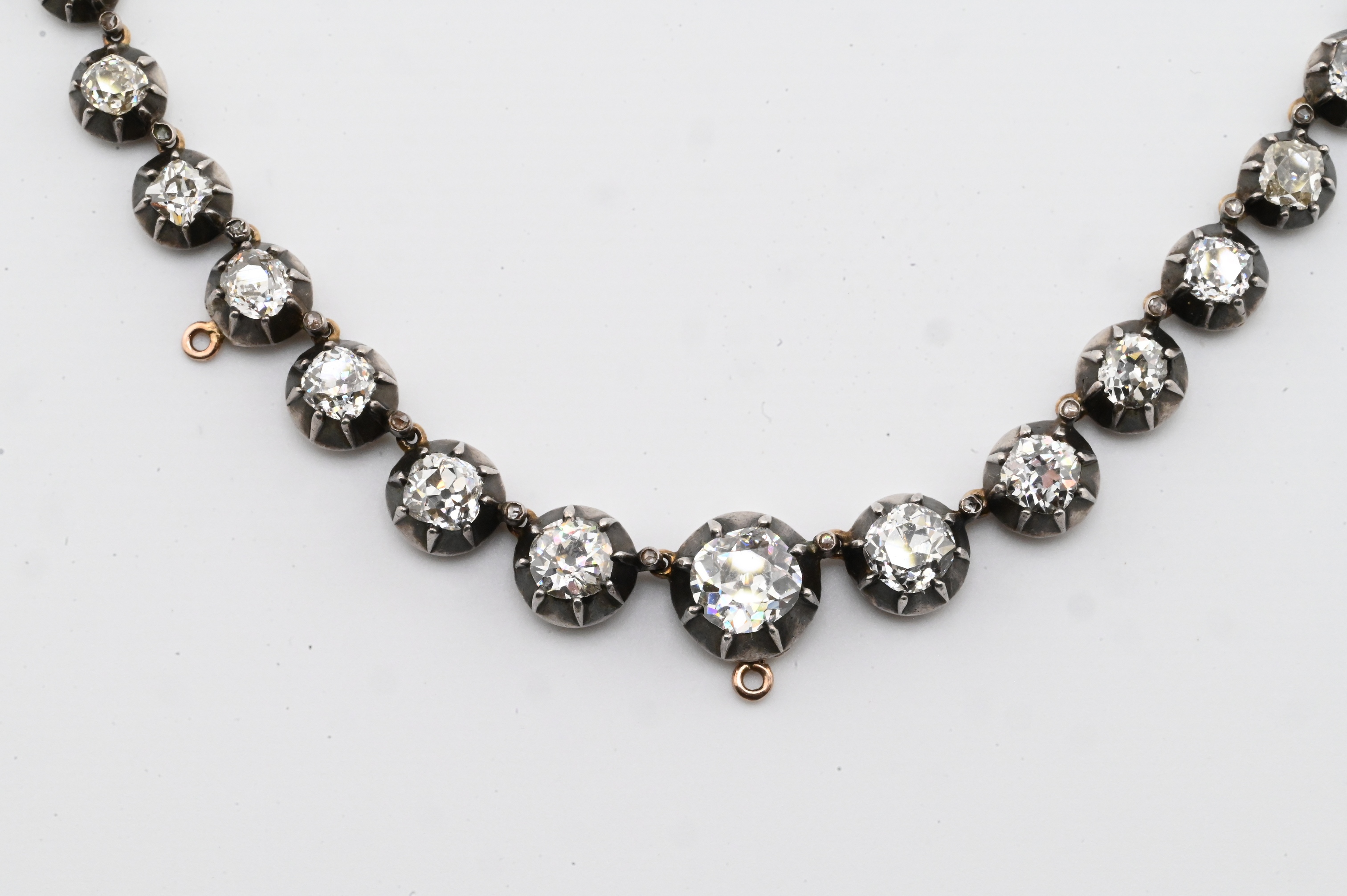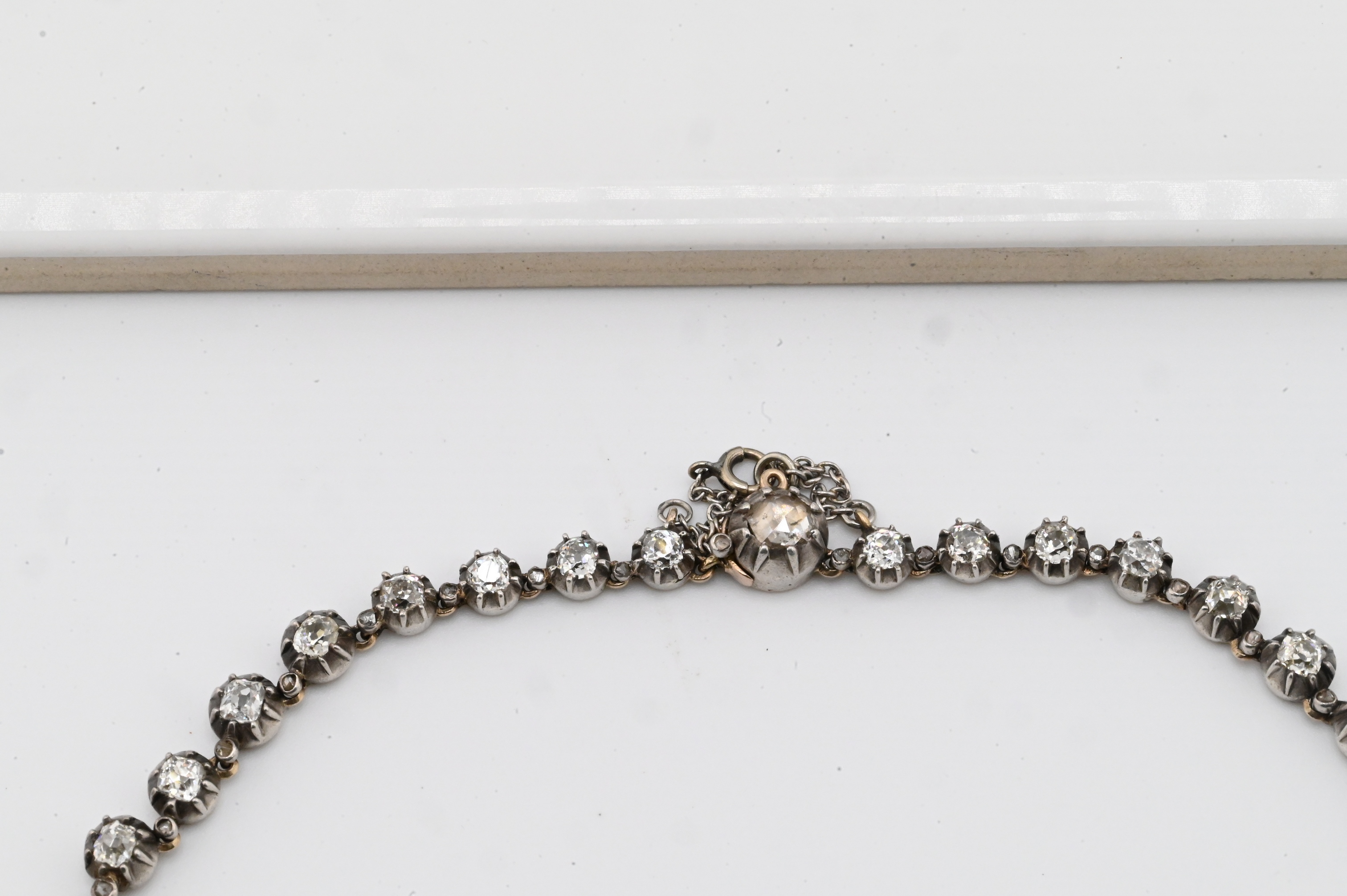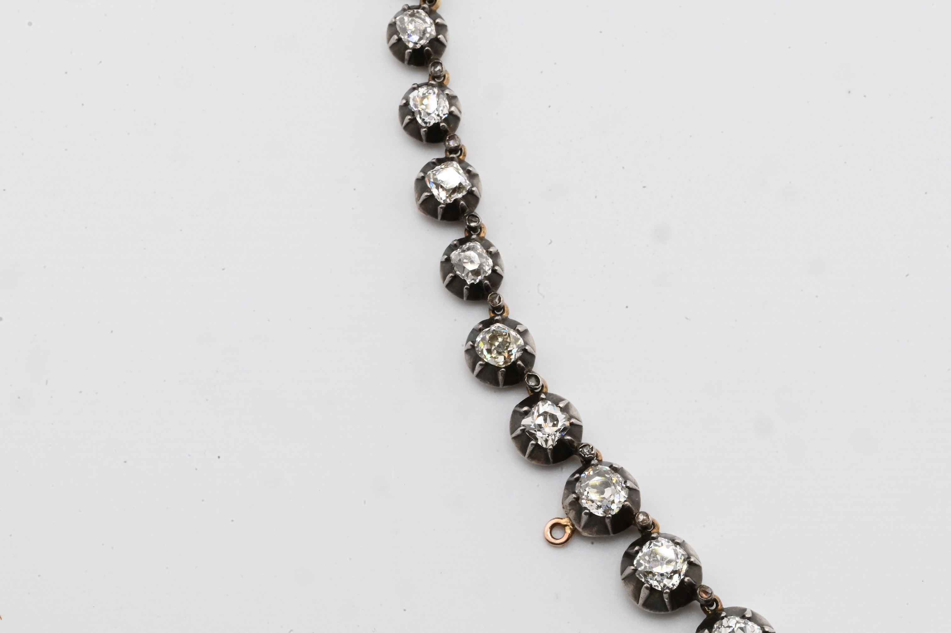 Lot 470: Silver-topped Gold and Diamond Rivière Necklace