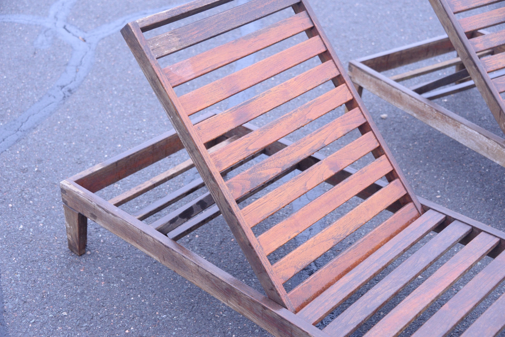 Pair of Barlow Tyrie outdoor teak chaise lounges, length 78 inches.