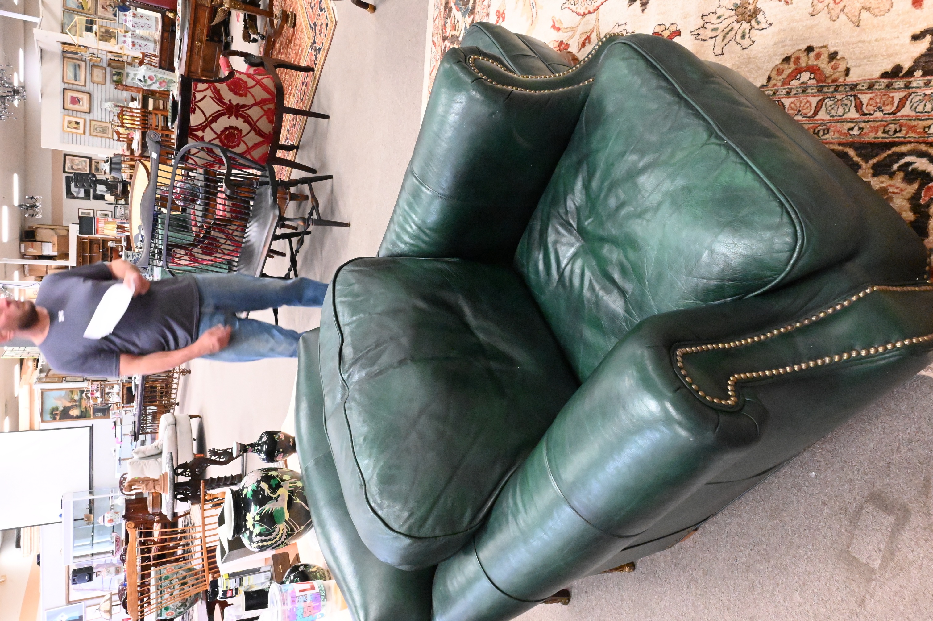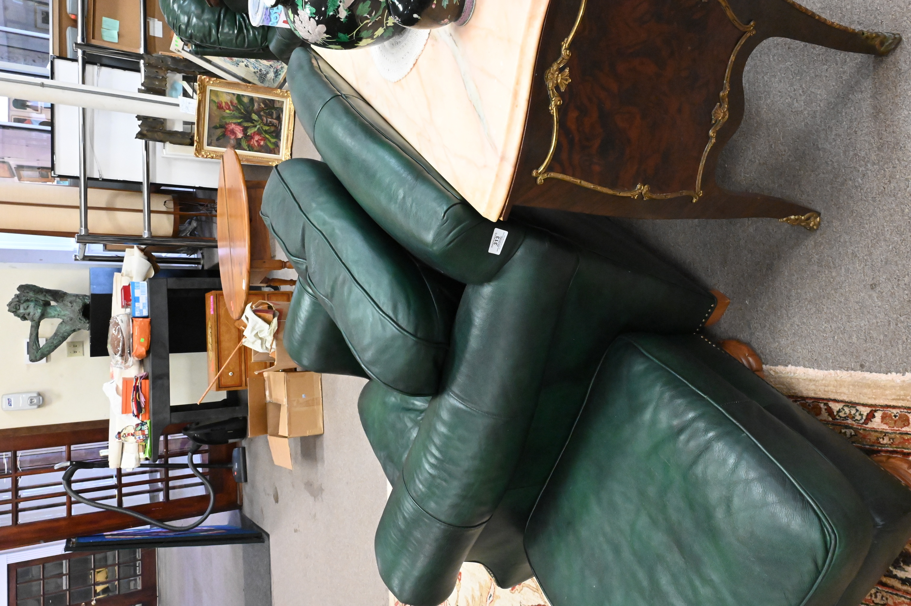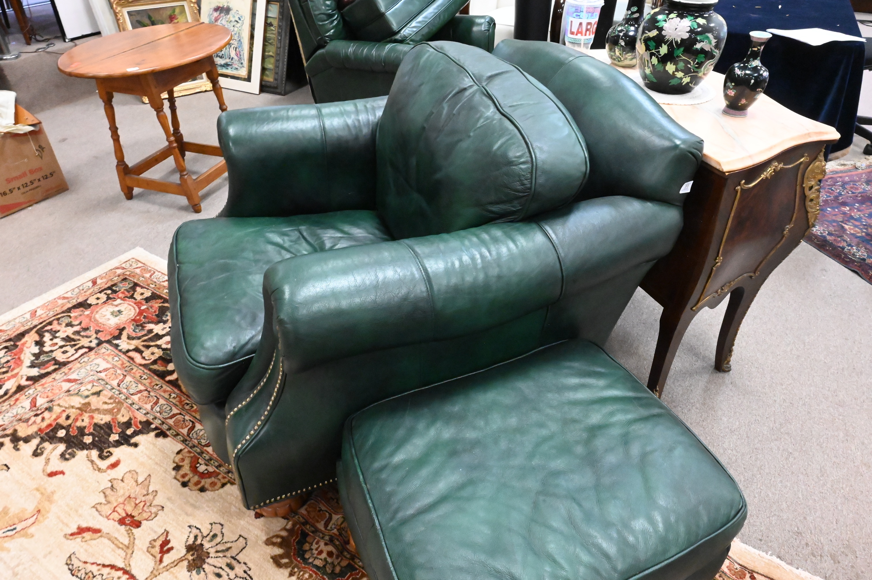 Lot 471: Bradington Young Green Leather Easy Chair and Ottoman