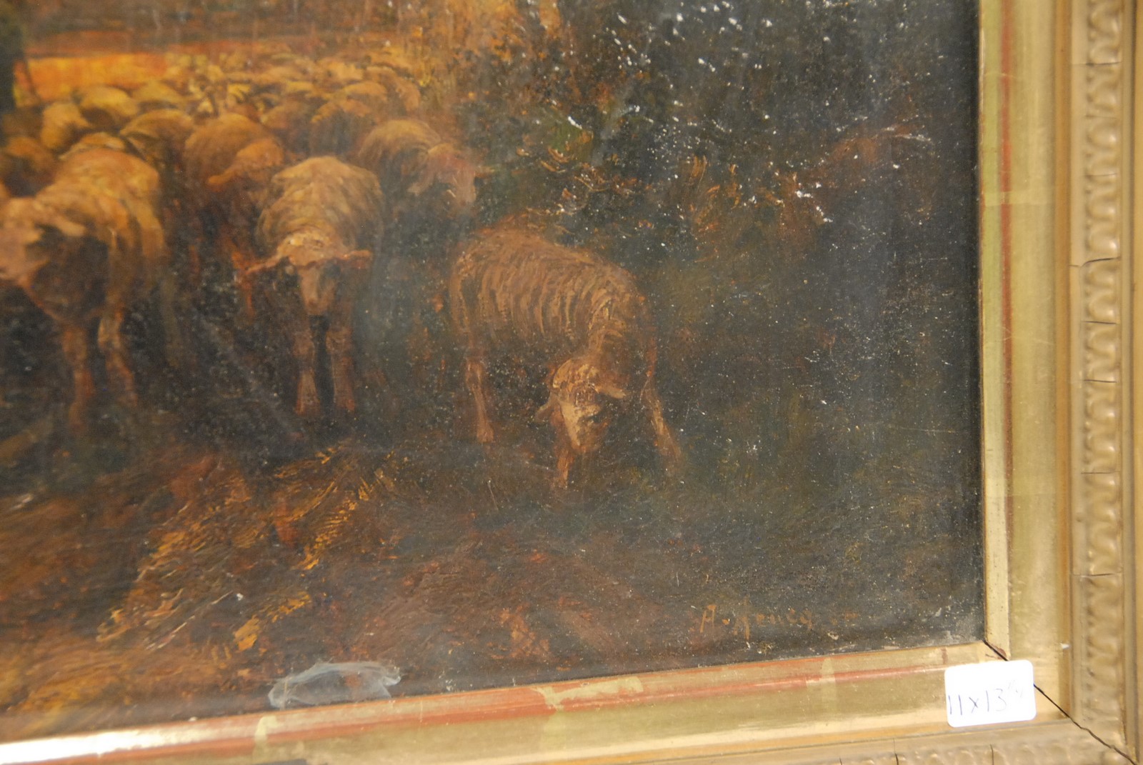 Lot 472: Alois Arnegger 1879-1963 RETURNING OF THE FLOCK oil on panel signed lower right A. Arnegger 11 x 13 3/4