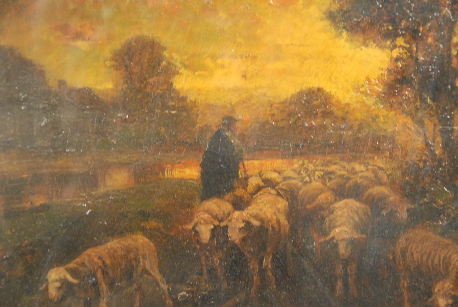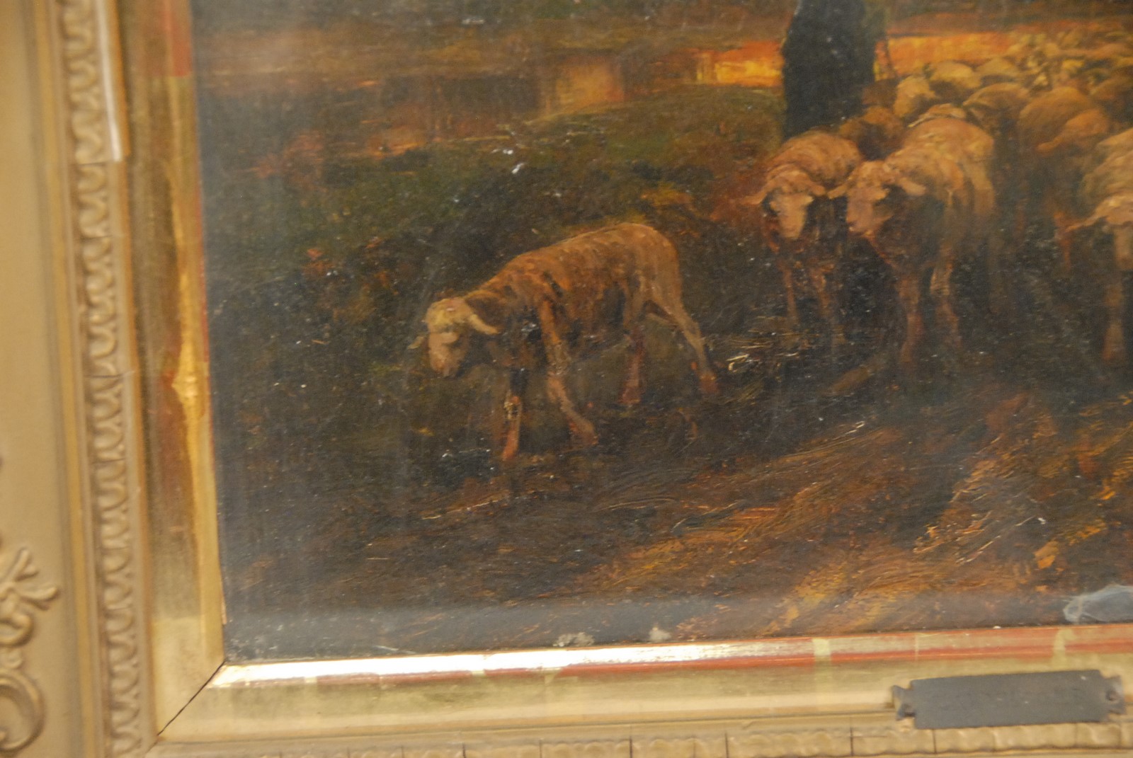 Alois Arnegger 1879-1963 RETURNING OF THE FLOCK oil on panel signed lower right A. Arnegger 11 x 13 3/4