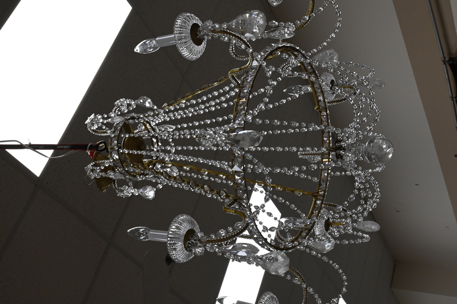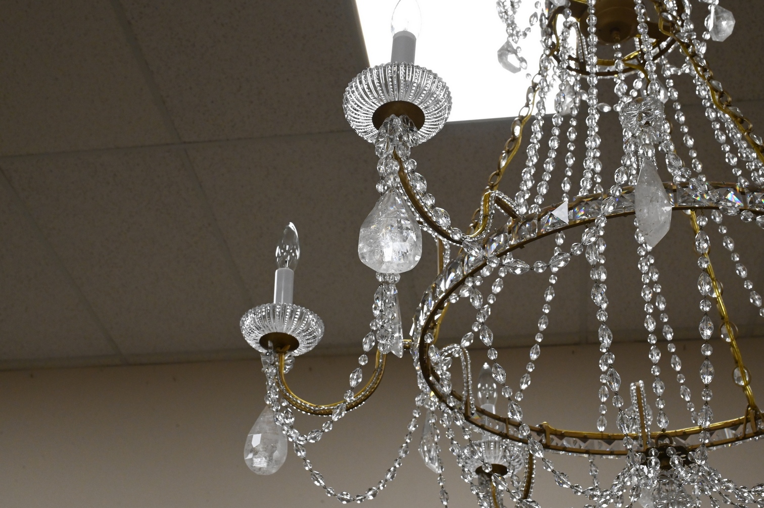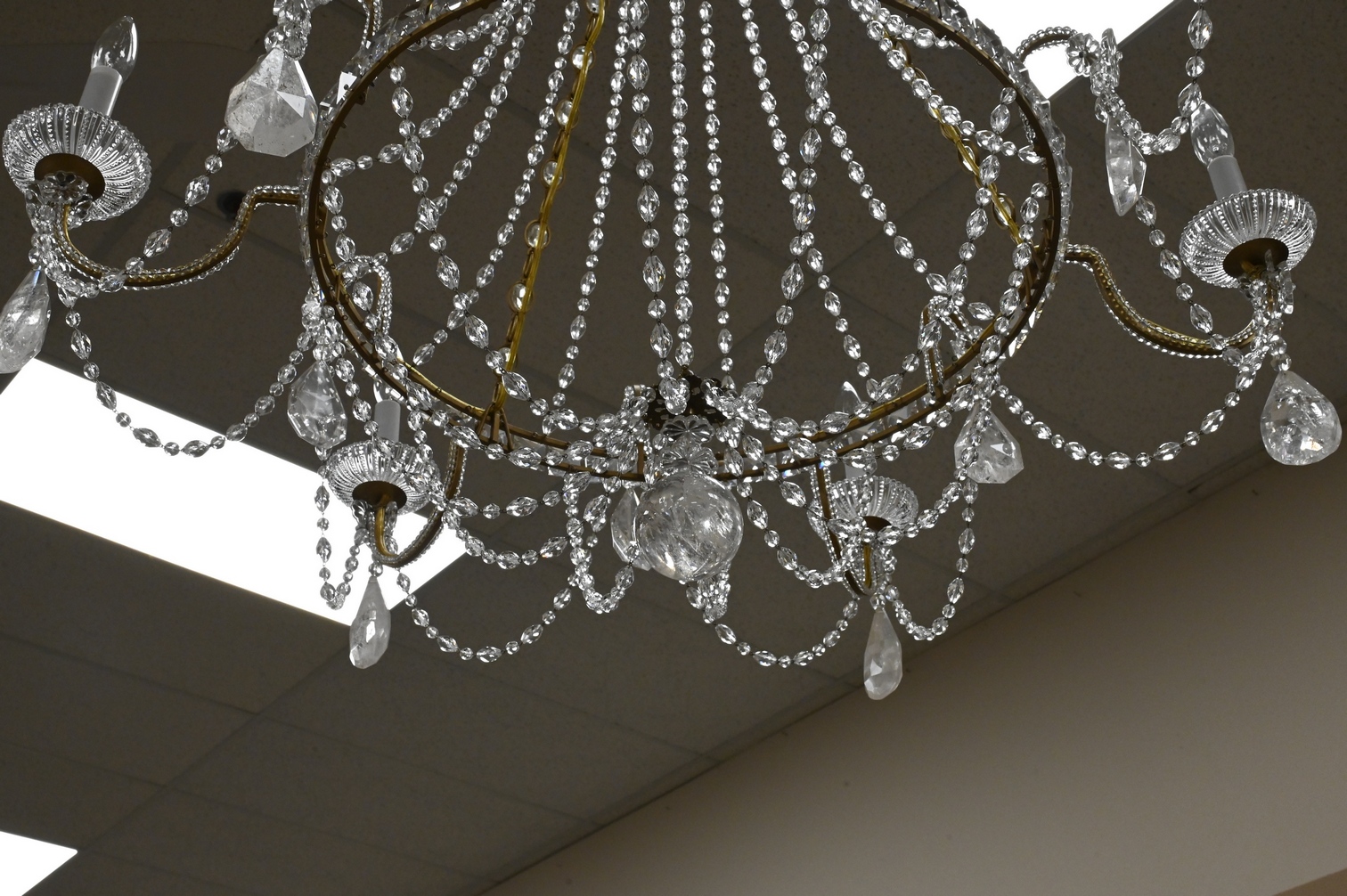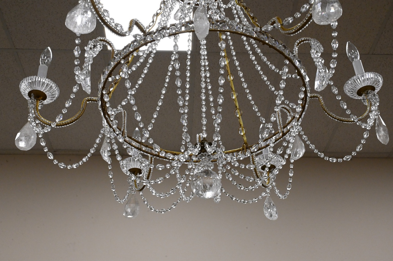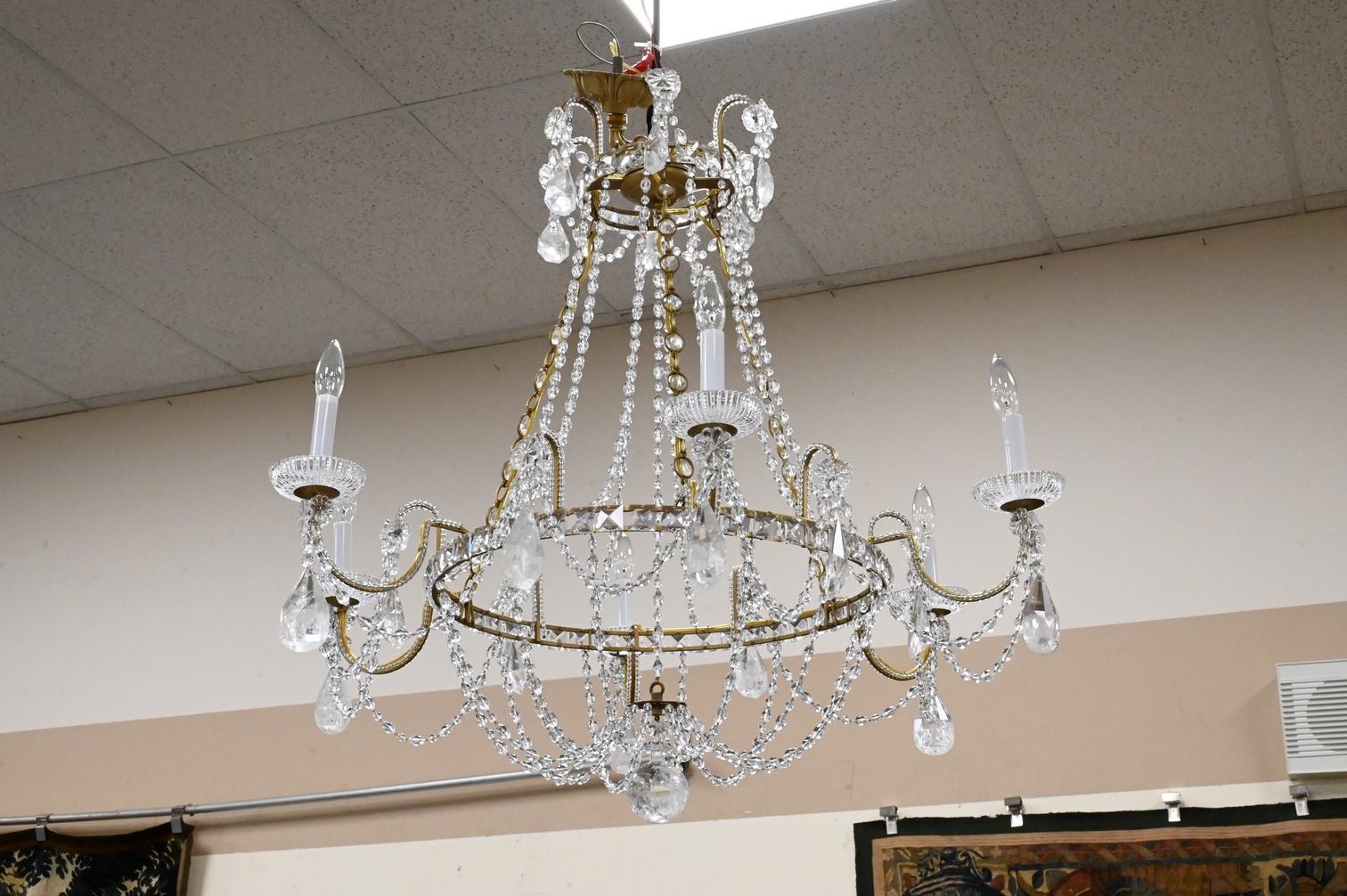 Lot 472: Brass and Rock Crystal Six Light Chandelier