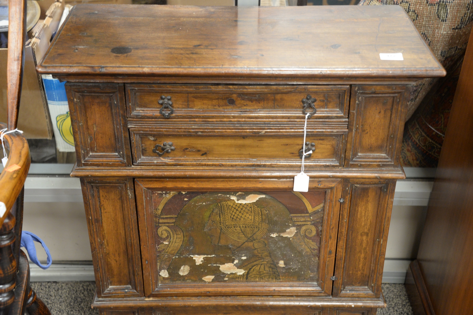 Lot 472: Continental Style Cabinet, partially made using older elements, height 33 inches, top 13 x 27 1/2.