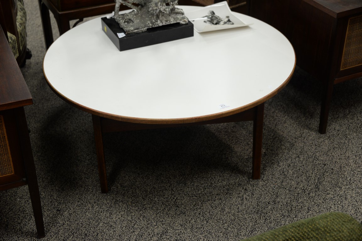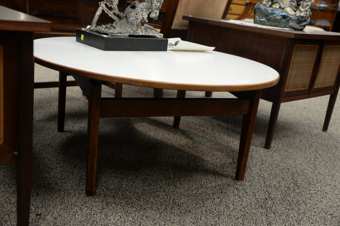 Jens Risom coffee table. height 16 inches, diameter 35 inches