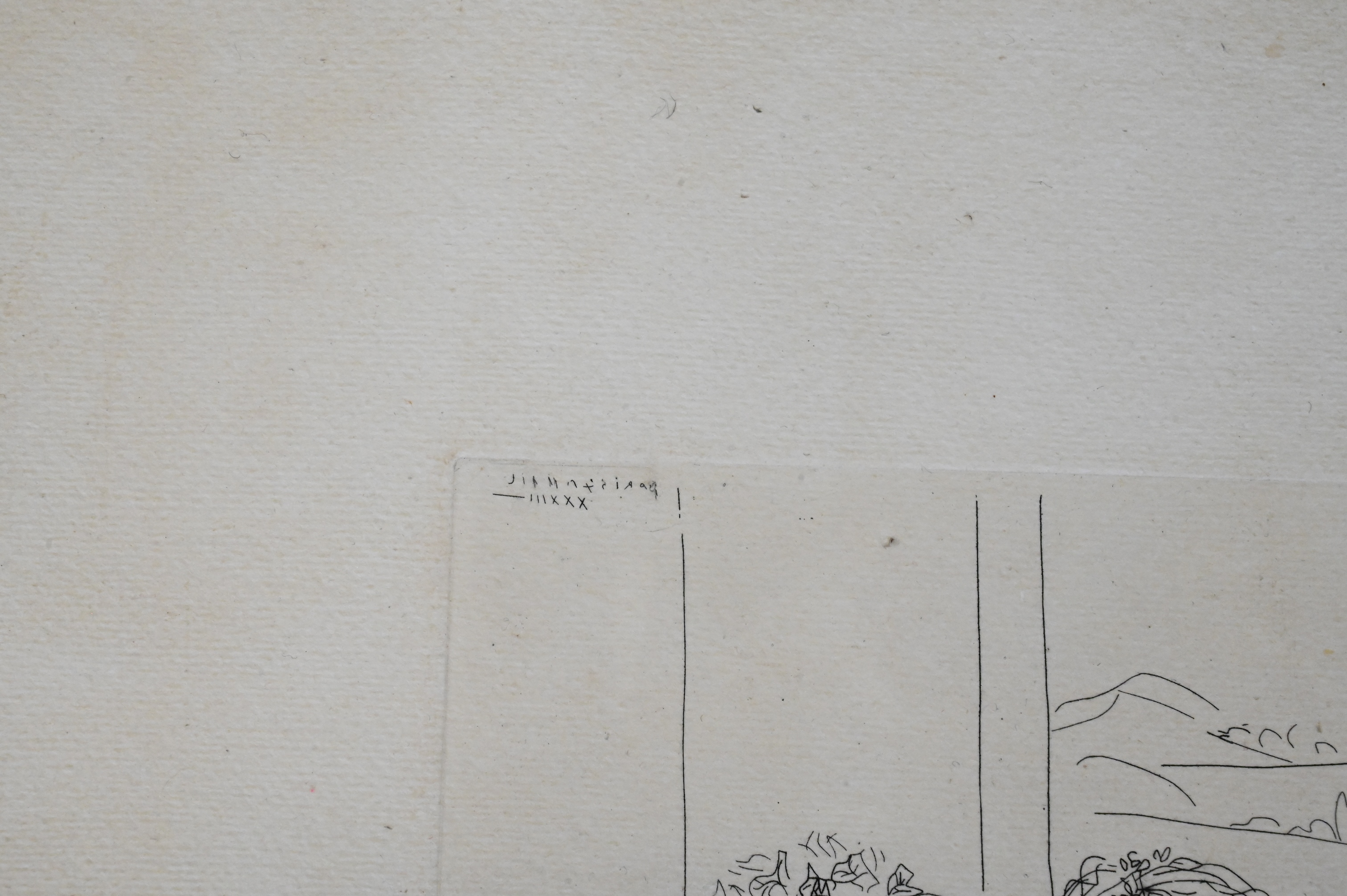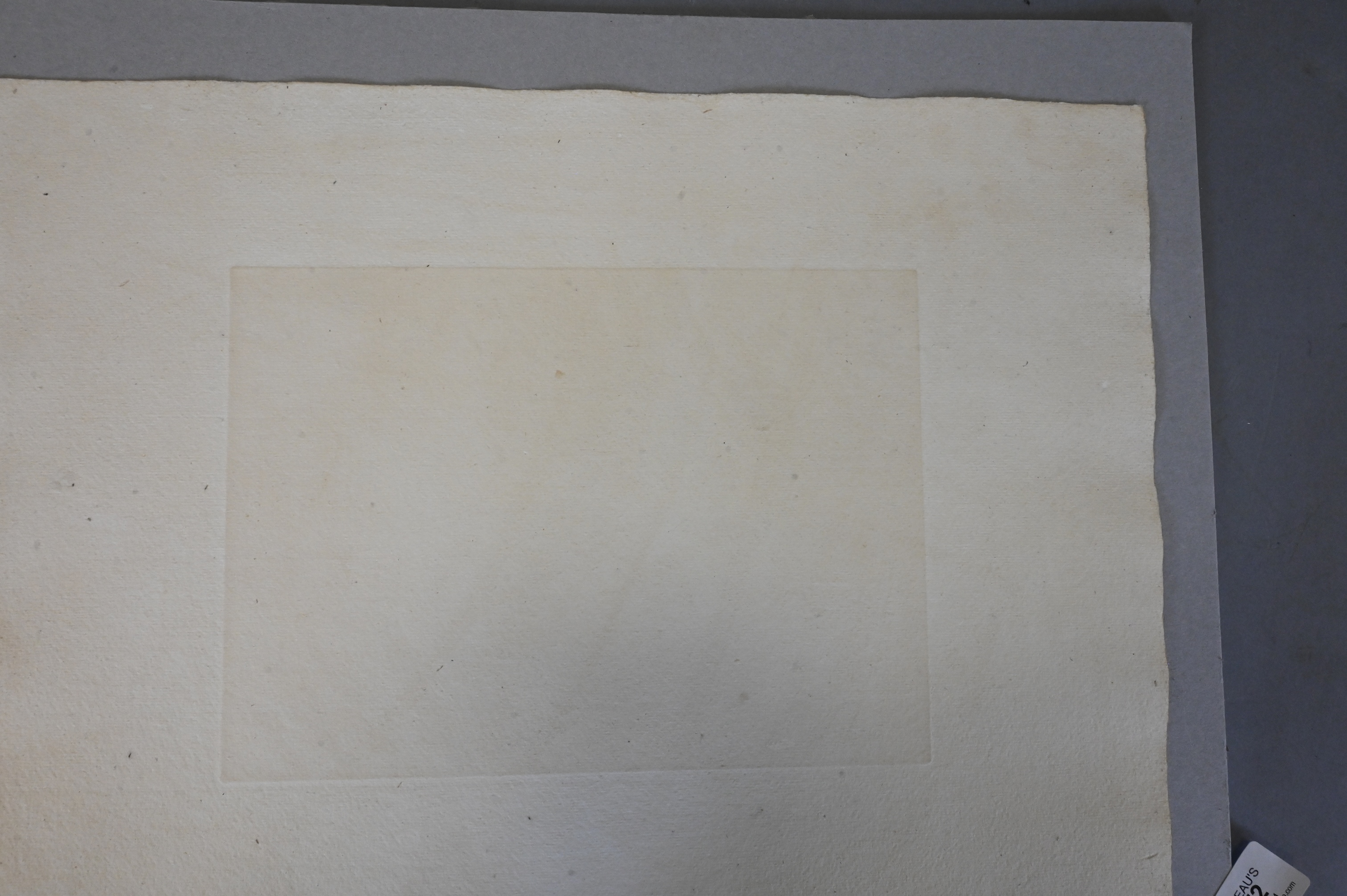 Condition: the piece presents well, unframed laid paper, watermark, yellowing due to age, some foxing, crease to upper right corner, some undulation to paper