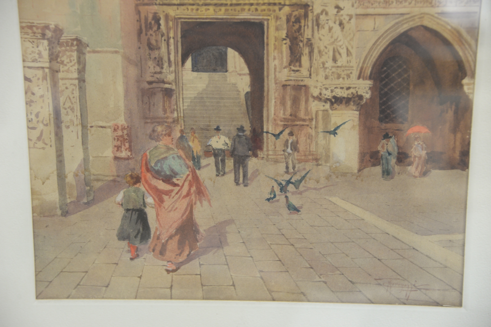 Lot 473: Carlo Menegazzi 19th/20th century watercolor Doges Palace Venice signed lower right C. Menegazzi, sight size 17 1/4 x 11 1/4.