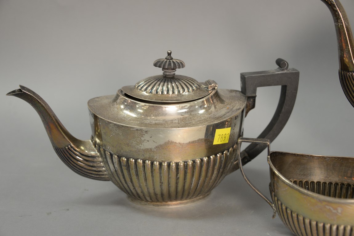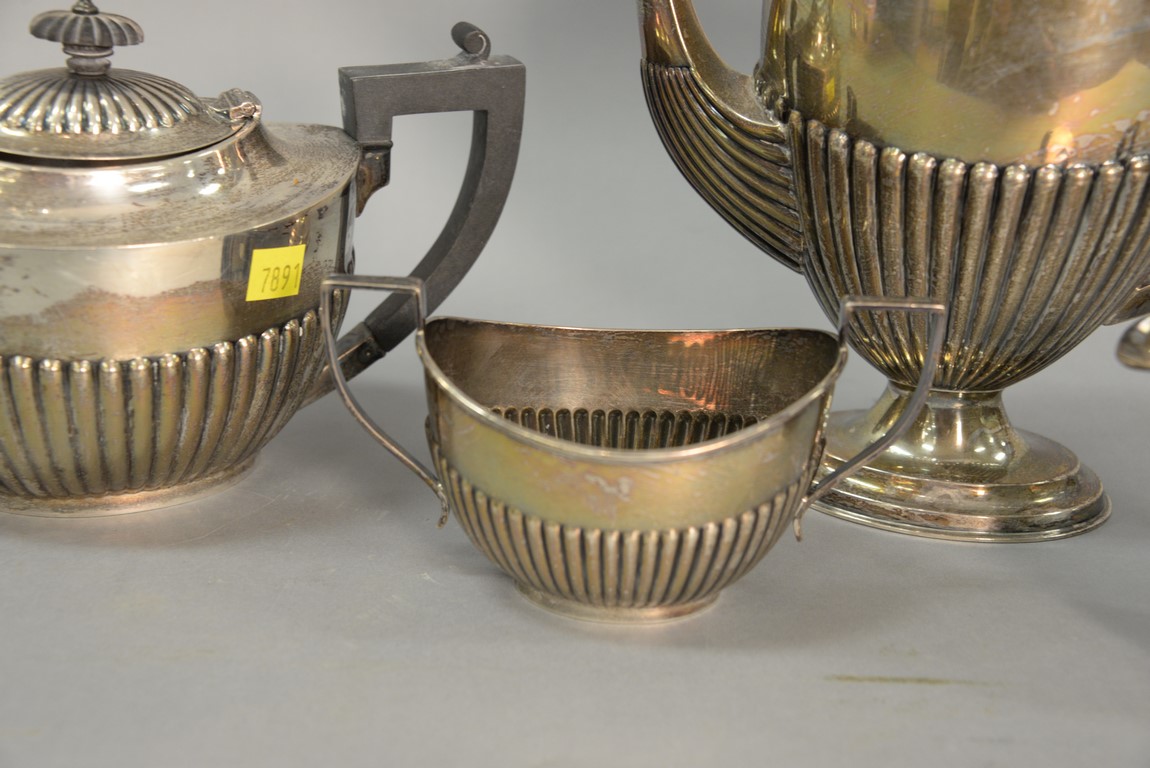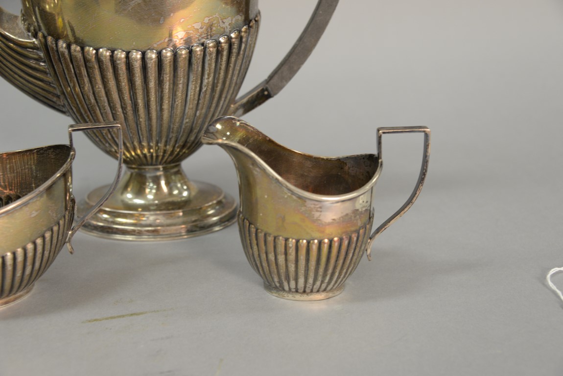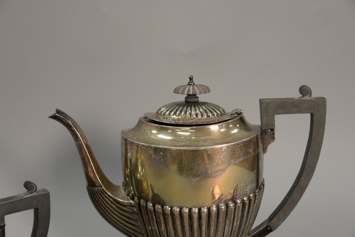 Lot 473: Four piece English silver tea and coffee set with wood handles