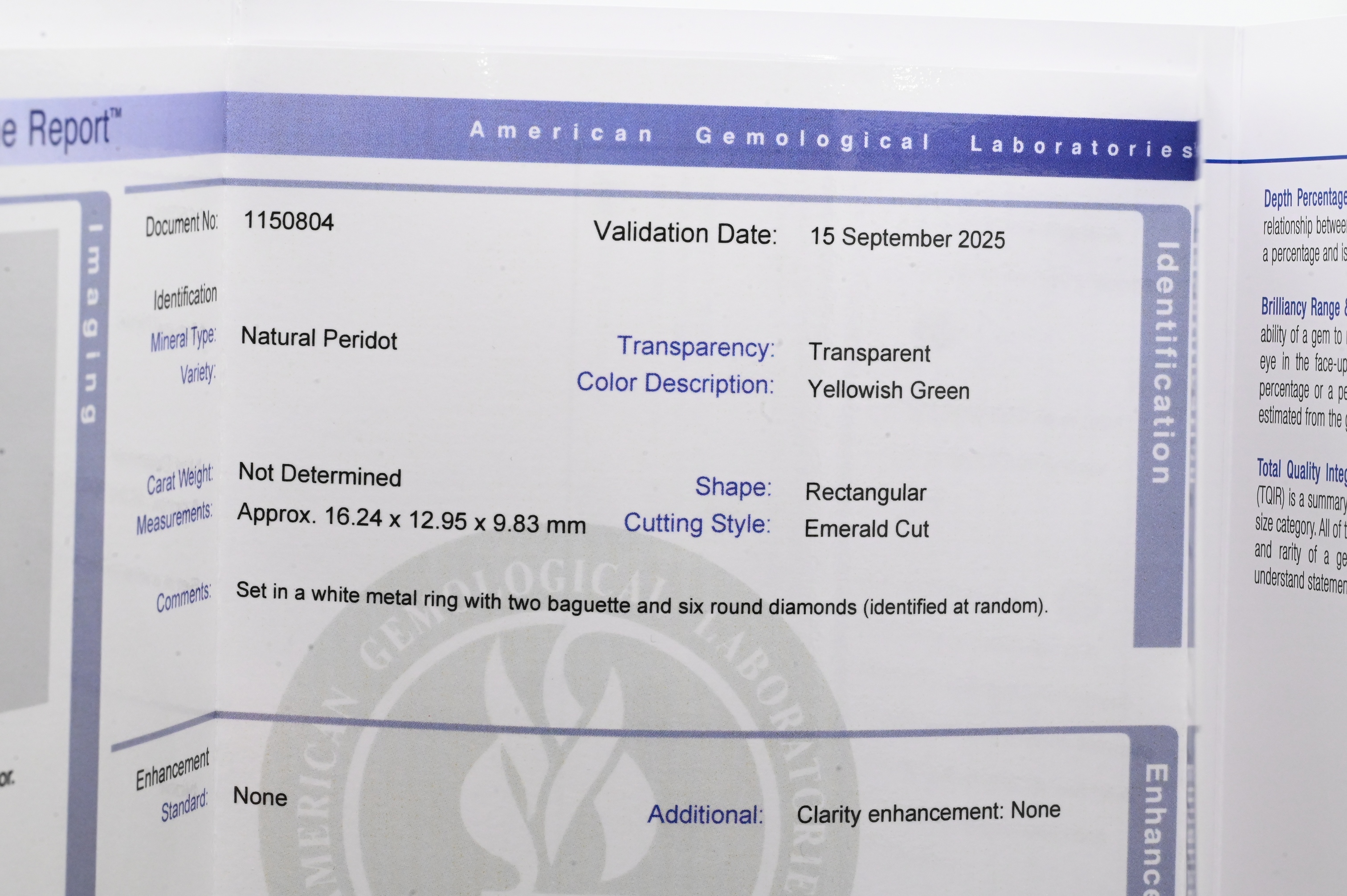 size 5 1/2, size of peridot approximately 16.24 mm x 12.95 mm, total weight 10.5 grams