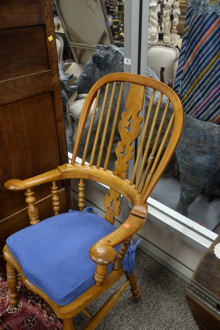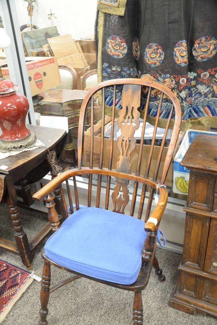 Lot 473: Two English Windsor Armchairs, on turned legs, 18th century, height of each 42 inches. Provenance: Collection from Mr. and Mrs. Fowler, West Hartford, Connecticut.