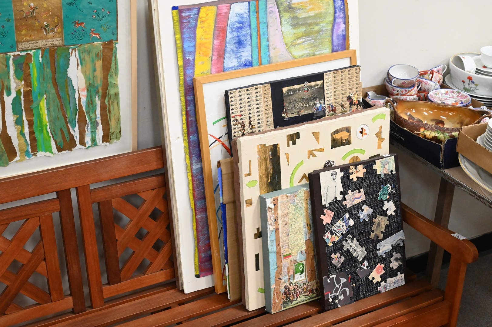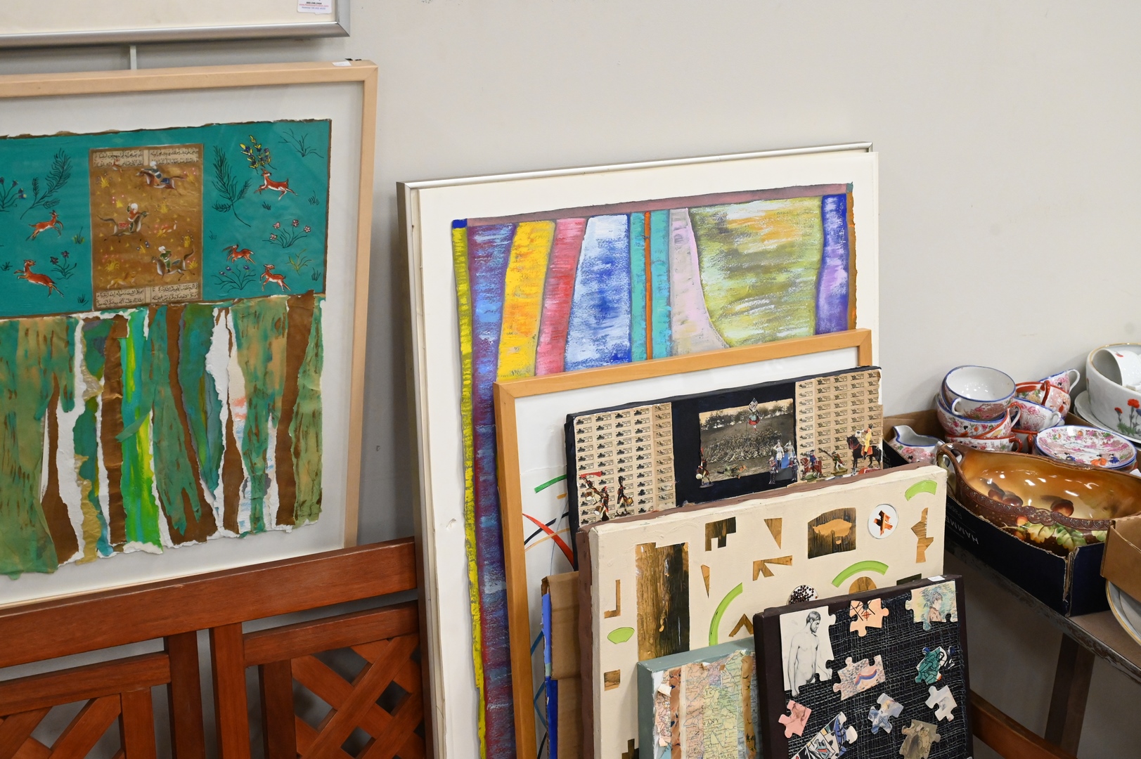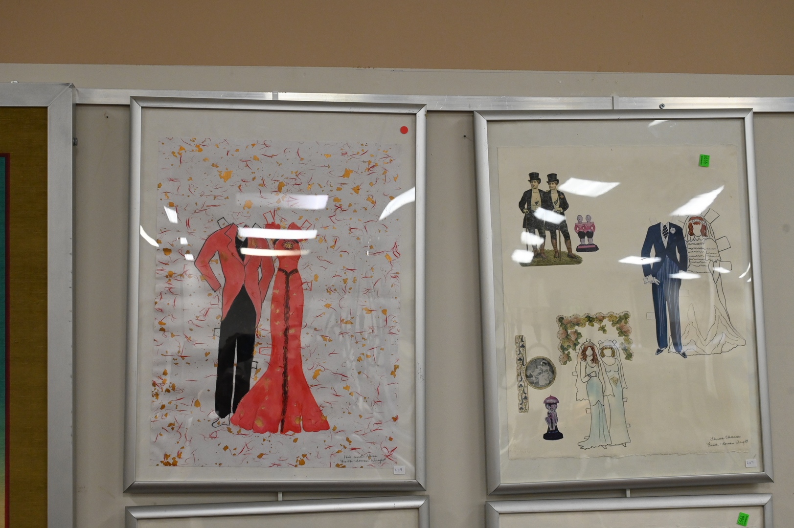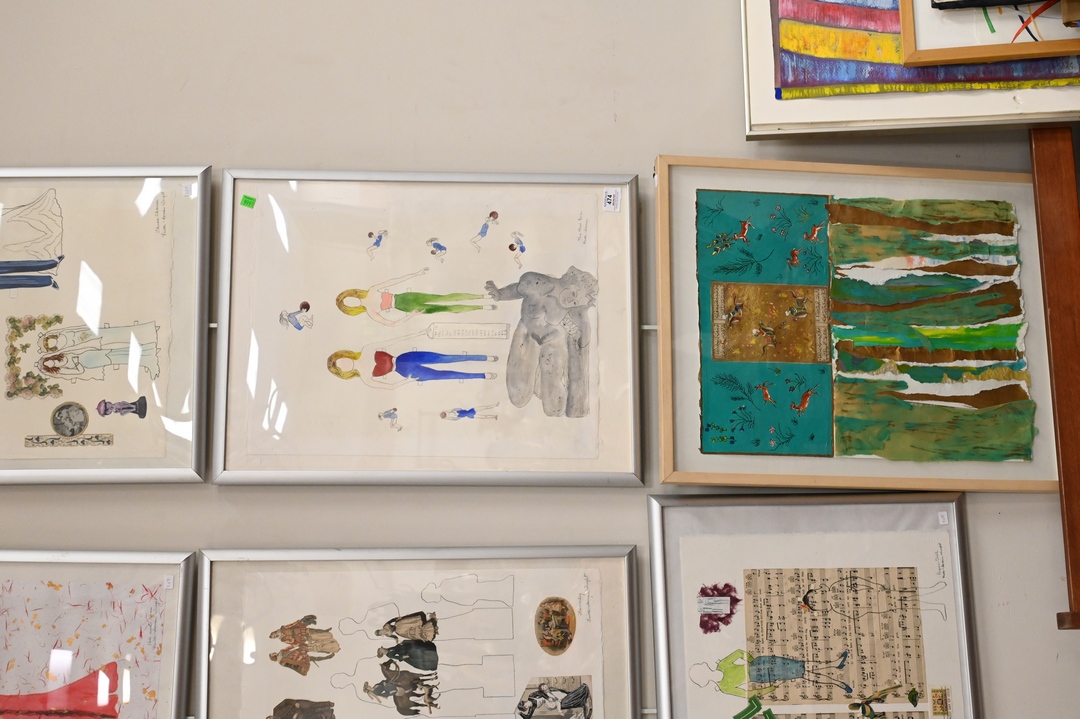 Group of 25 Faith Dorian Wright Paintings, to include watercolors and mixed media collage, largest 26″ x 35″.
