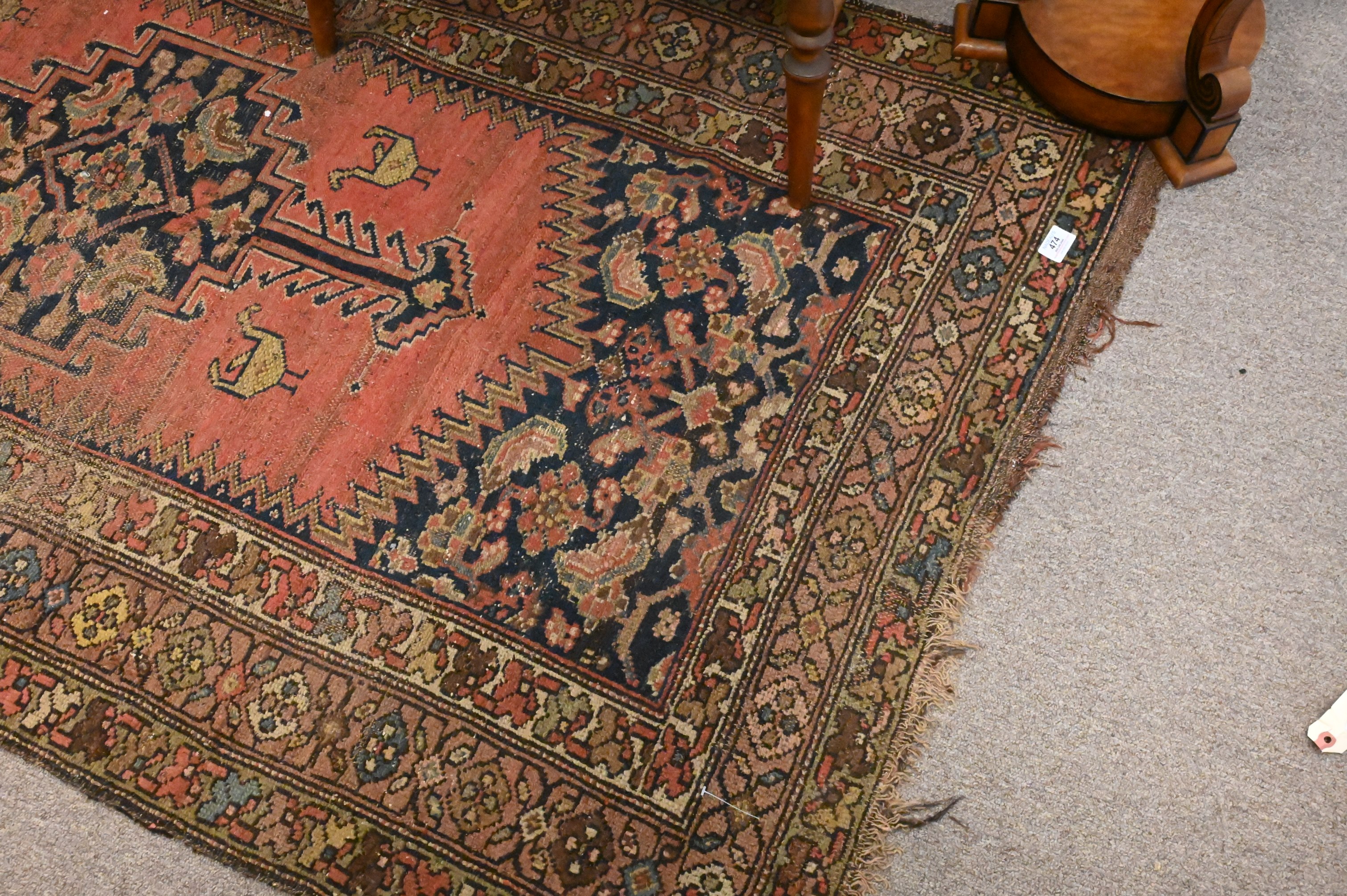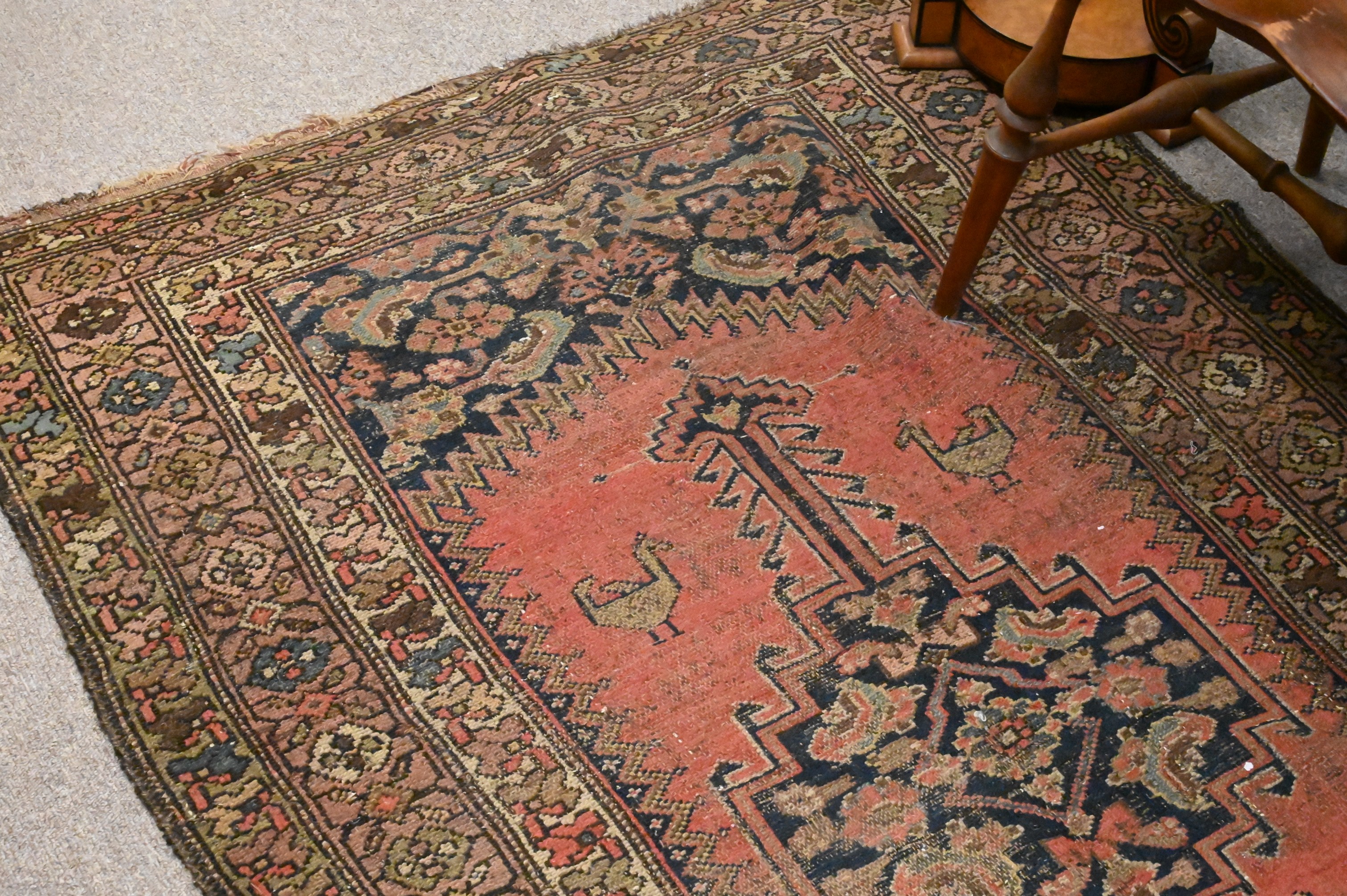 Oriental Throw Rug, with animals, probably late 19th century, 6′ x 3′ 6″