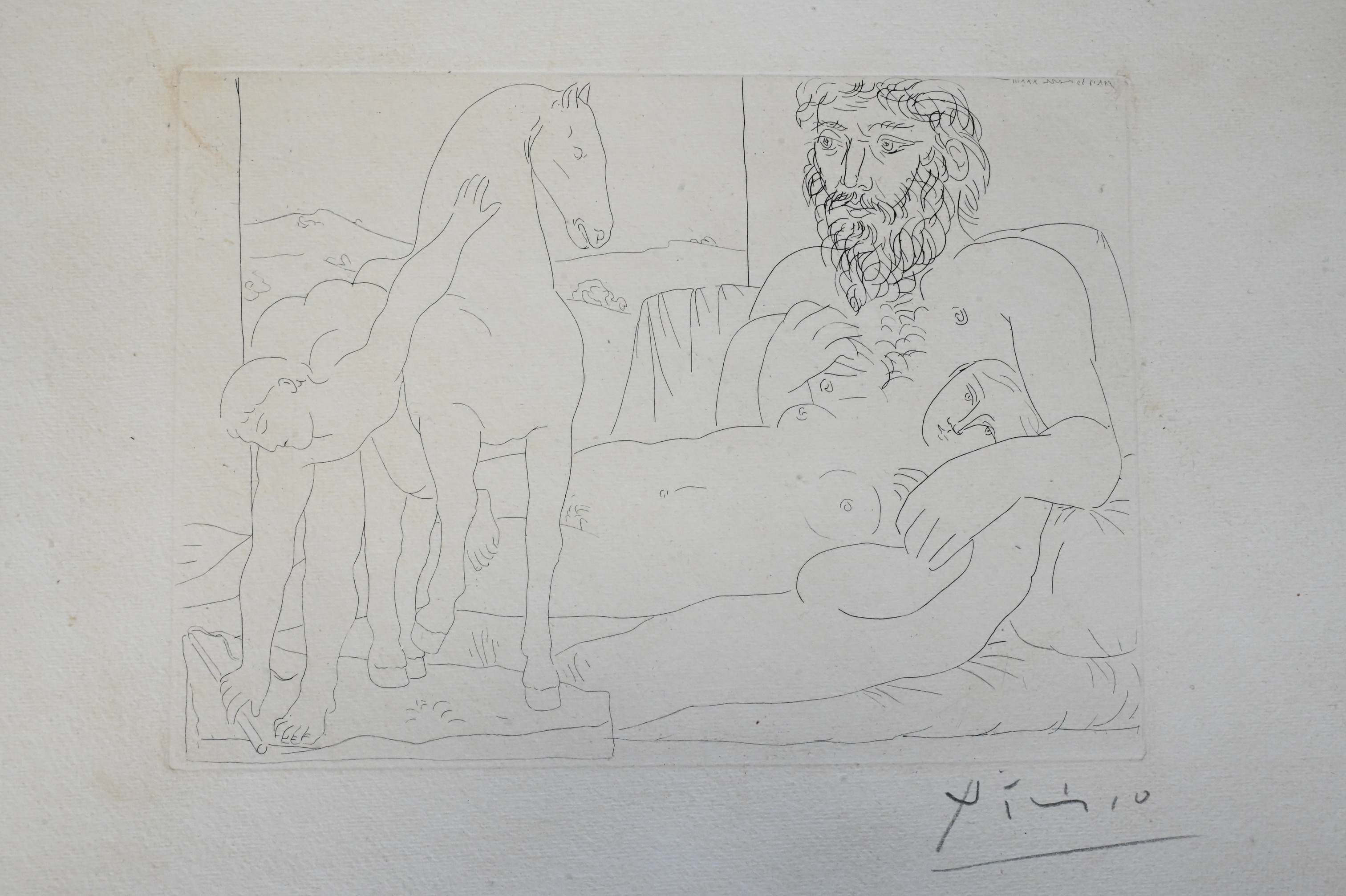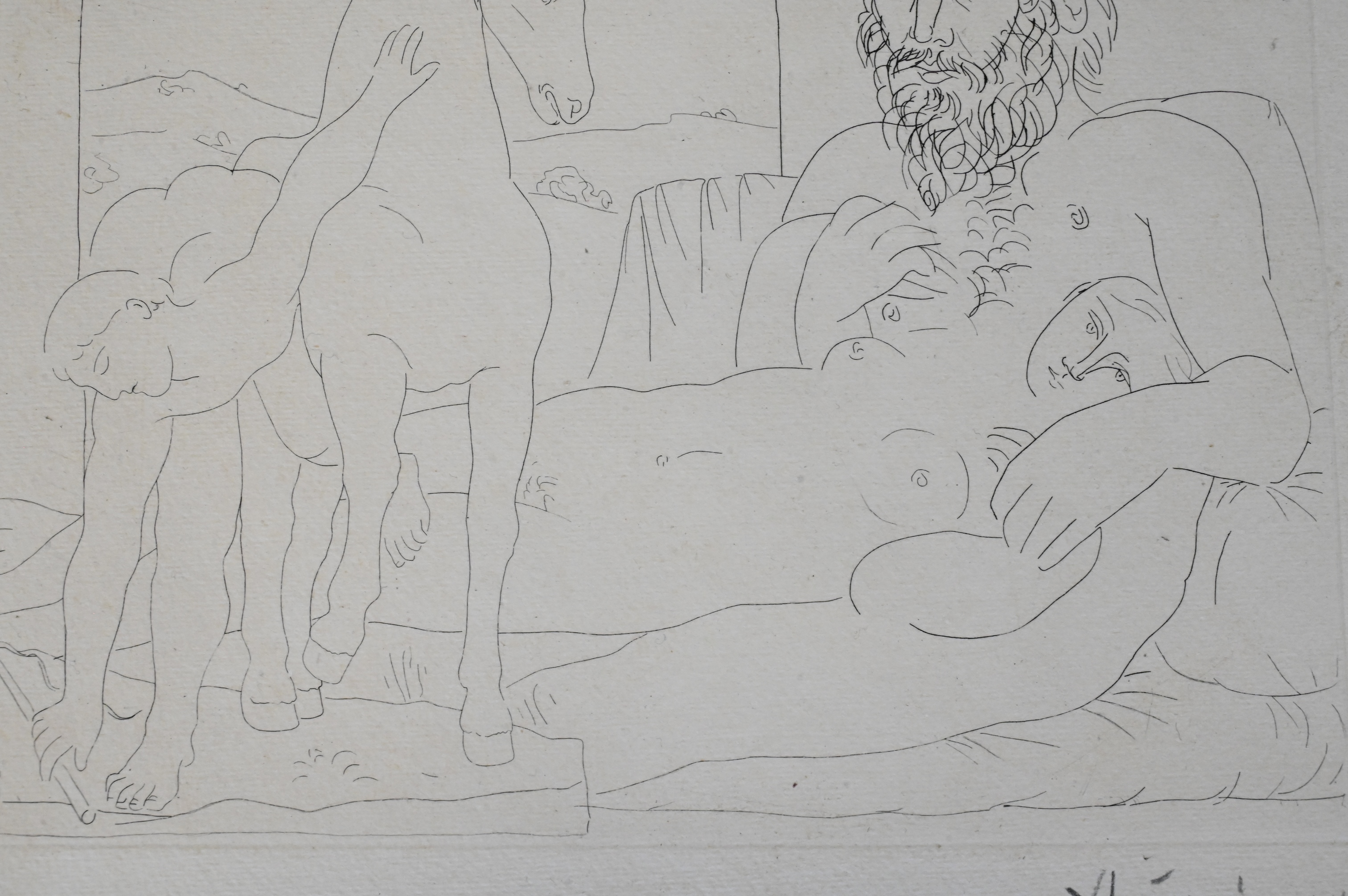 “Repos de Sculpteur Devant le Jeune Cavalier” plate 55 from La Suite Vollard, circa 1933