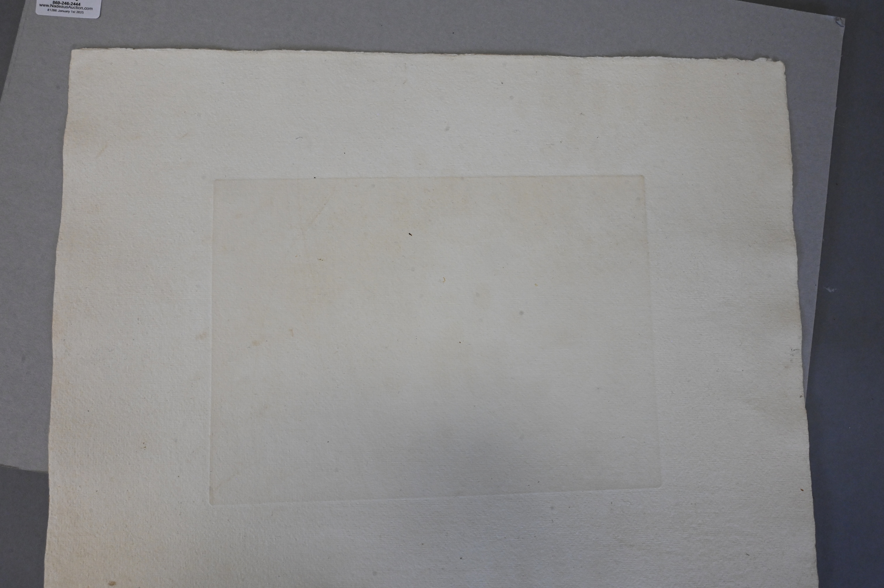 Condition: the piece presents well, unframed laid paper, watermark, yellowing due to age, some foxing, crease to upper right corner, small scuff upper left, some undulation to paper