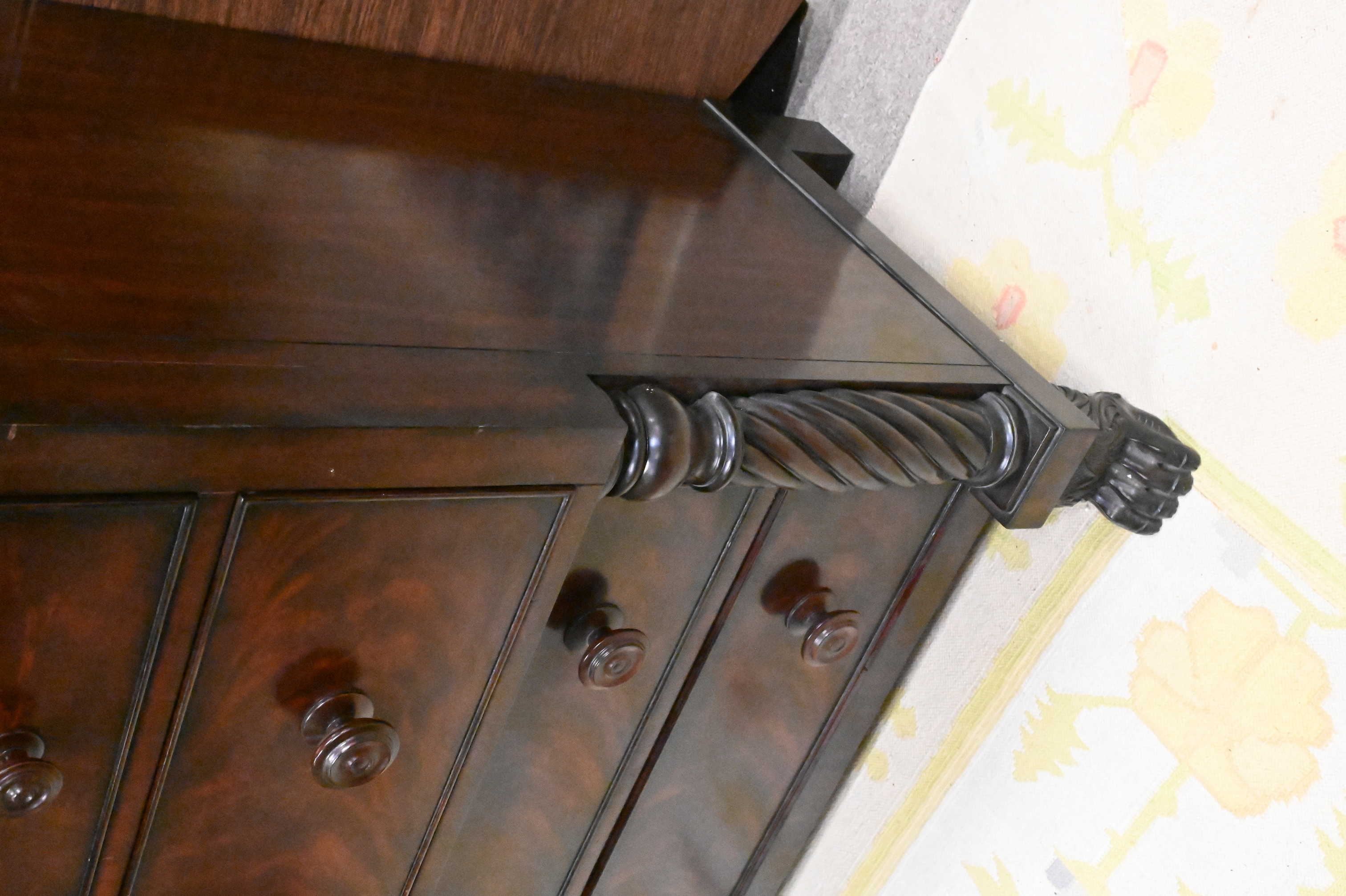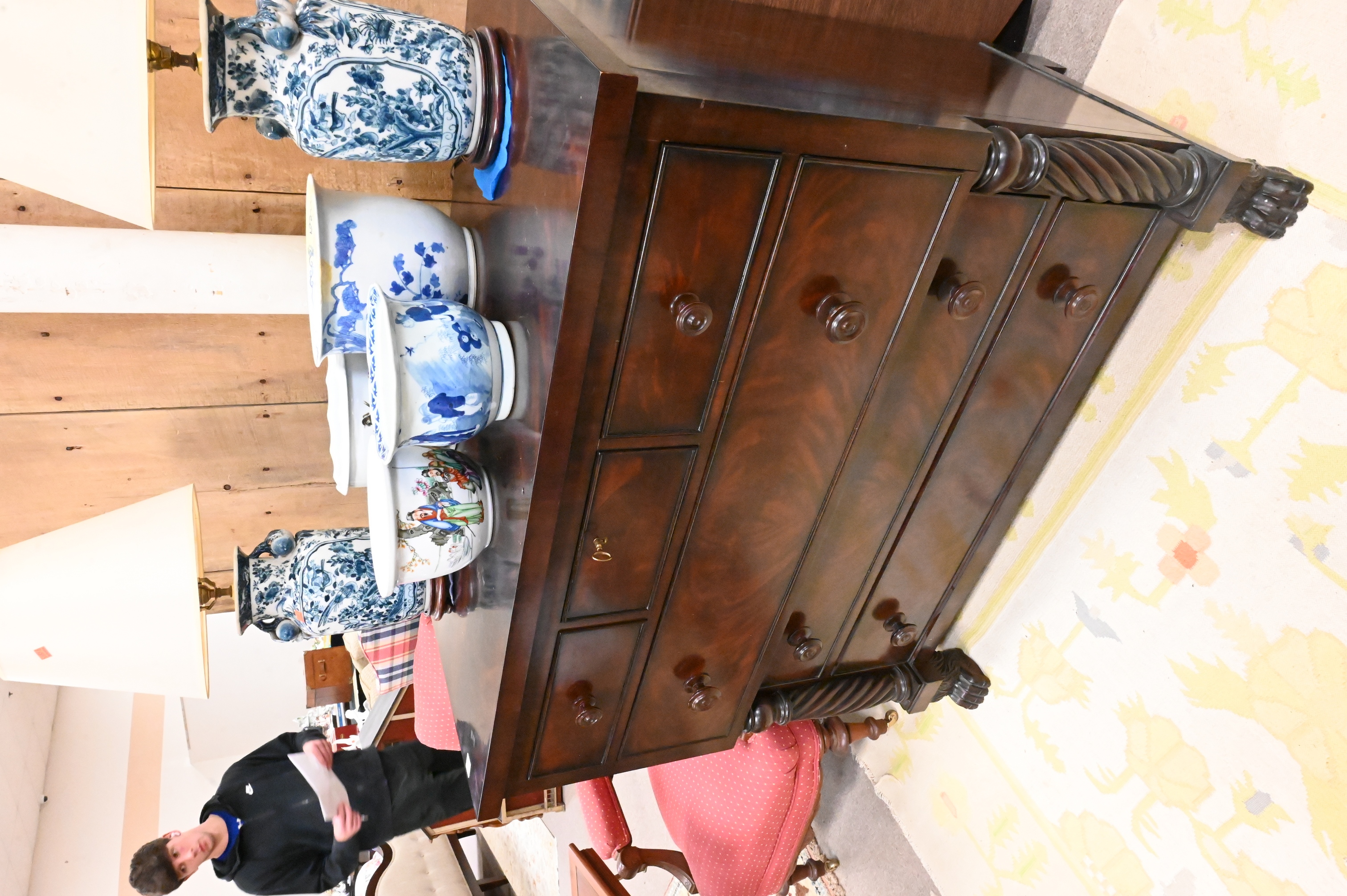 Lot 474: Ralph Lauren Empire Style Mahogany Chest on Paw Feet