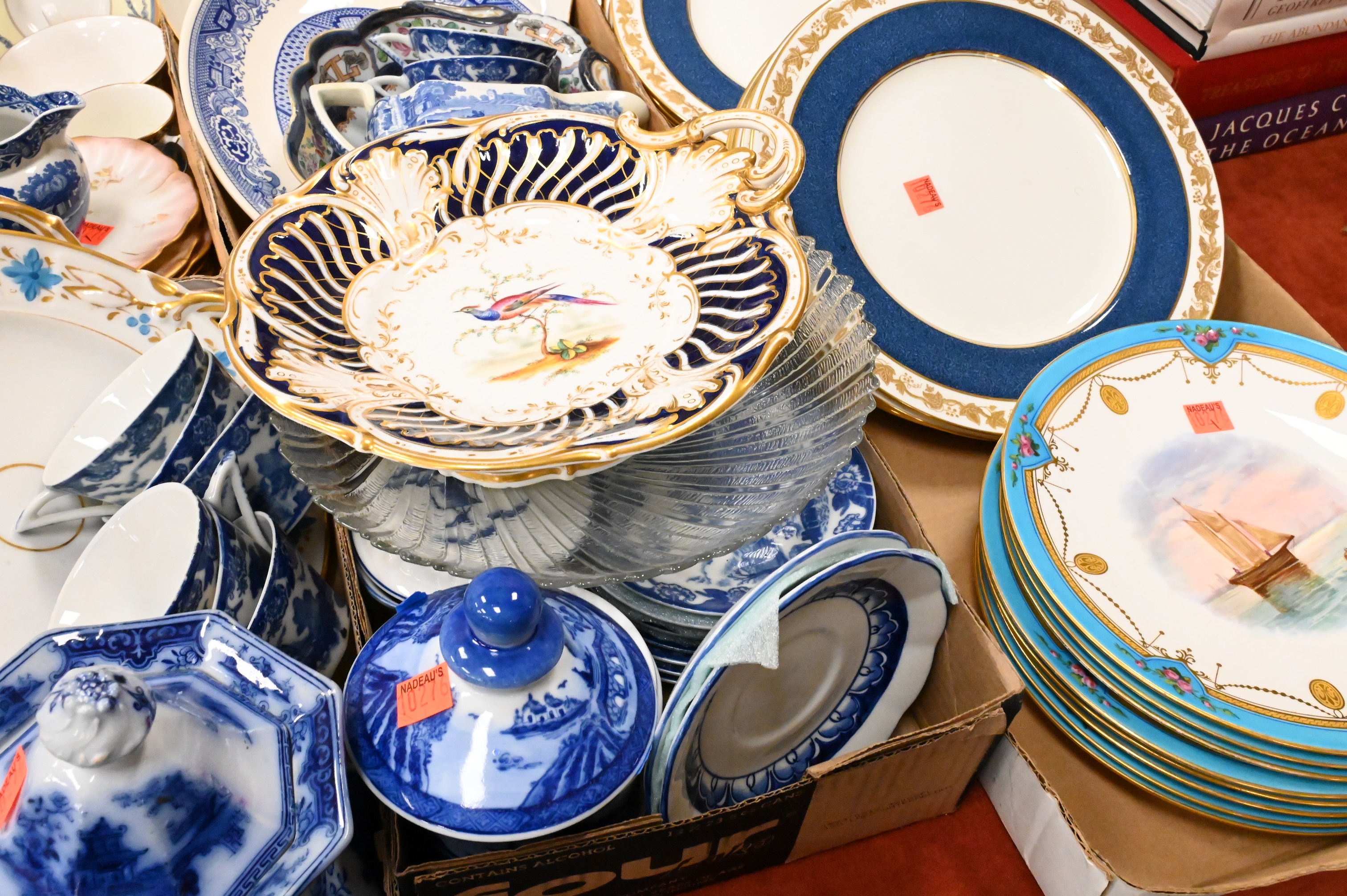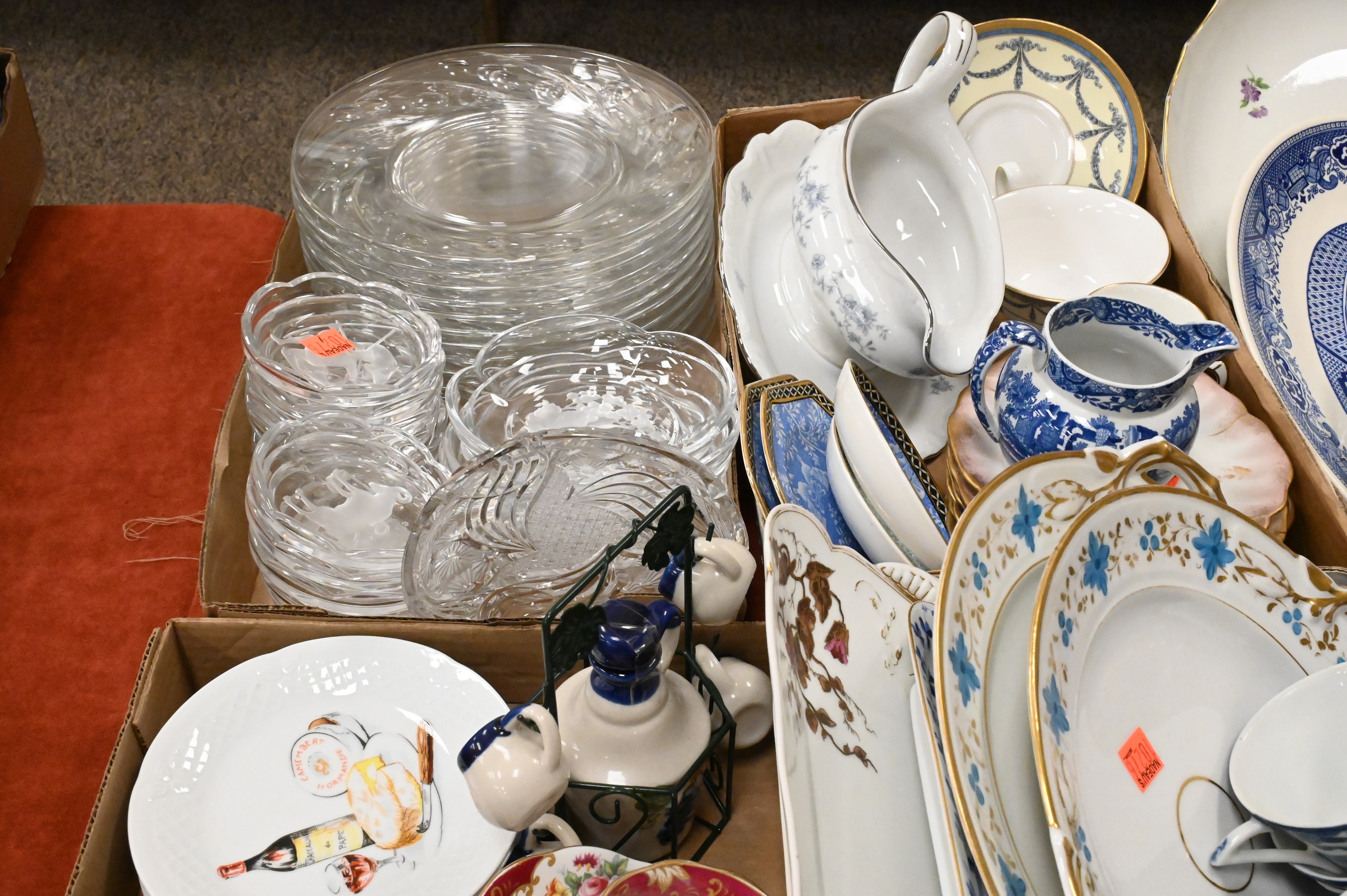 Lot 475: Eight Tray Lots of Glass and Porcelain Tableware