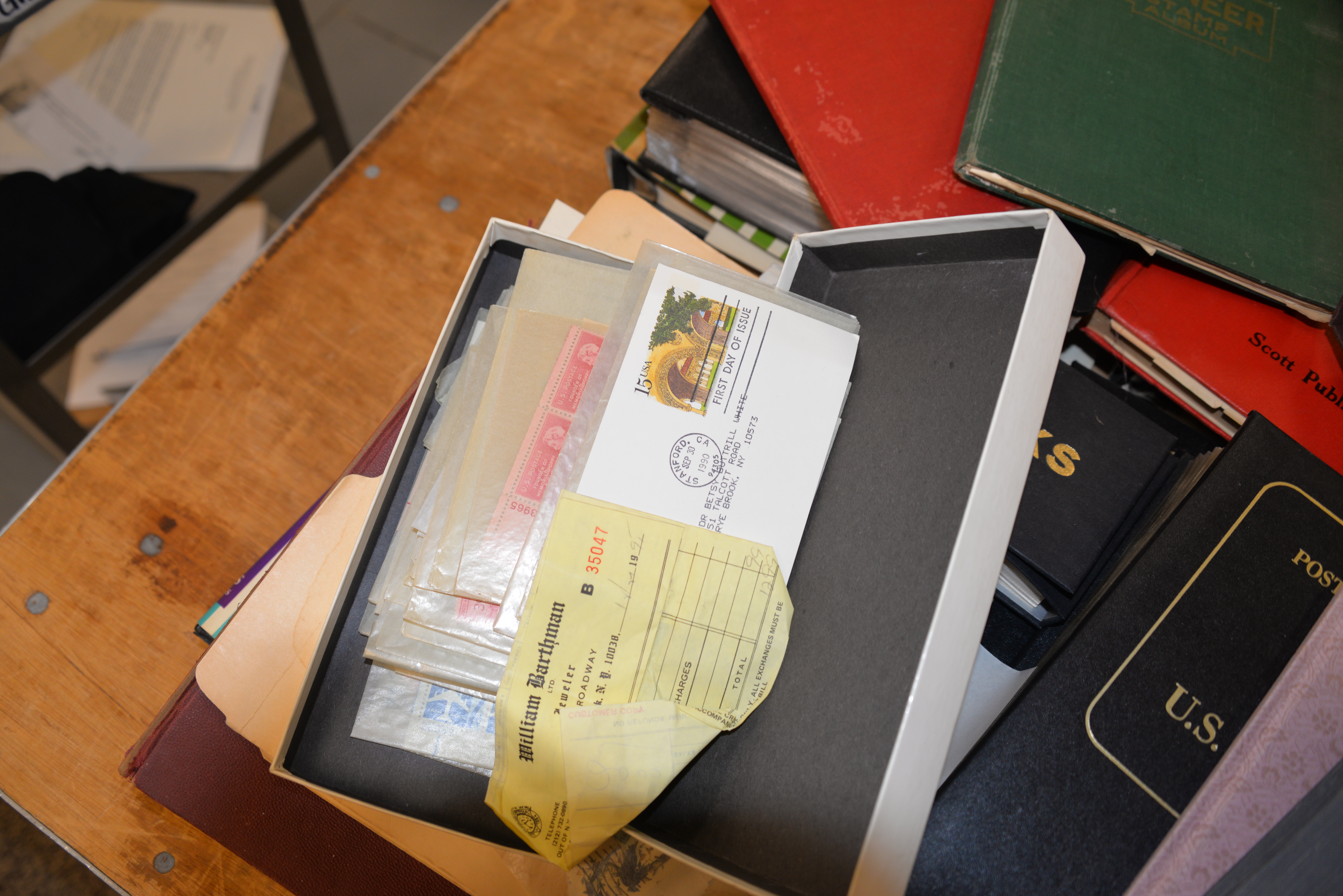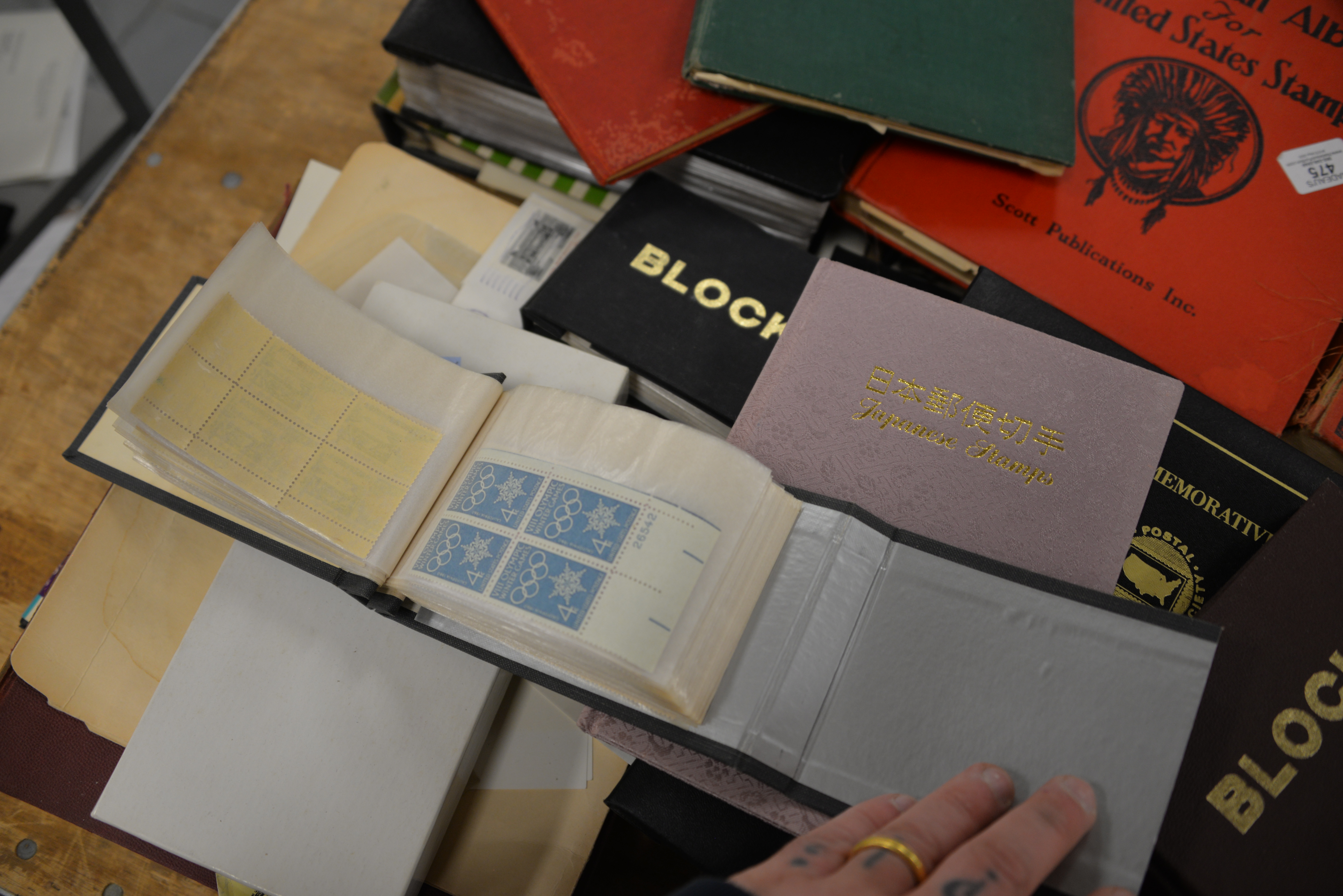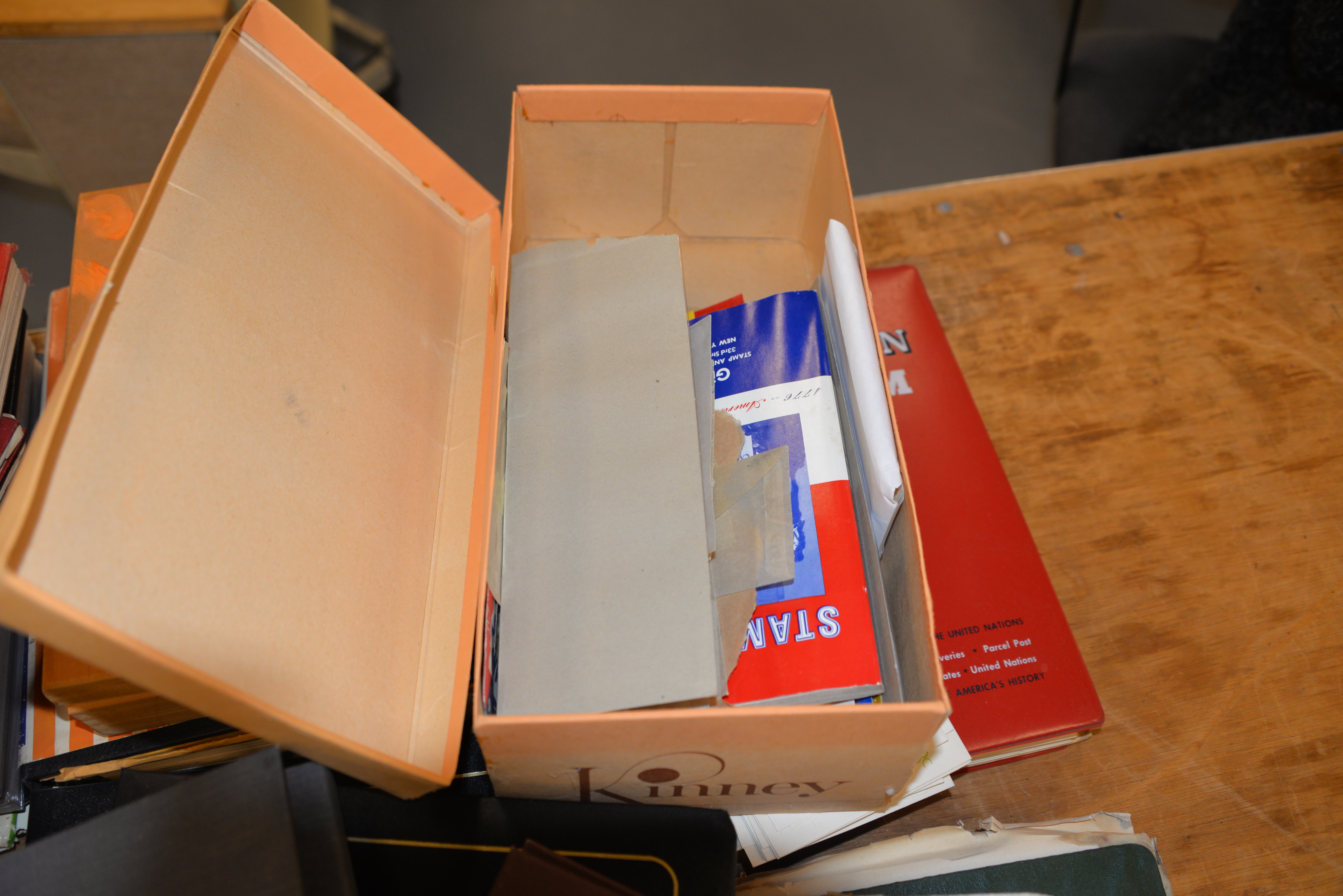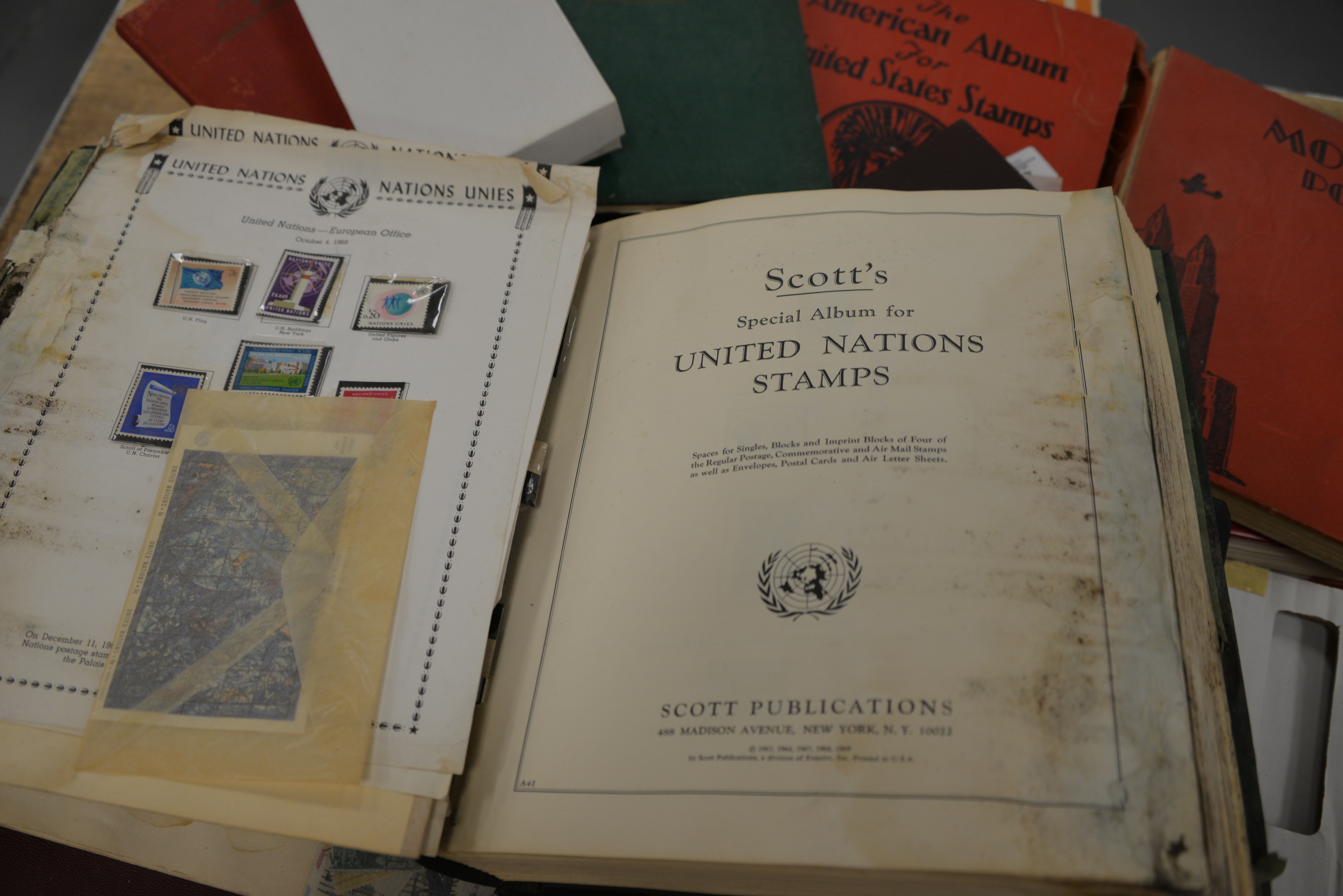 to include The American Album of United States Stamps published by Scott Publications, The All American Stamp Album, Minkus Publications, Inc., many pages filled with stamps