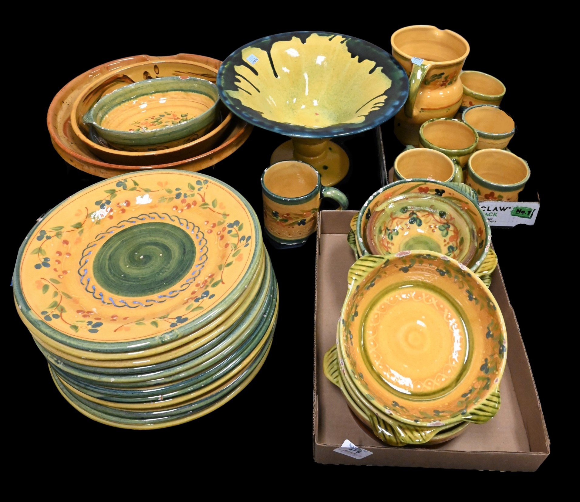 Large Lot of Redware, to include dishes, plates, mugs, many pieces unmarked.