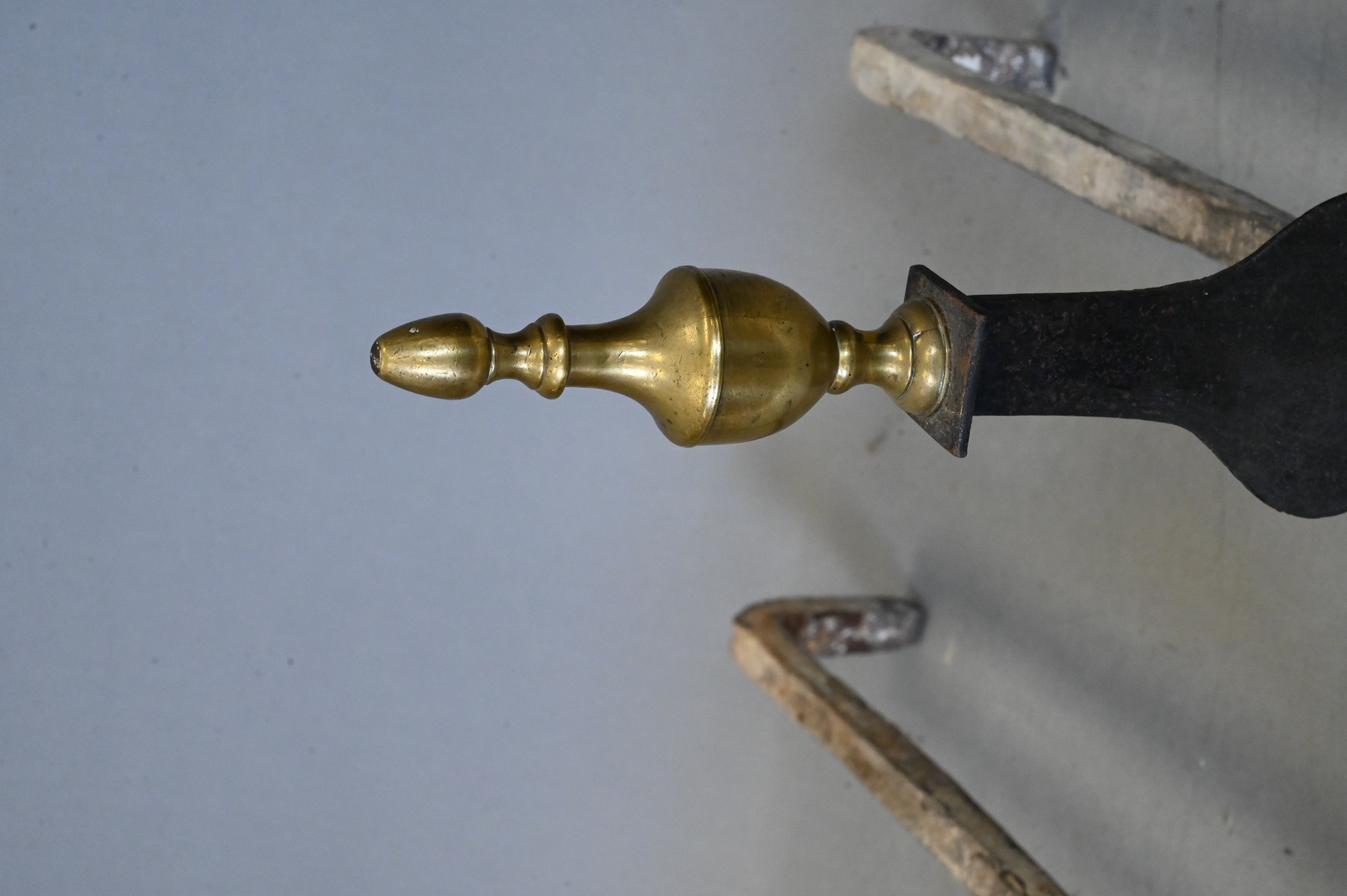 Lot 475: Pair of Federal Brass and Wrought Iron Knife Blade Andirons