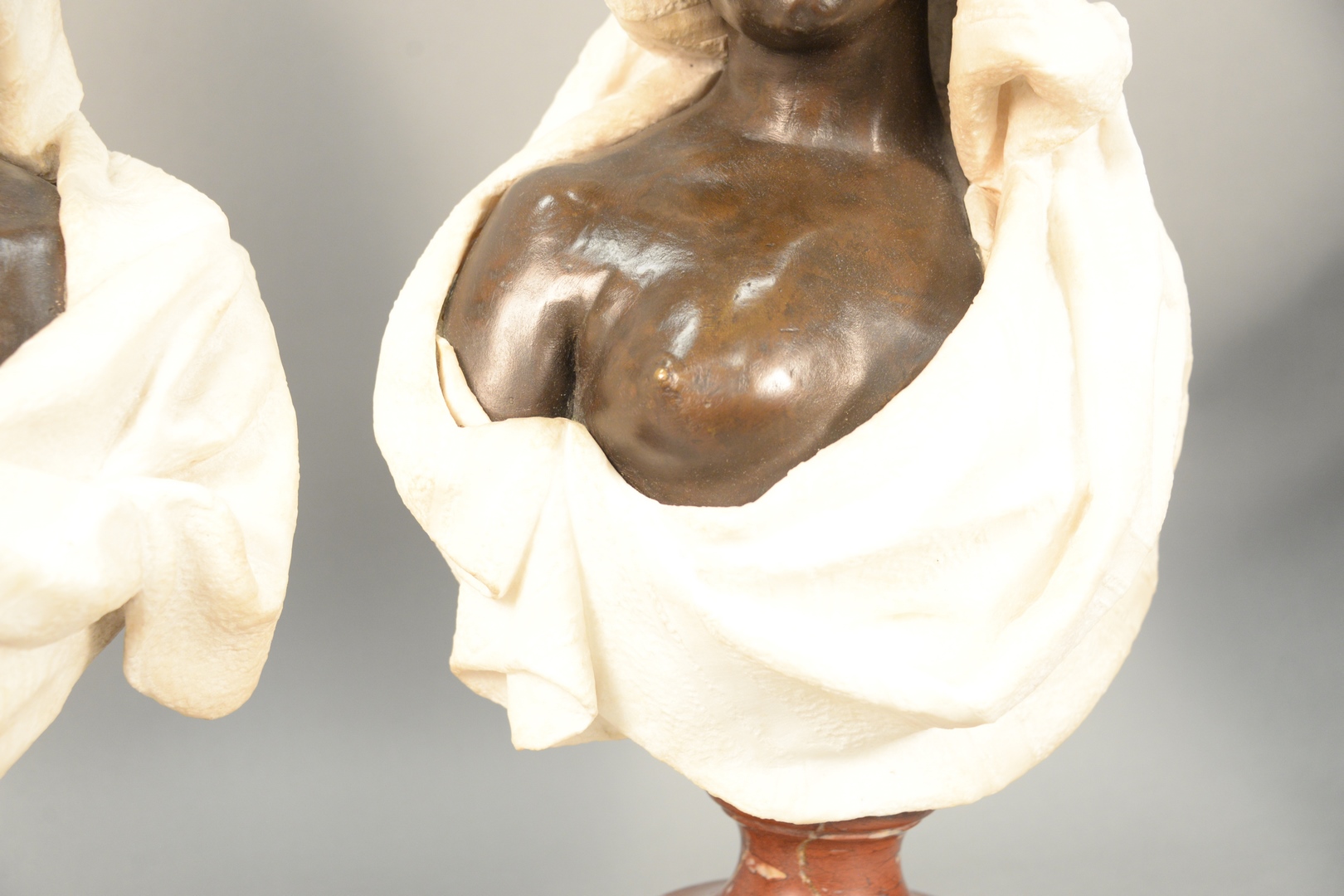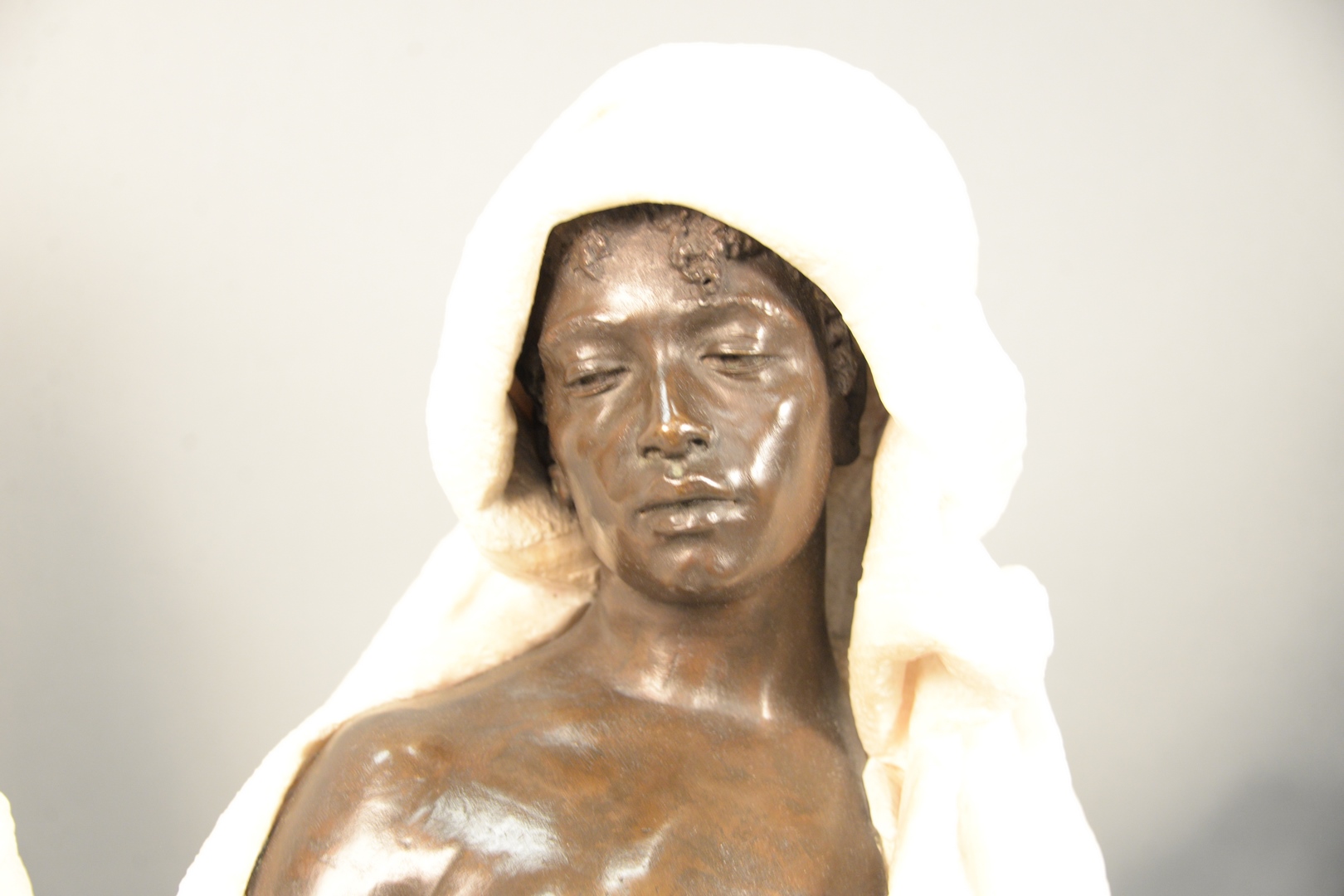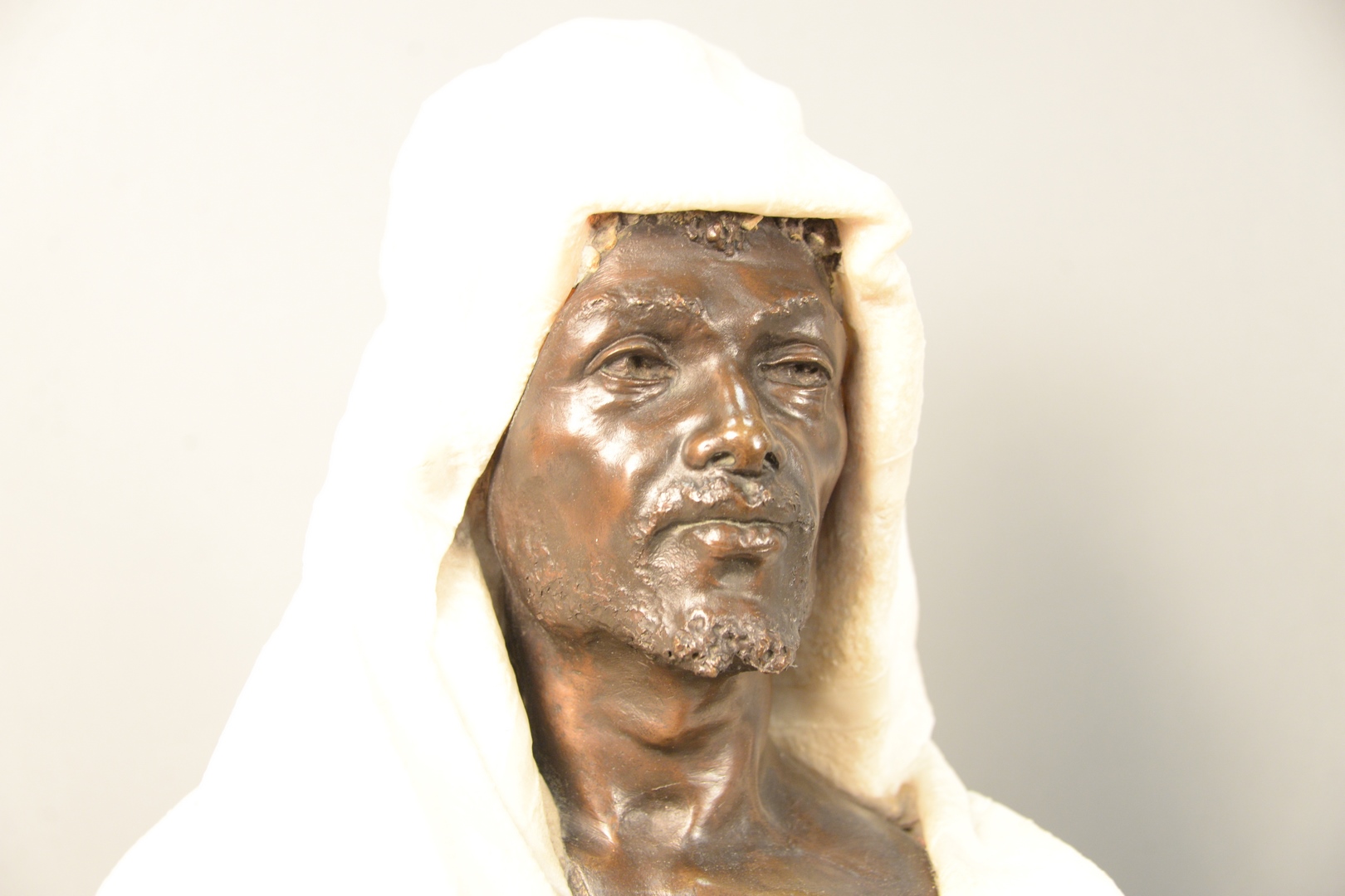 Lot 475: Pair of Leopold Bracony American, 20th Century pair of busts of Tunisian Man and Woman marble and bronze inscribed verso of…