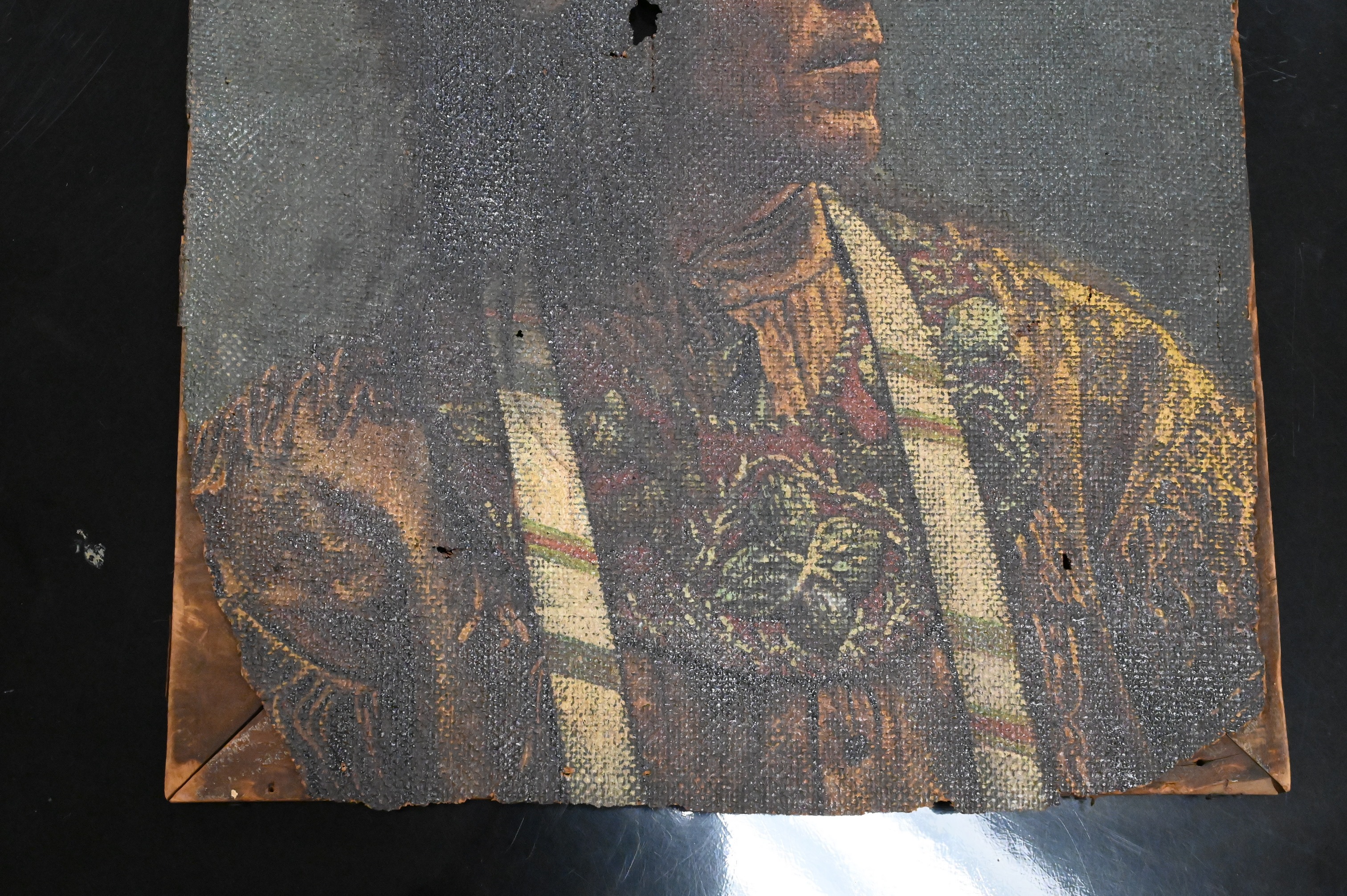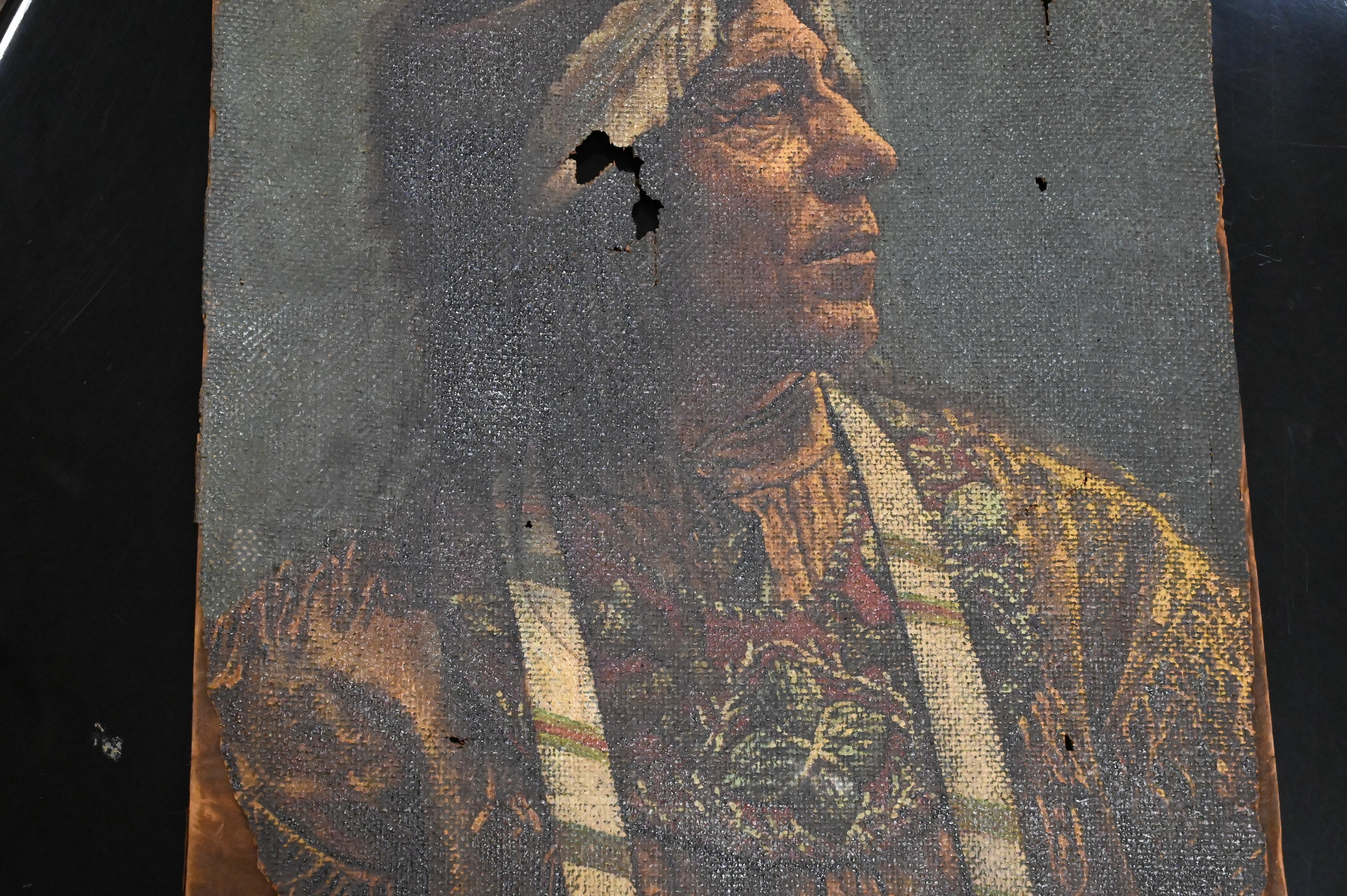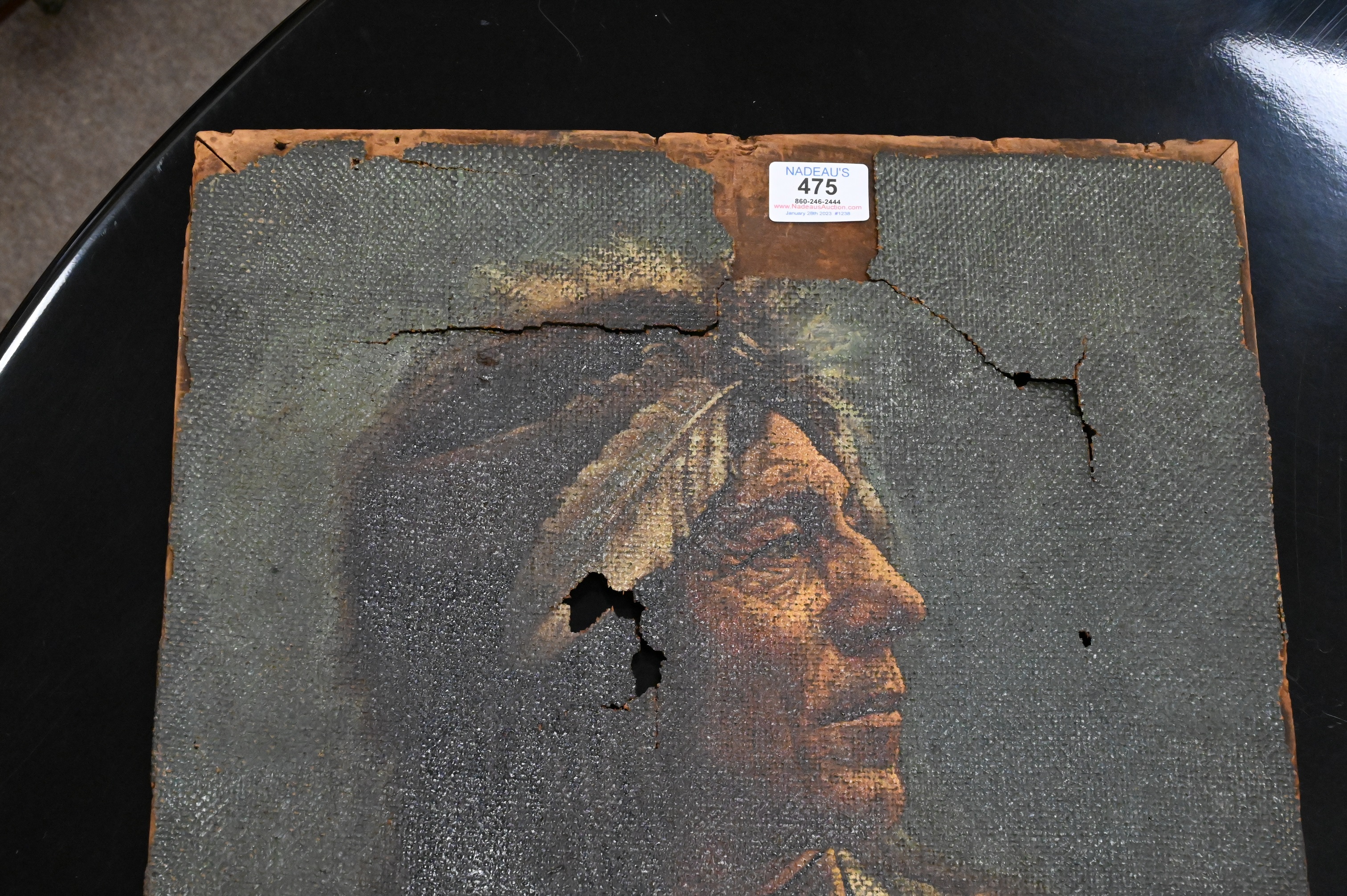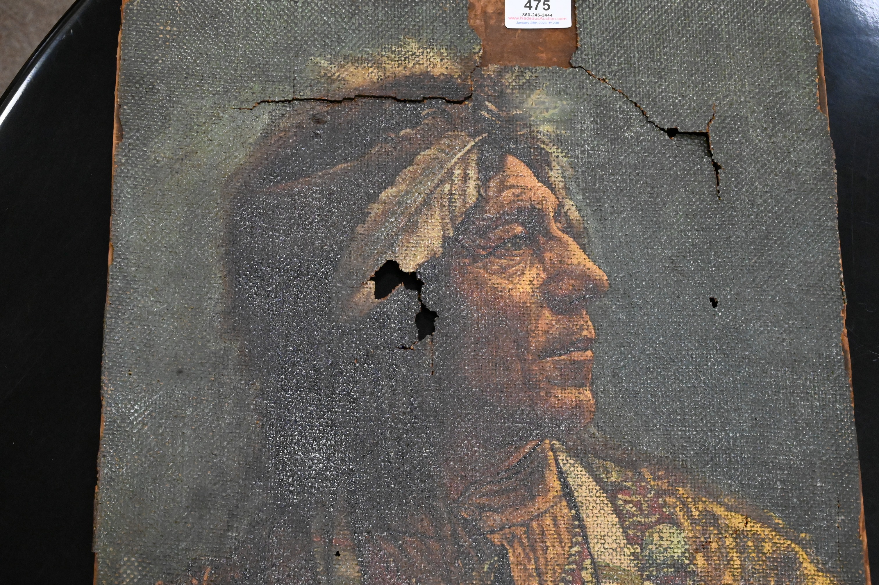 Portrait of an Indian with Headdress, oil on canvas, unsigned, (as is), 20″ x 16″.