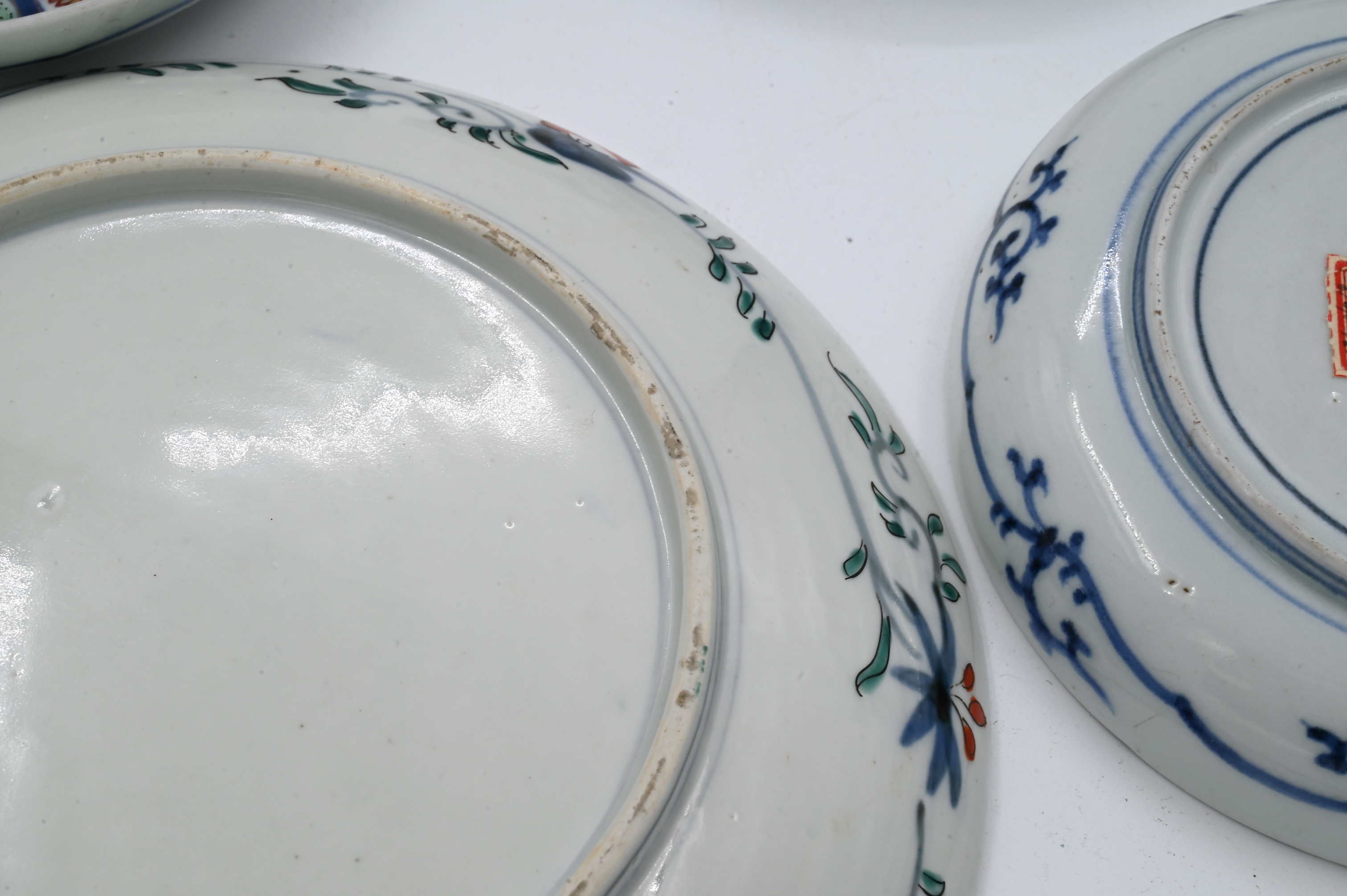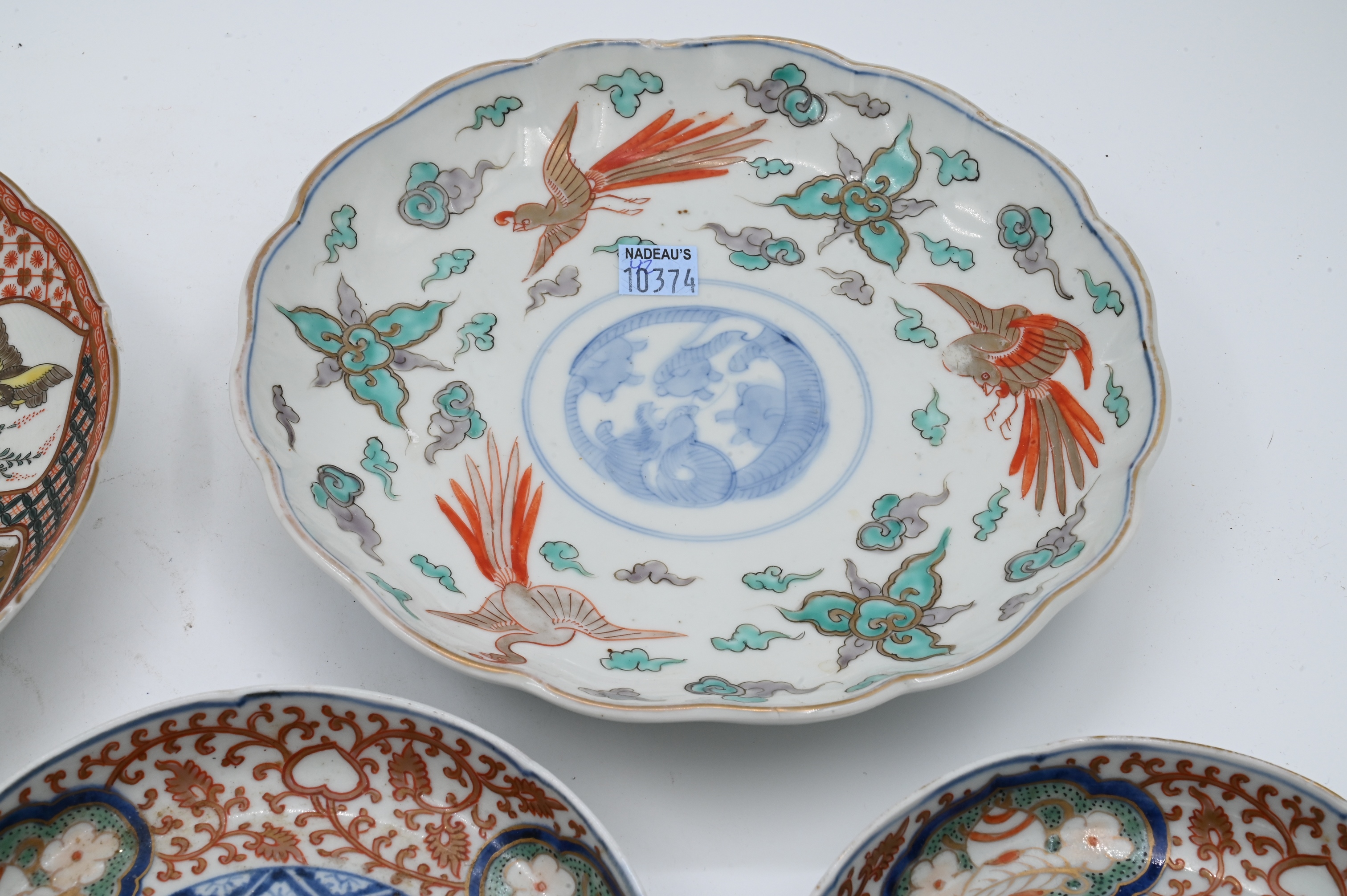 famille verte scallop rimmed plate having pheasant and dragon motif,