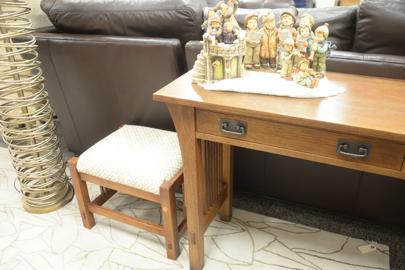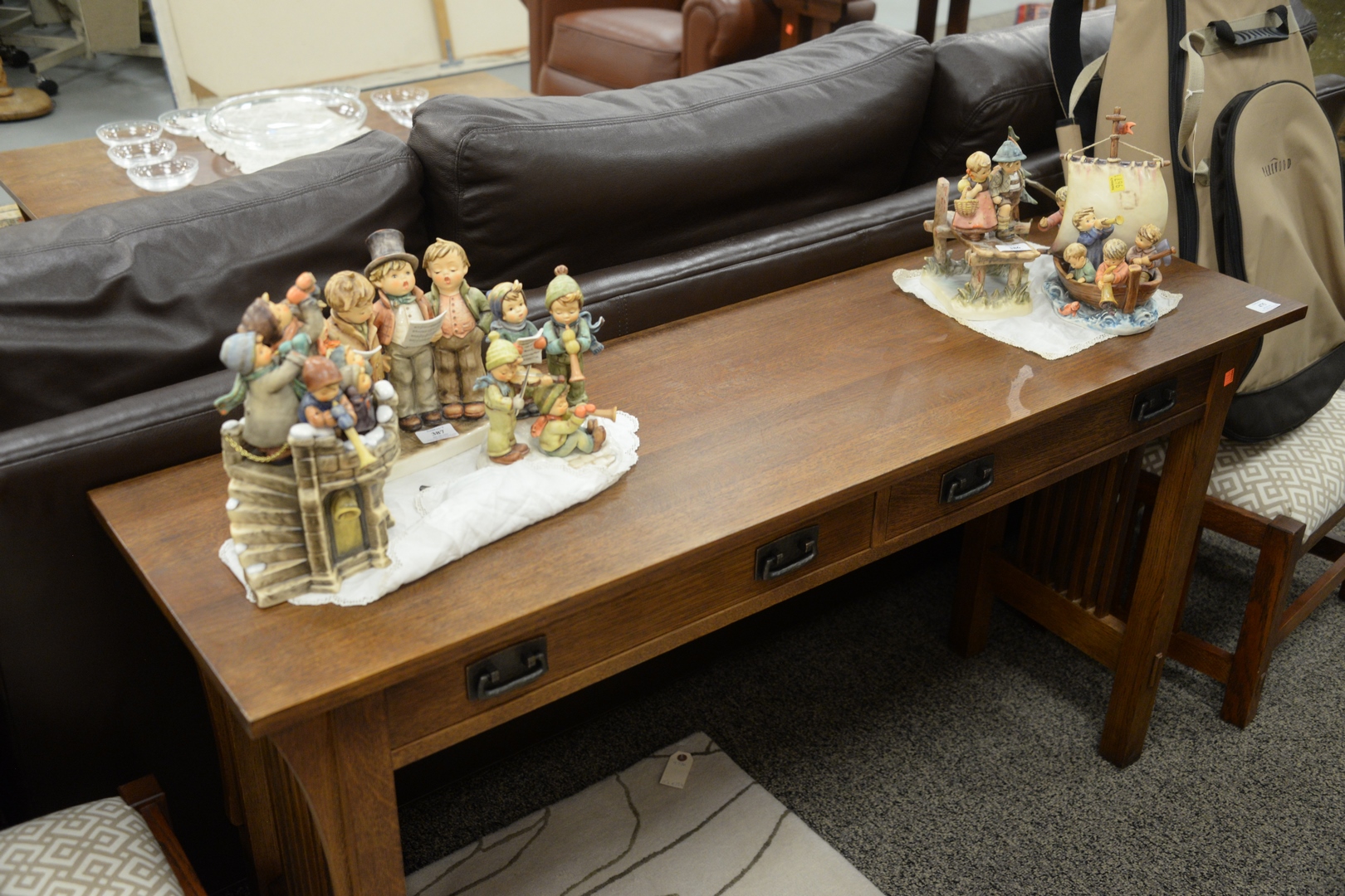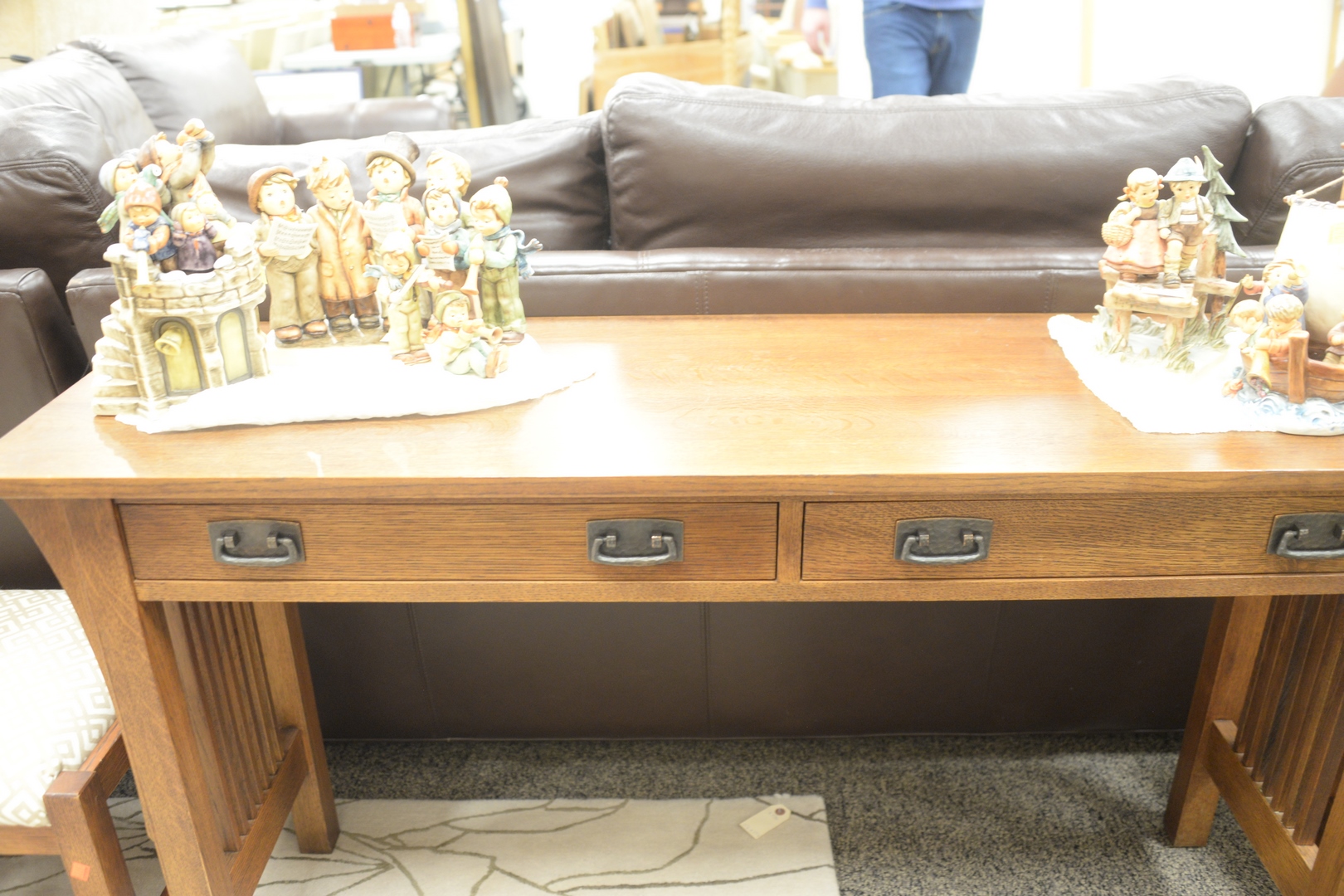 Stickley Mission Oak Hall Table, with two drawers, height 28 1/2 inches, top 16″ x 54″.