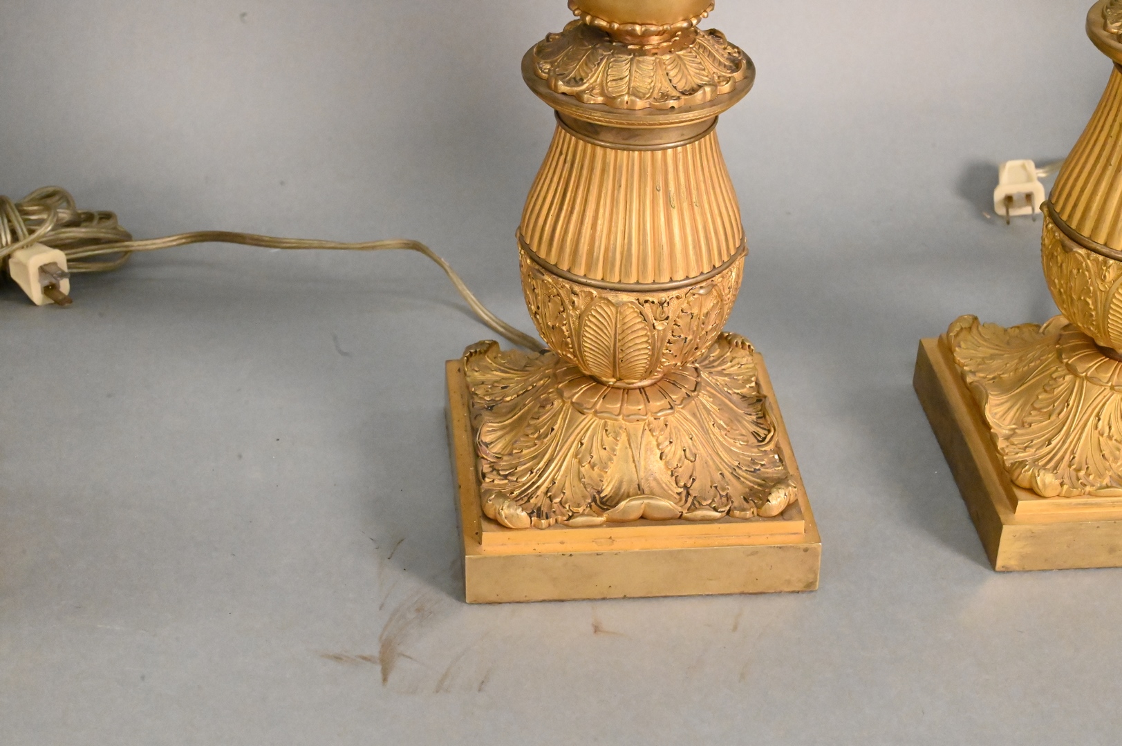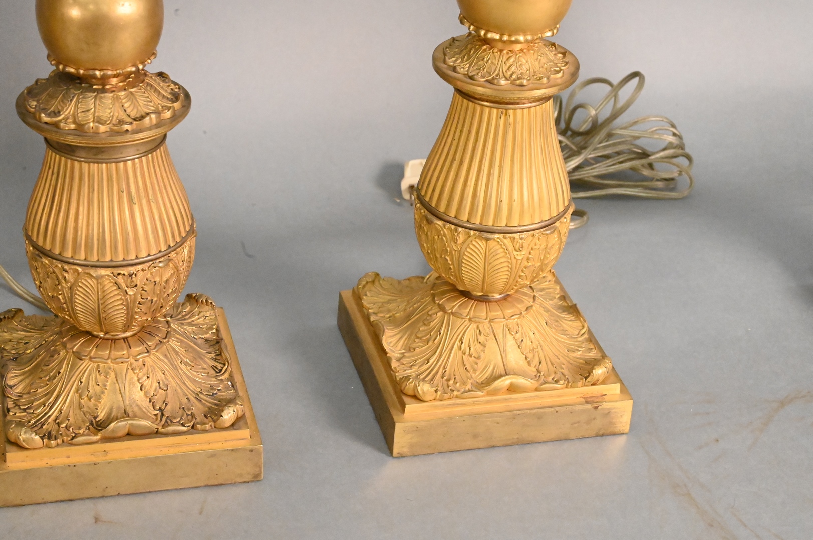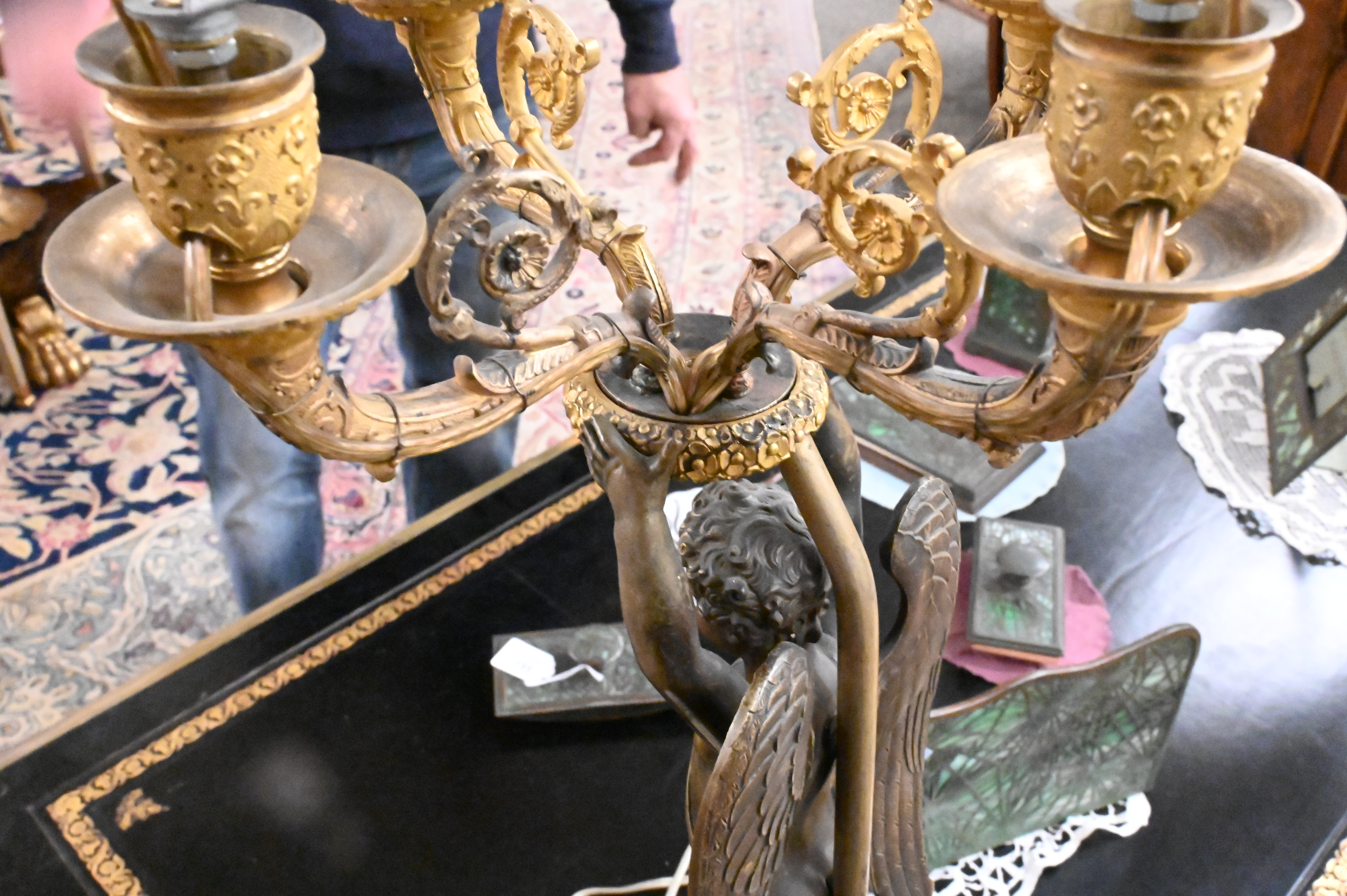 Lot 475: Two Similar Pairs of French Empire Ormolu and Bronze Five Light Candelabras