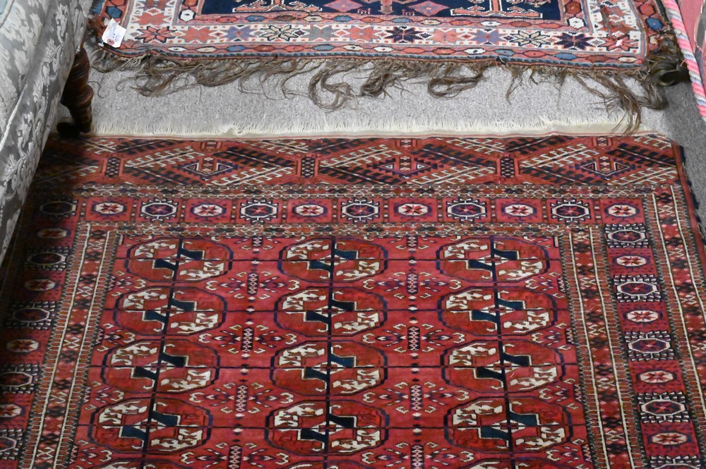 Bokara Oriental Scatter Rug, 3′ 8″ x 4′.