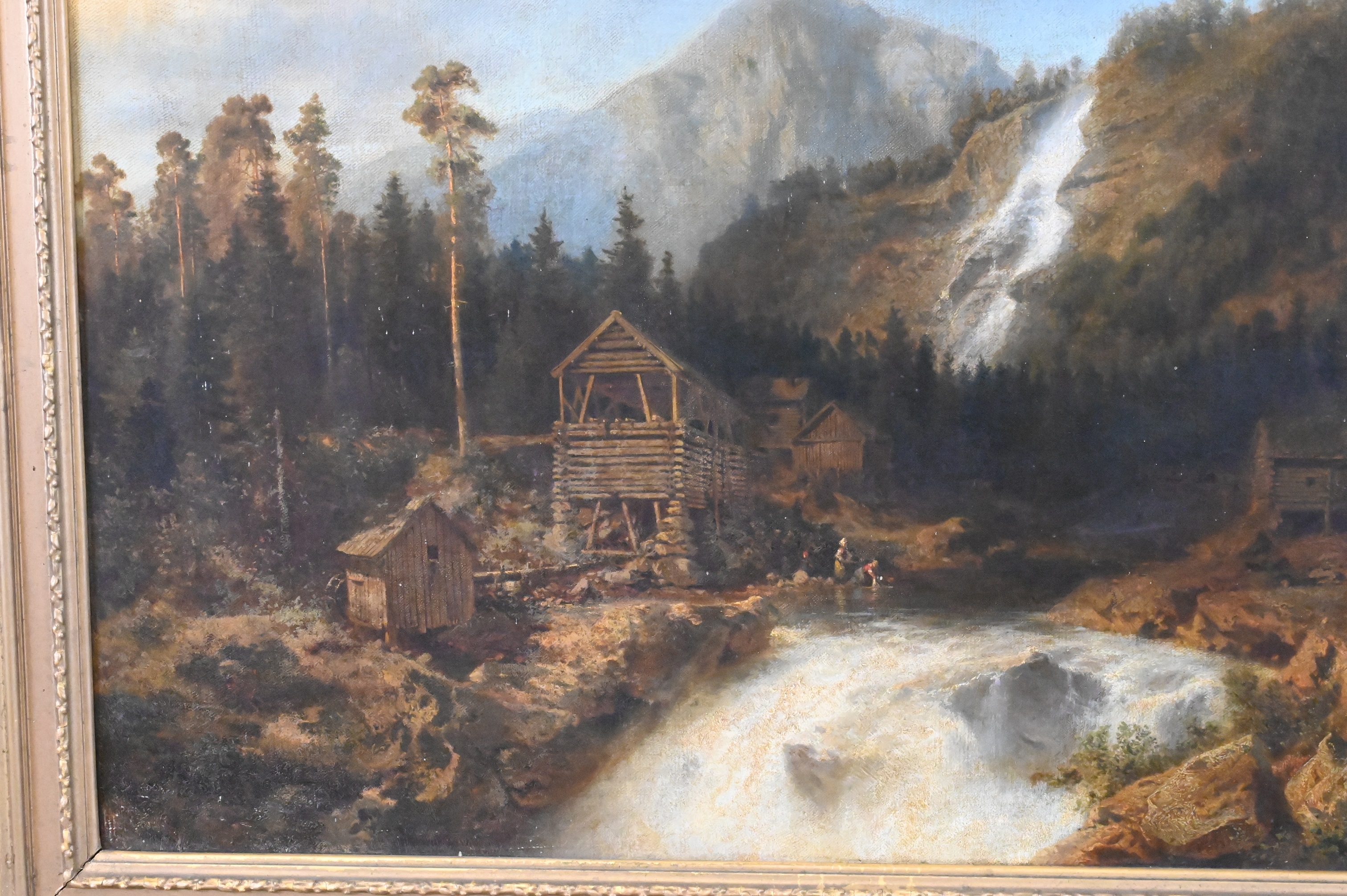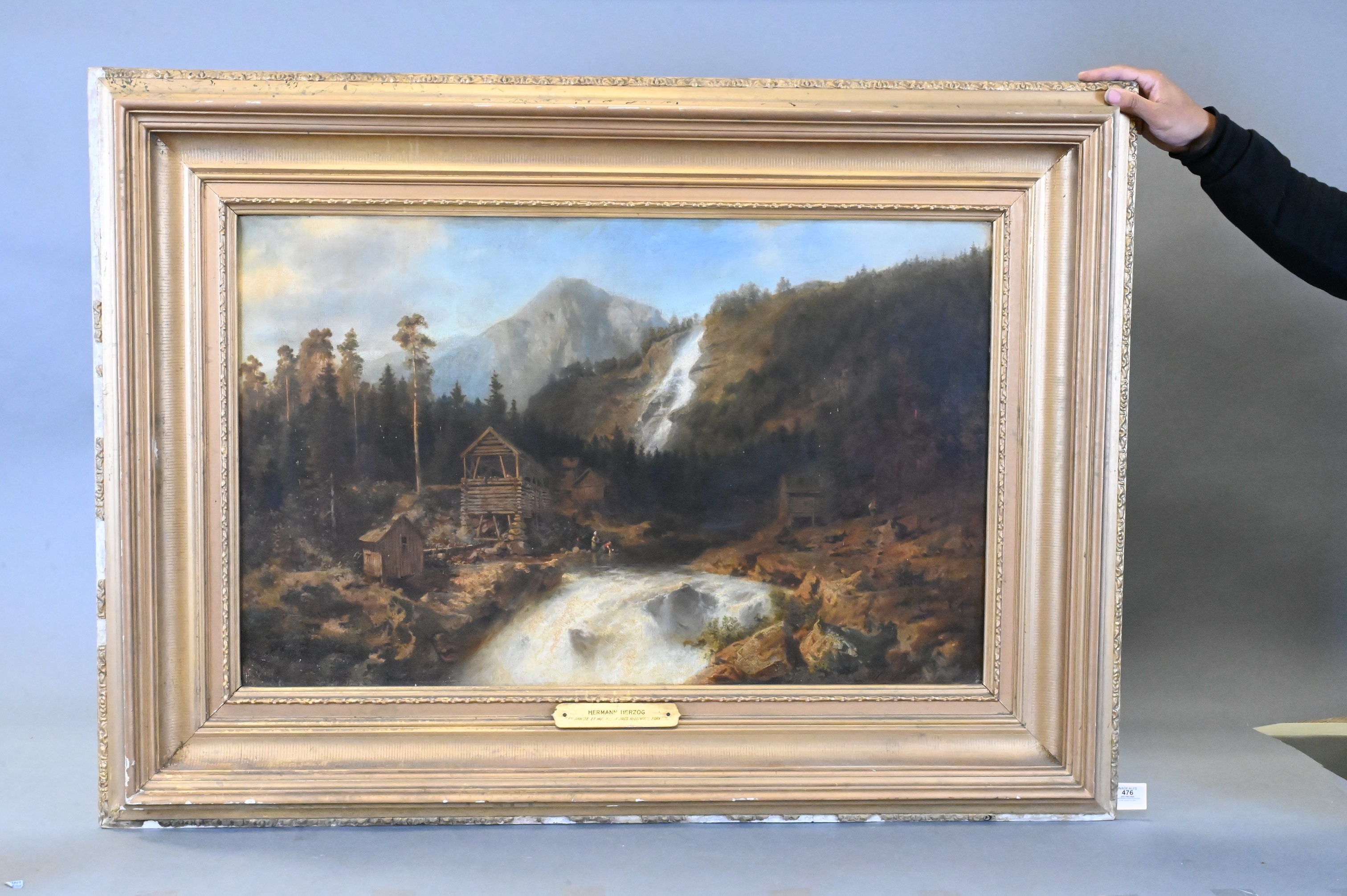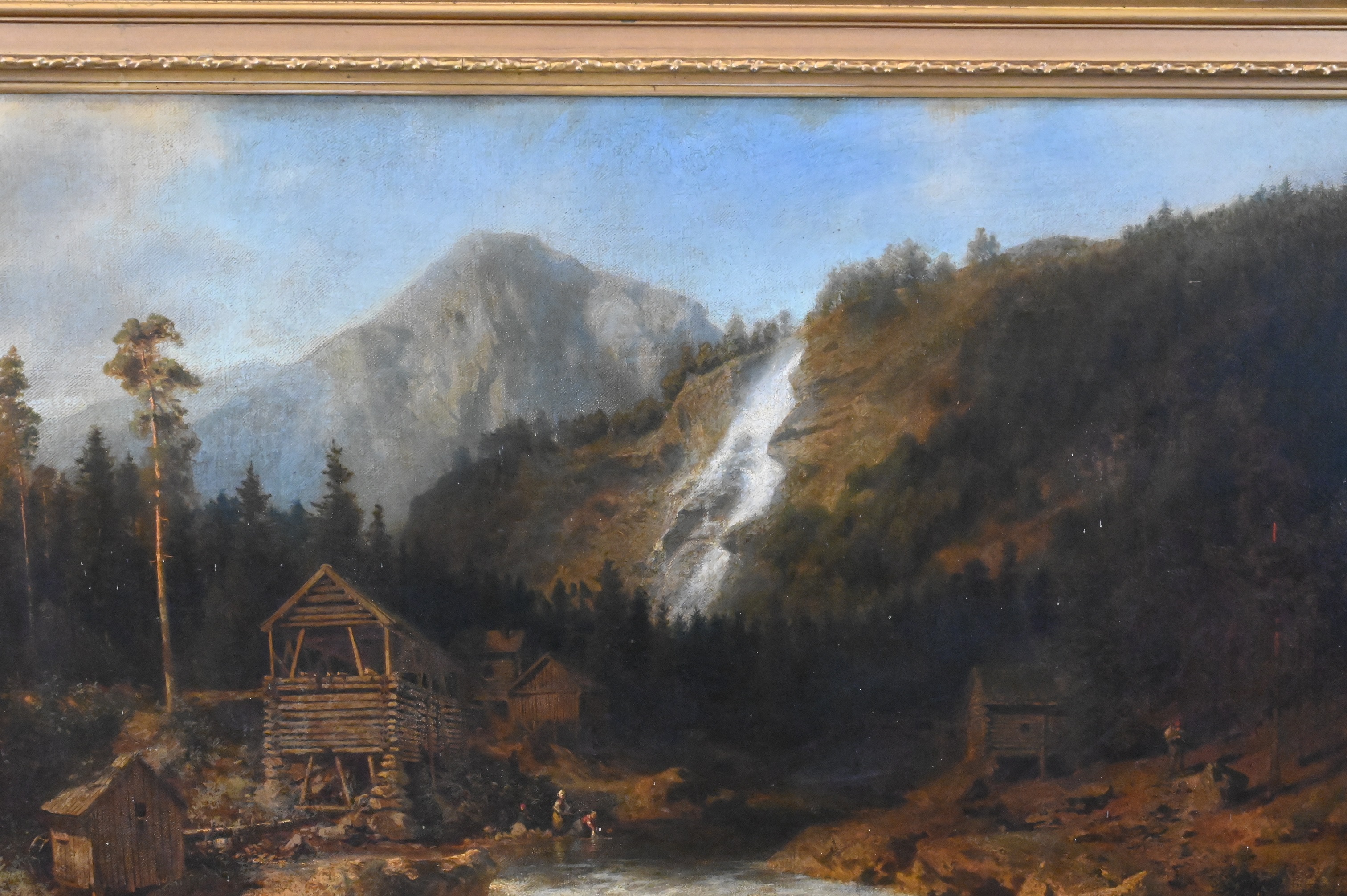 Waterfall and Loggers in the Mountains of Hallingdal, Norway, 1858