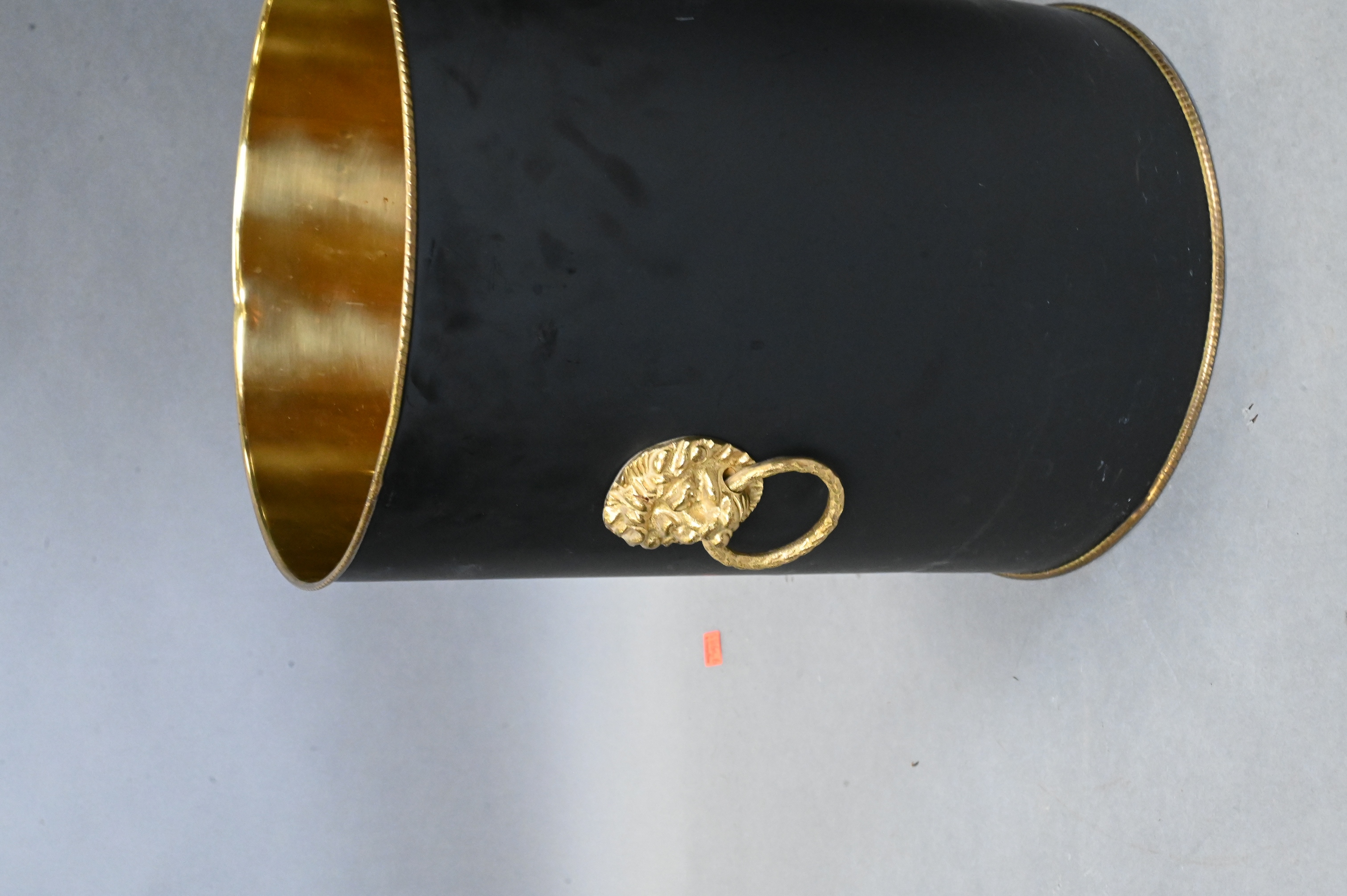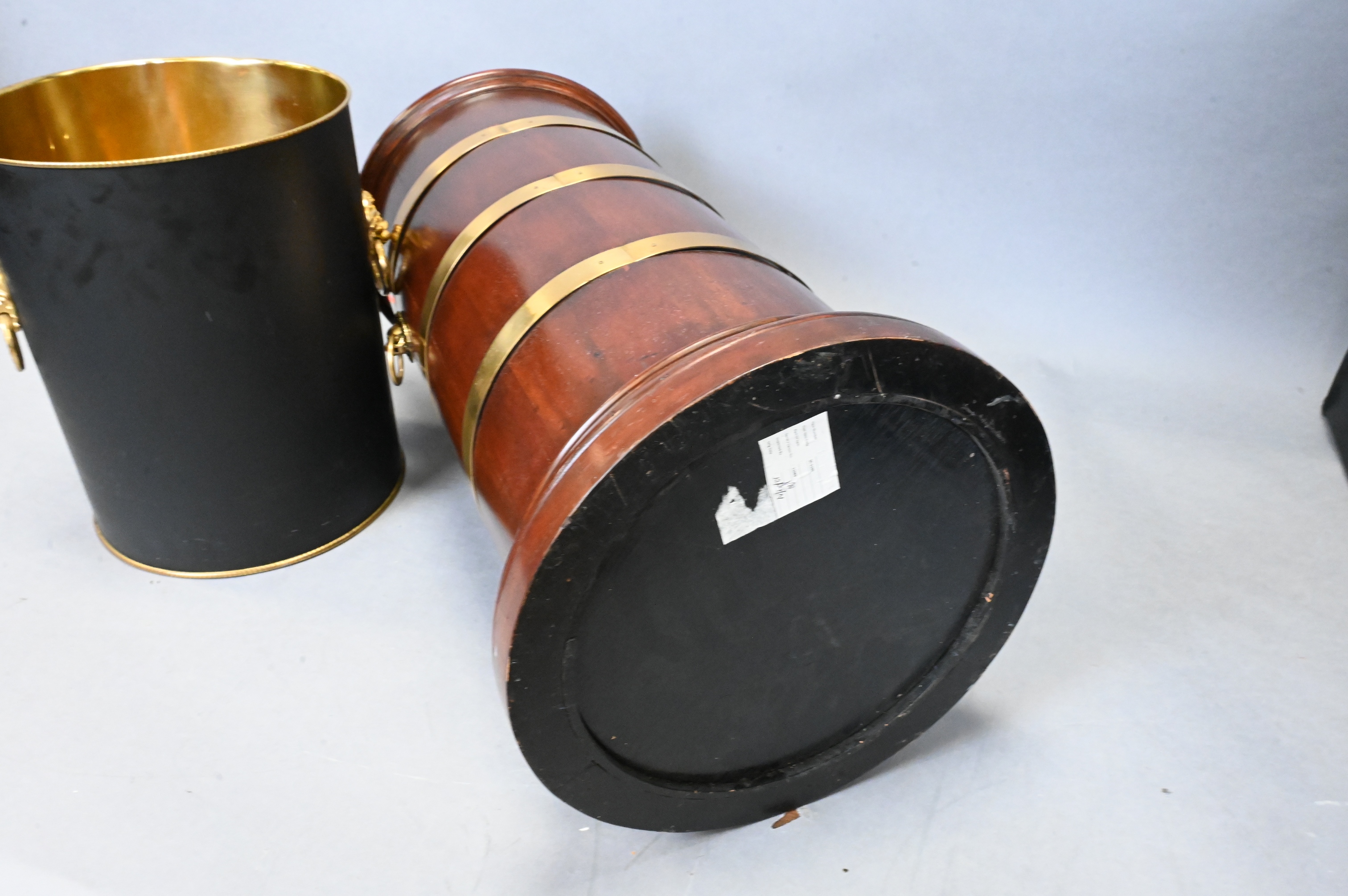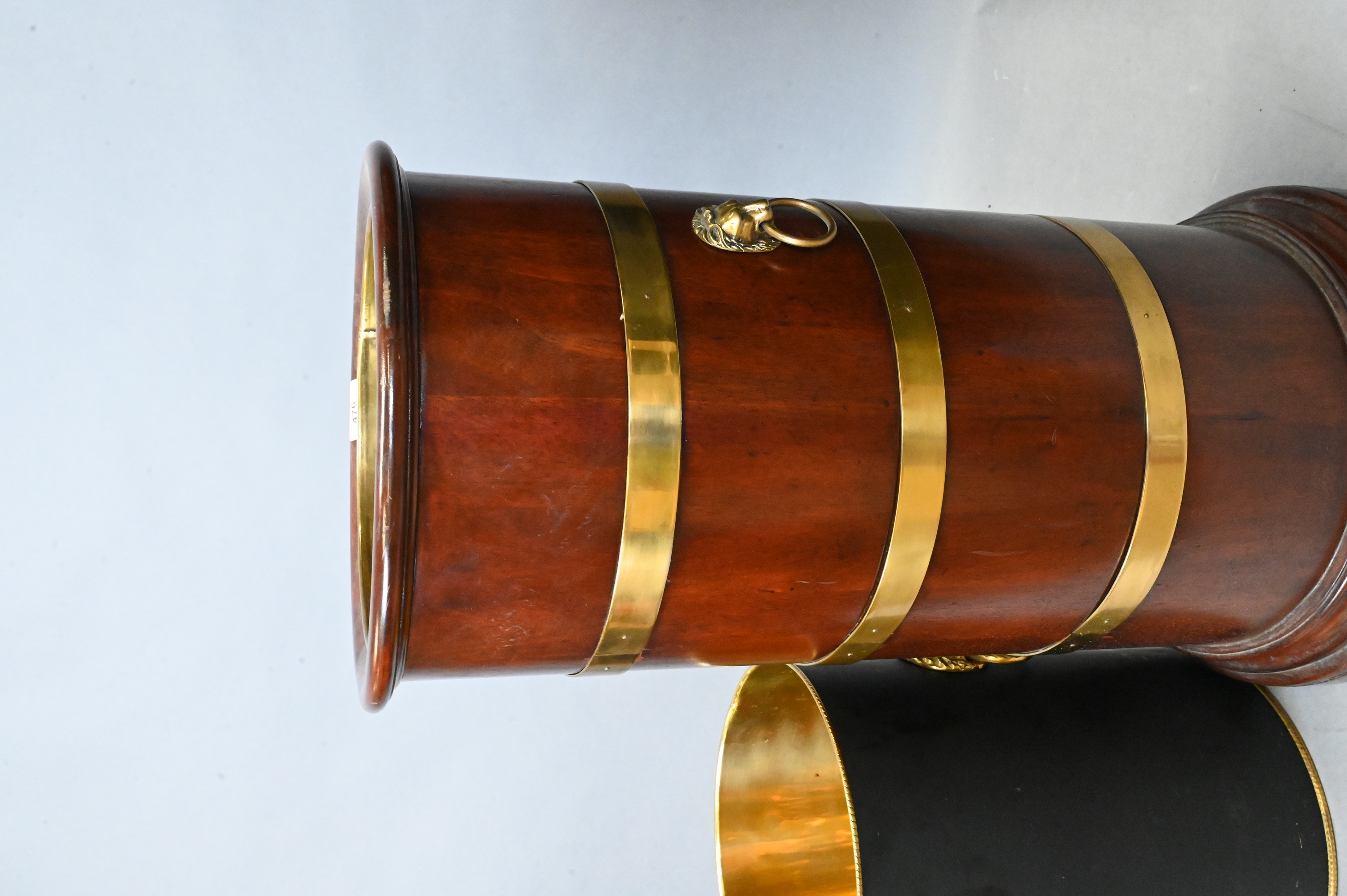 Lot 476: Mahogany Brass Trimmed Umbrella Holder and Brass Waste Basket