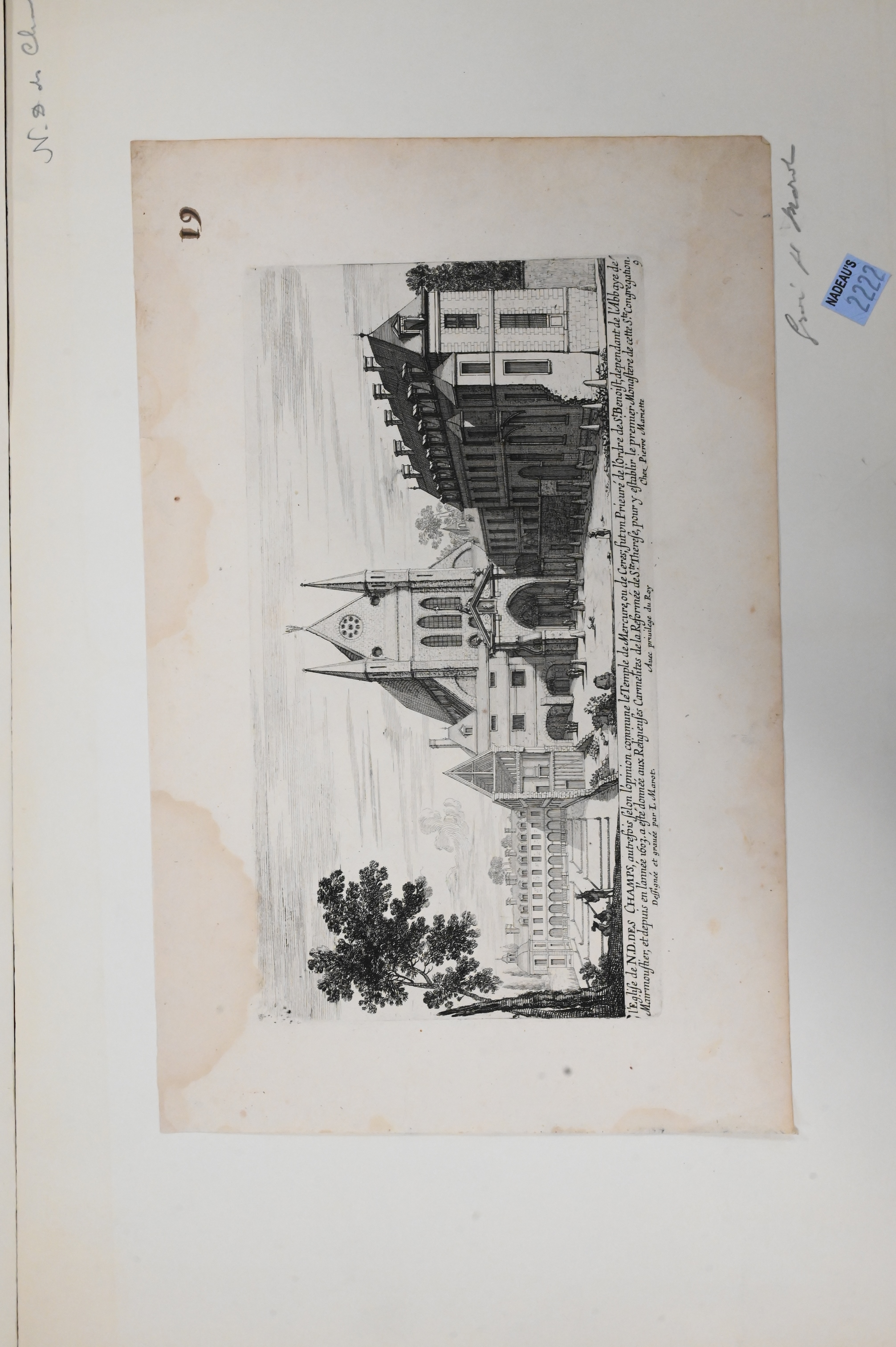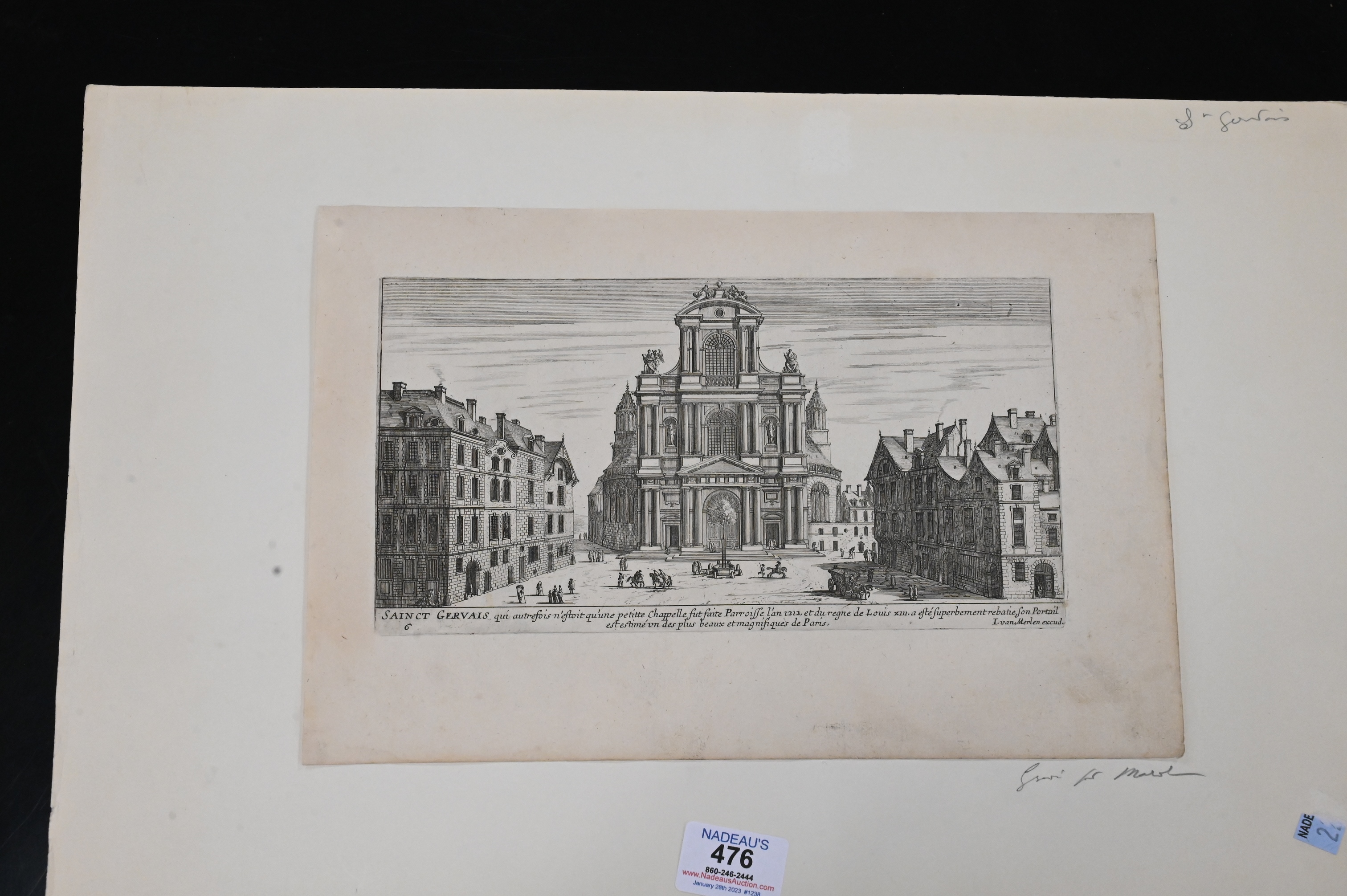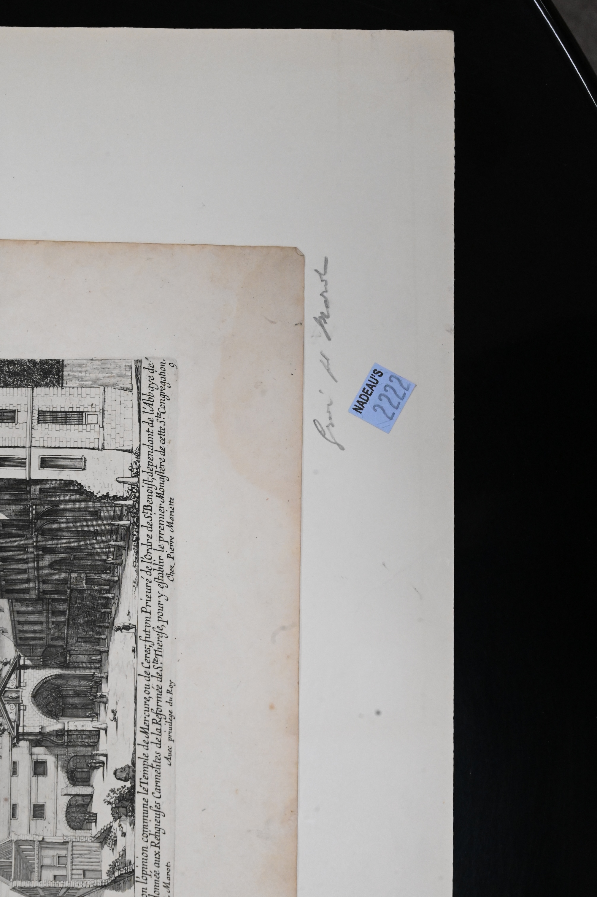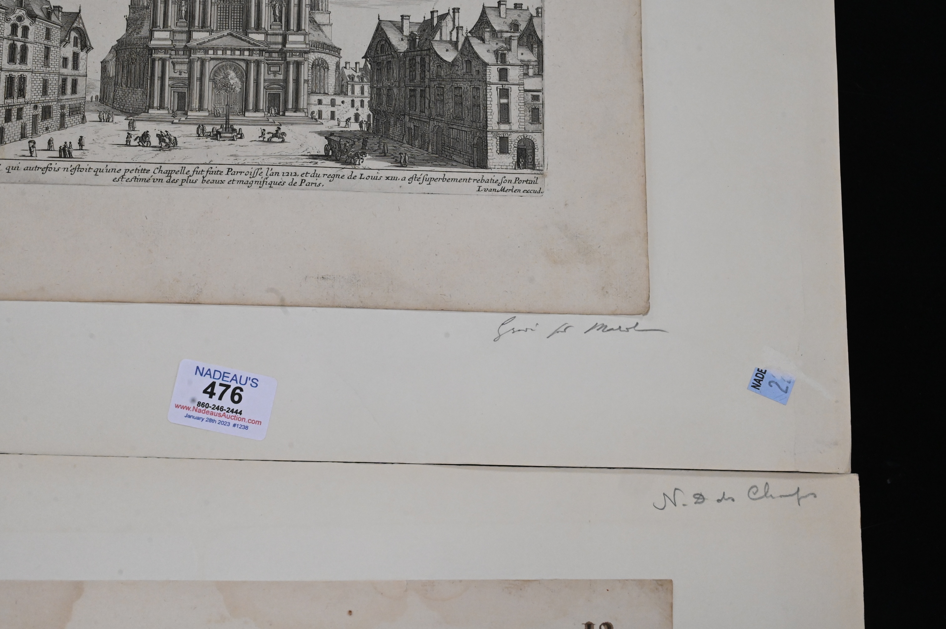 Two Jean Marot Engravings, “Sain CT Gervals, I. Van Merlen” along with Eglife de Champs Ches Pierre Mariette, 5 1/4″ x 10″. Provenance: Estate of Dr. Vallo Benjamin E 57th St New York
