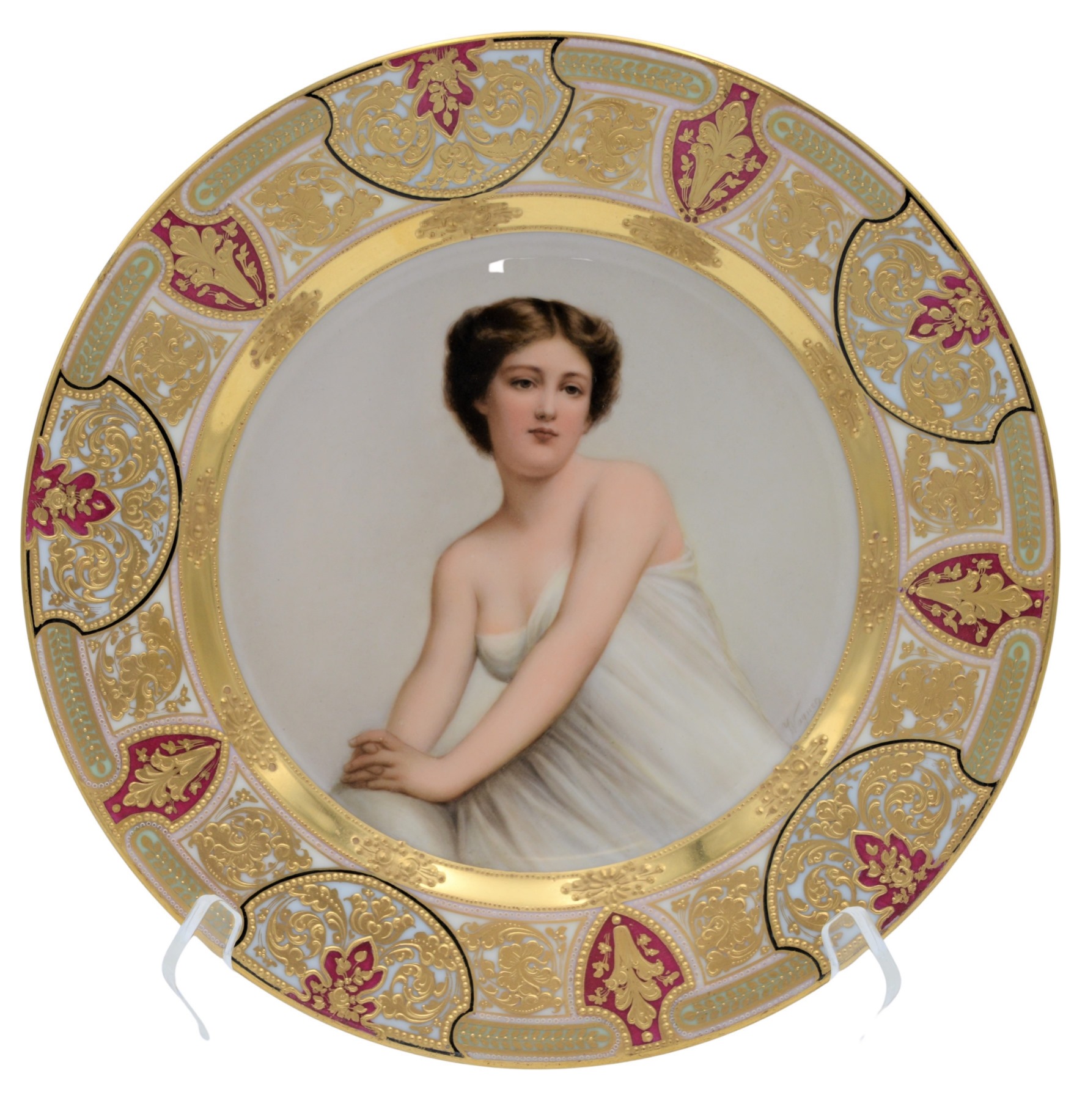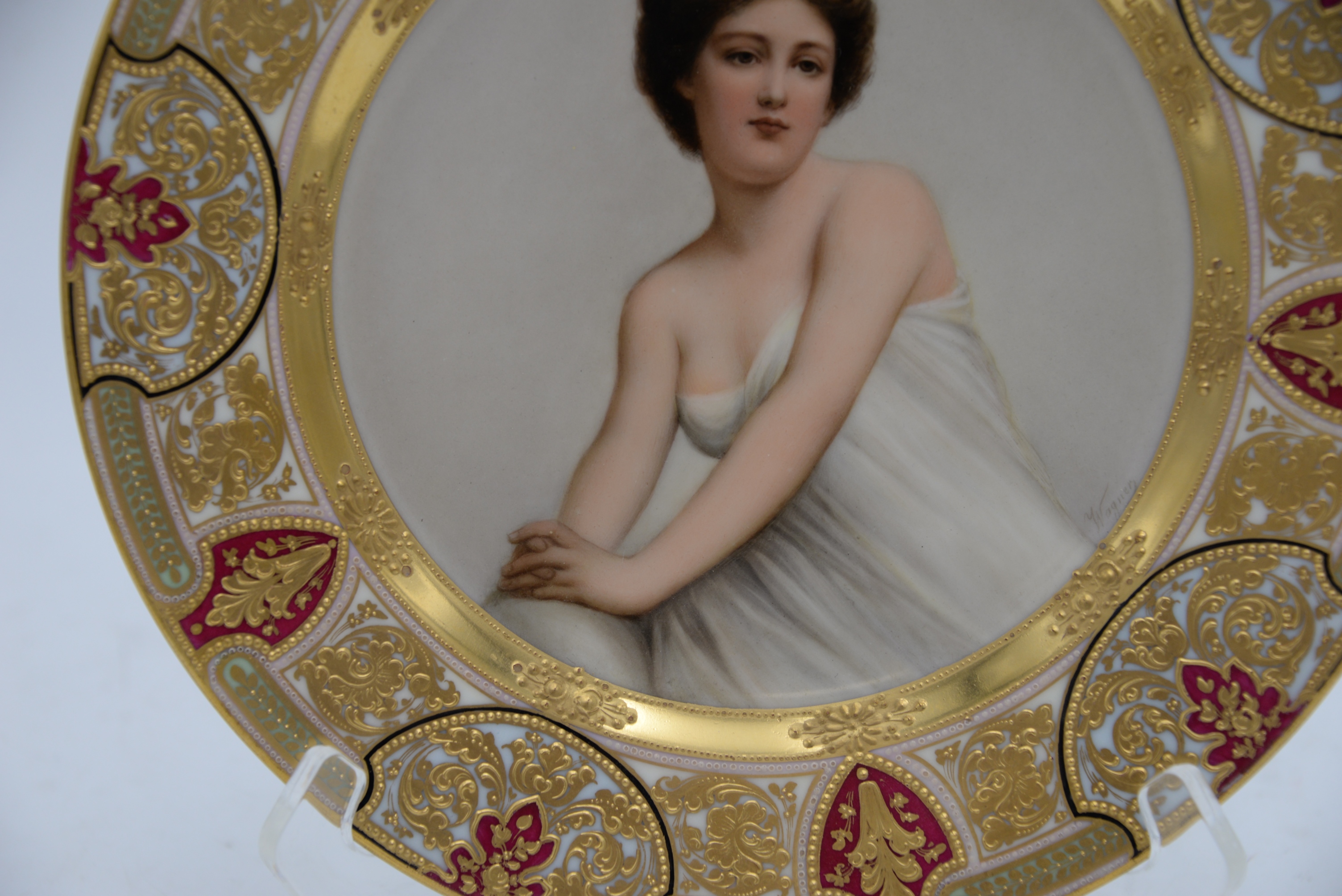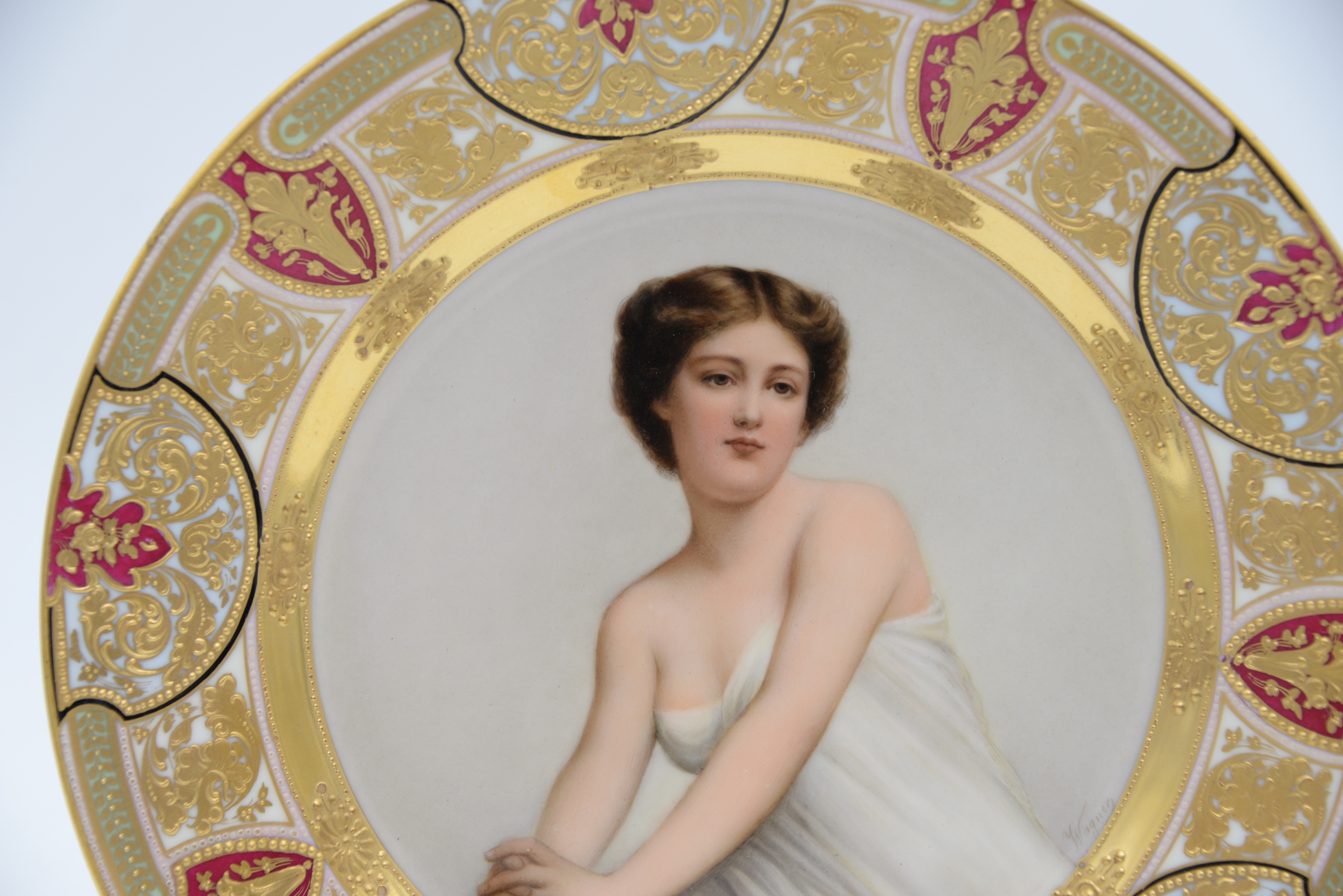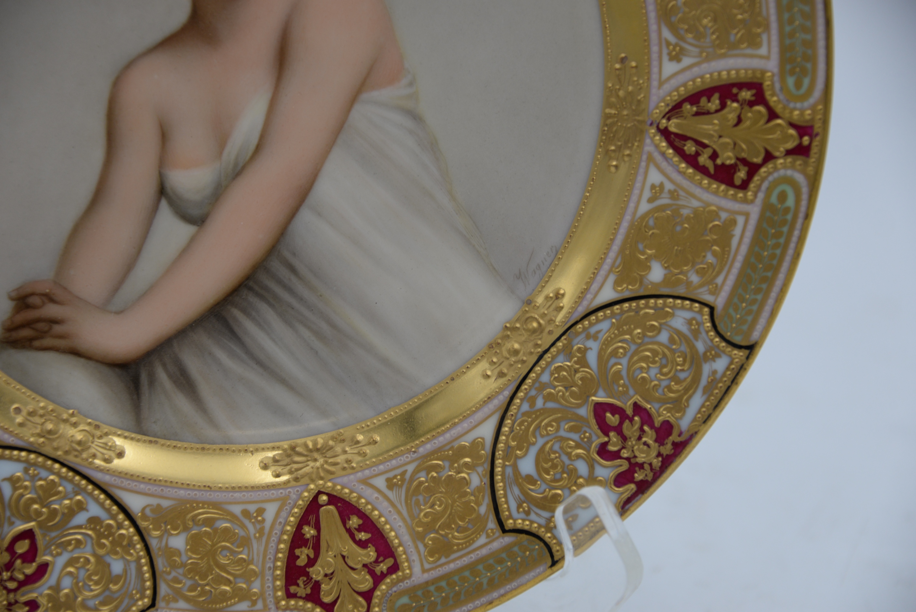 Wagner Royal Vienna Portrait Plate, “Unschuld”, with high relief border, diameter 9 1/2 inches.