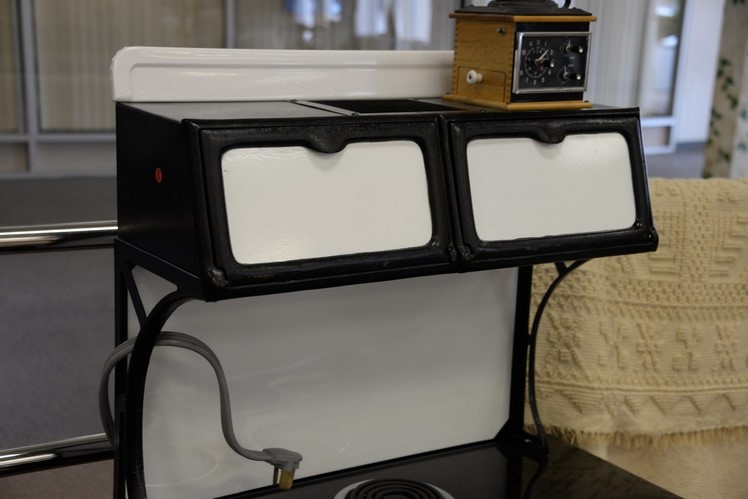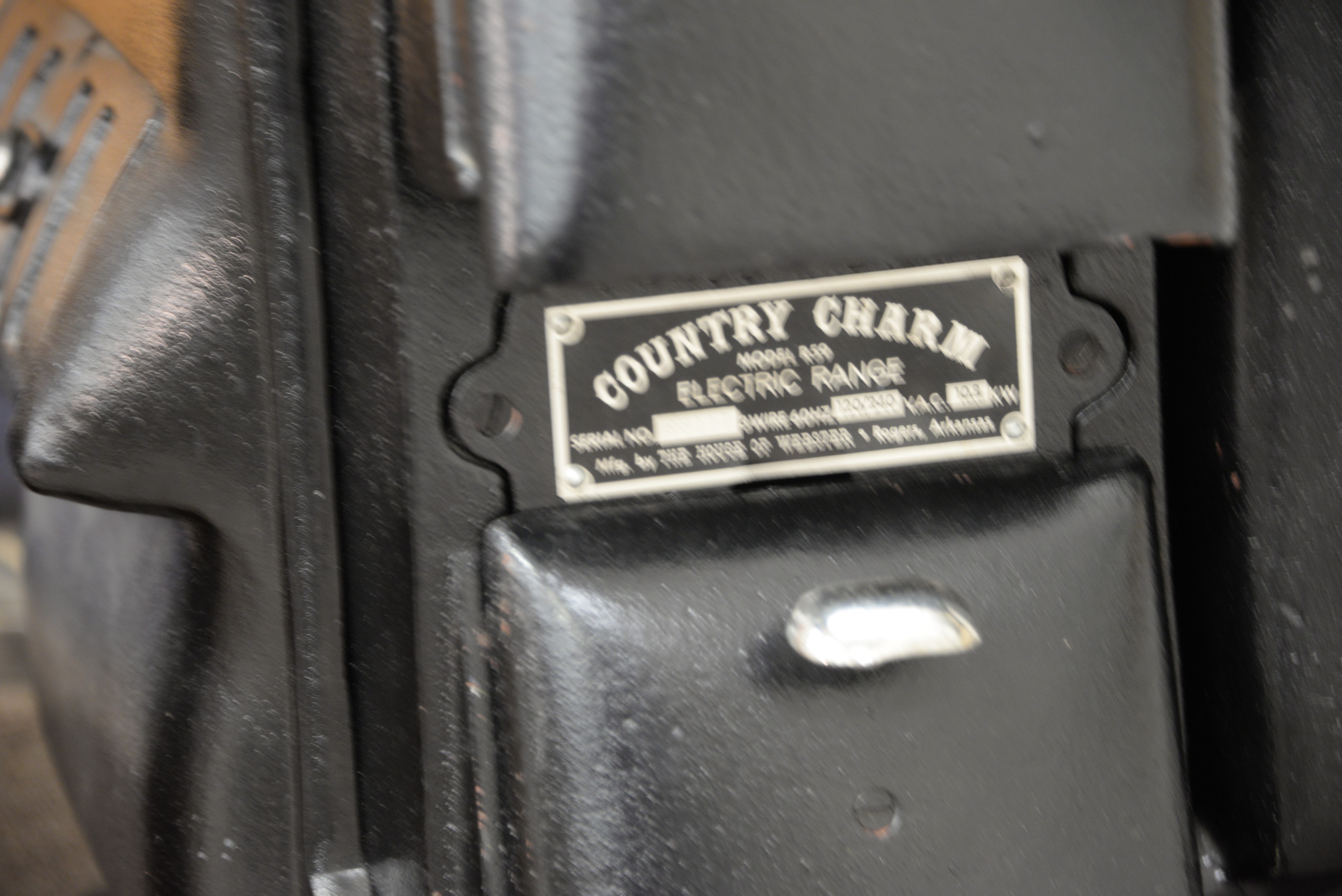 Lot 477: Country Charm Webster cast iron electric stove and oven, model R59. ht. 58 in. wd. 36 in. dp. 21 1/2 in.