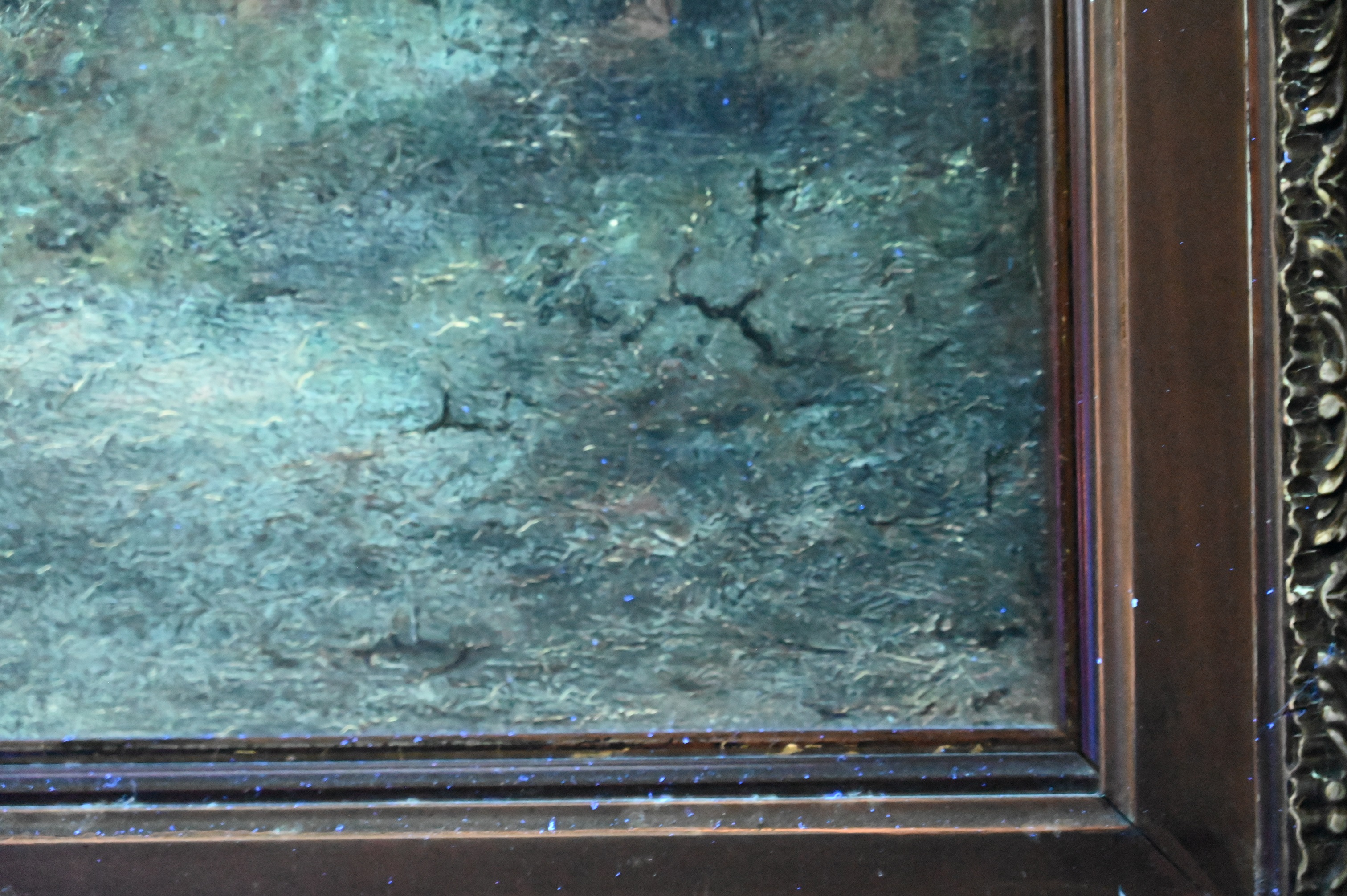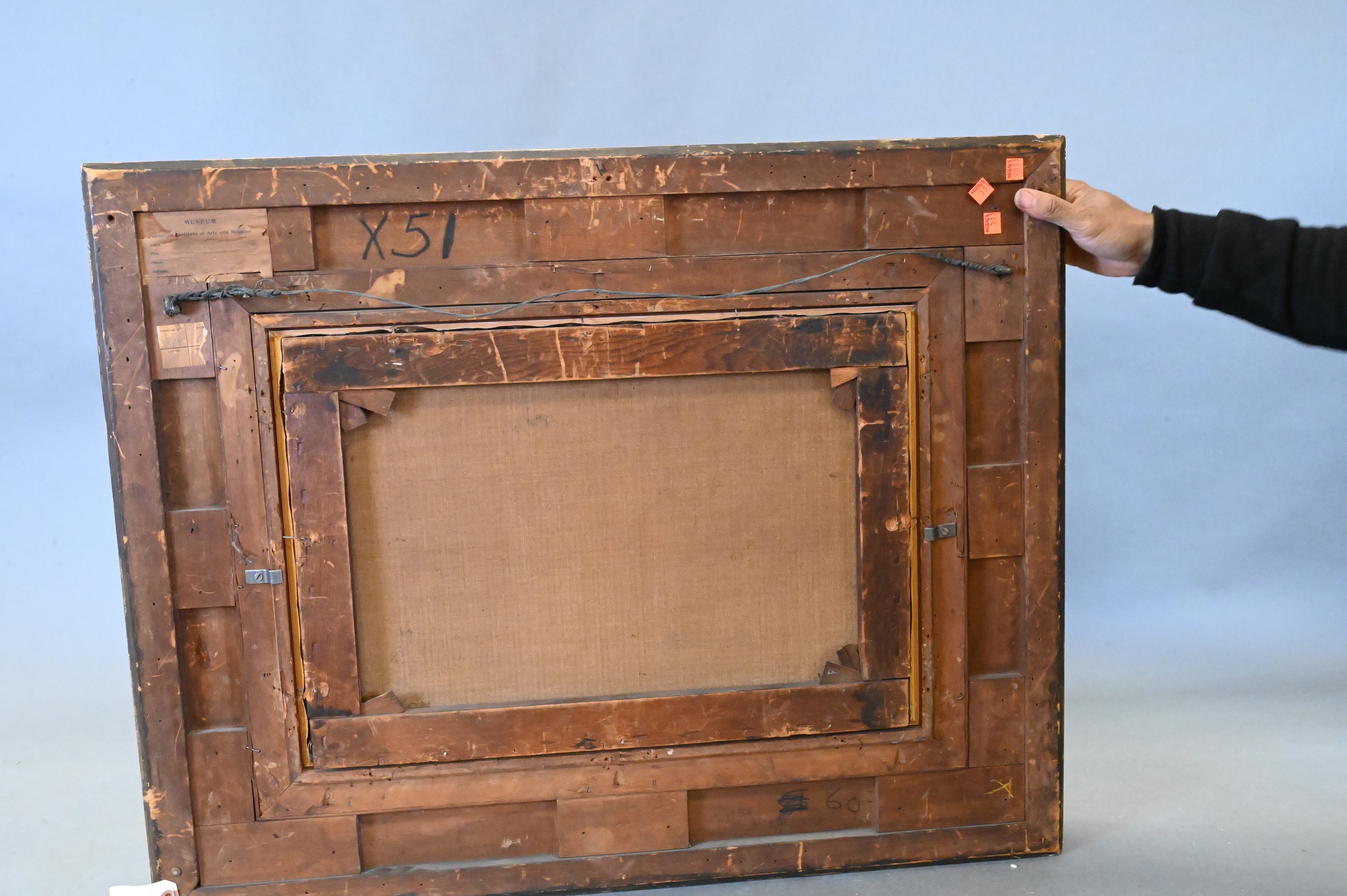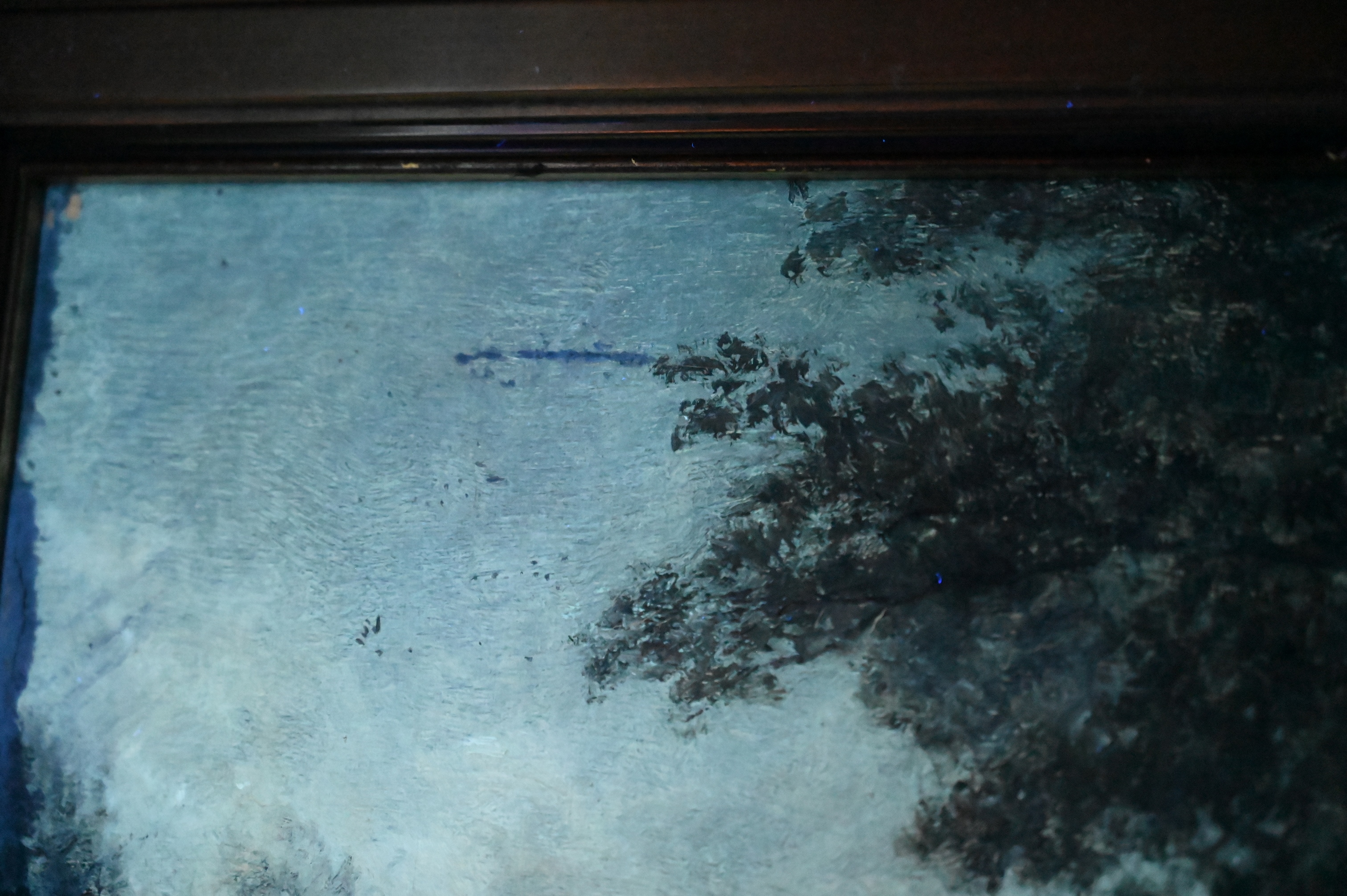 Condition: relined and restretched canvas, craquelure throughout concentrating to left border having flaking paint, and inpainting, repaired horizontal patch to sky, some inpainting visible lower right corner