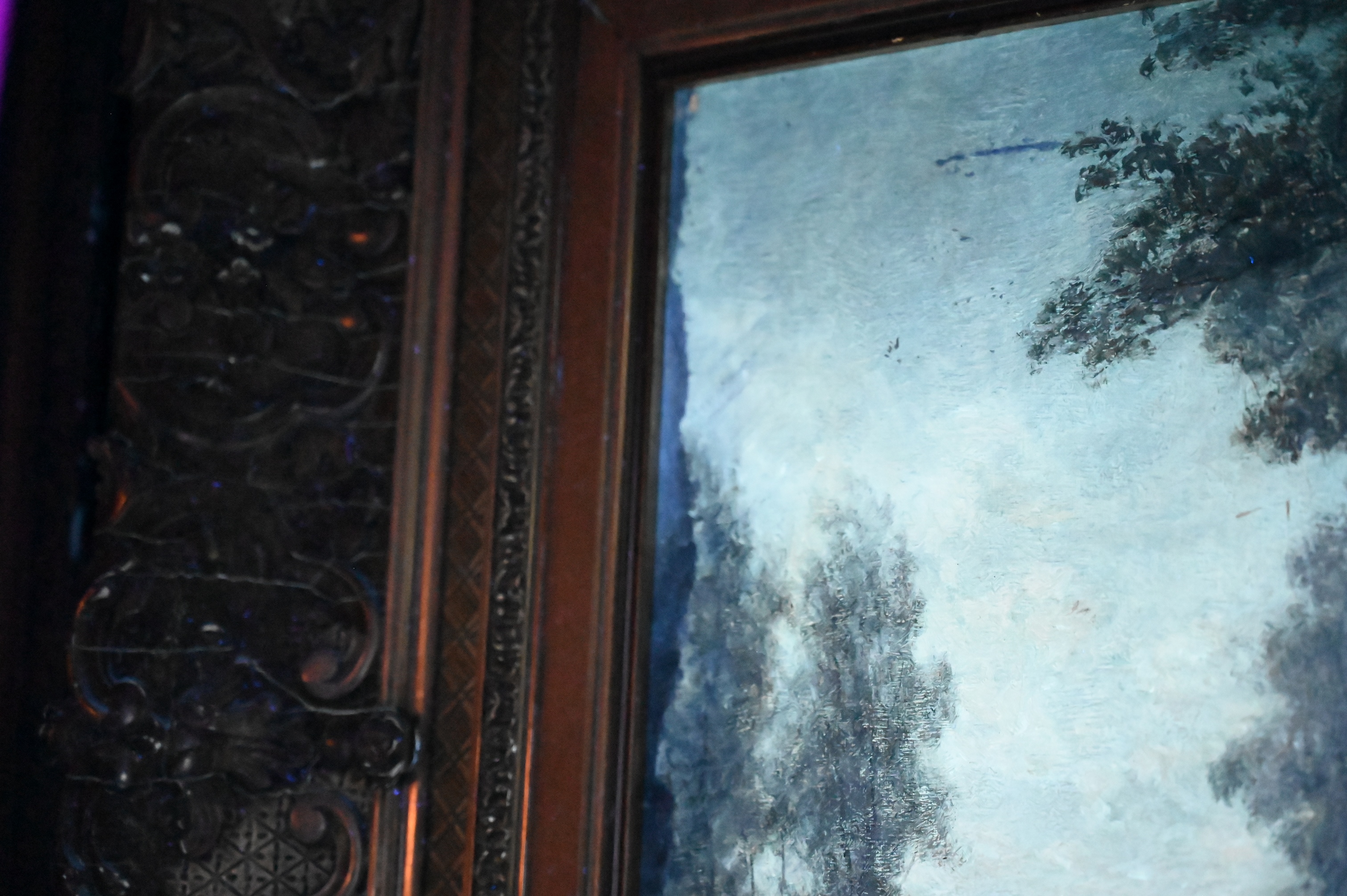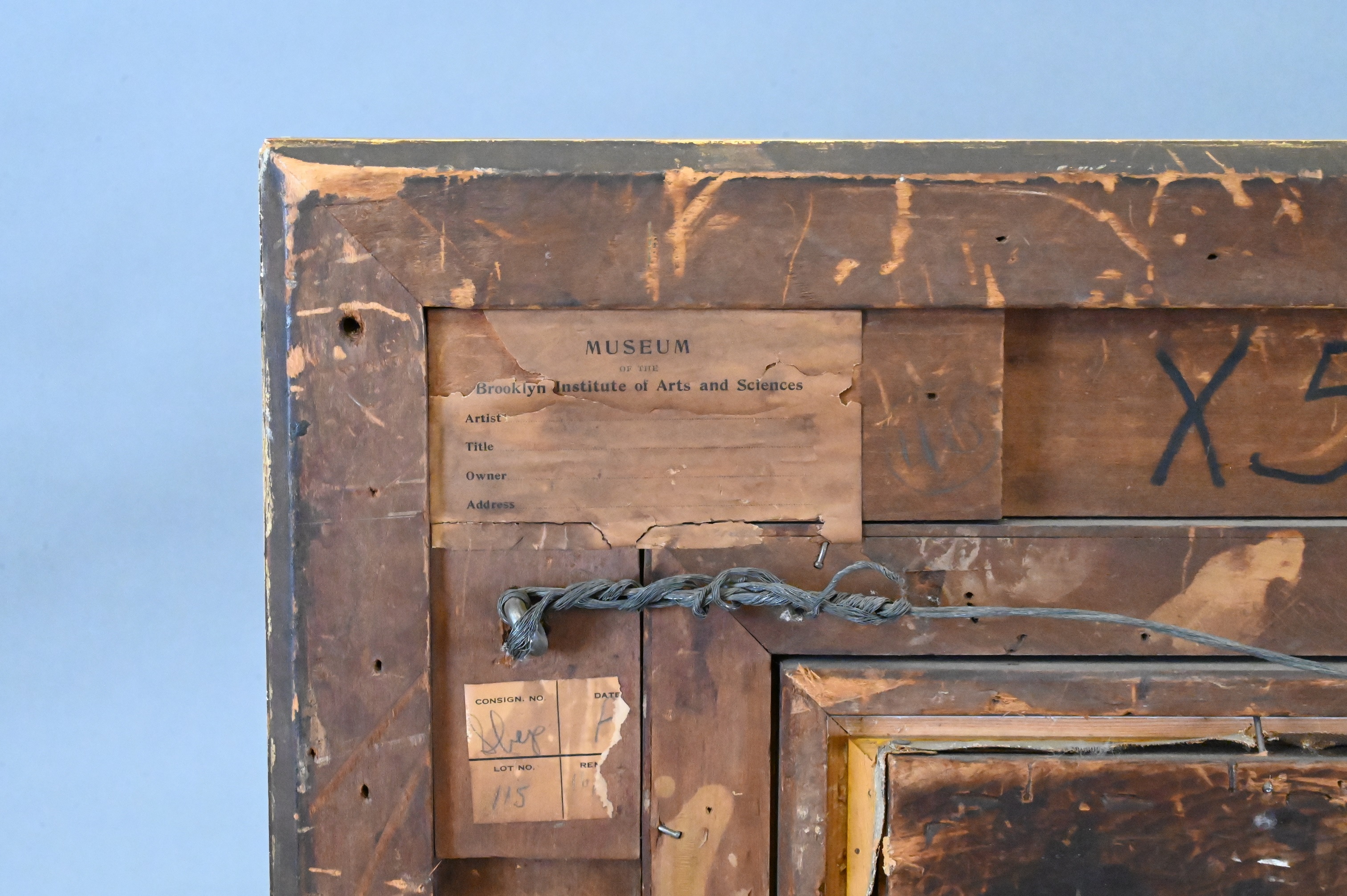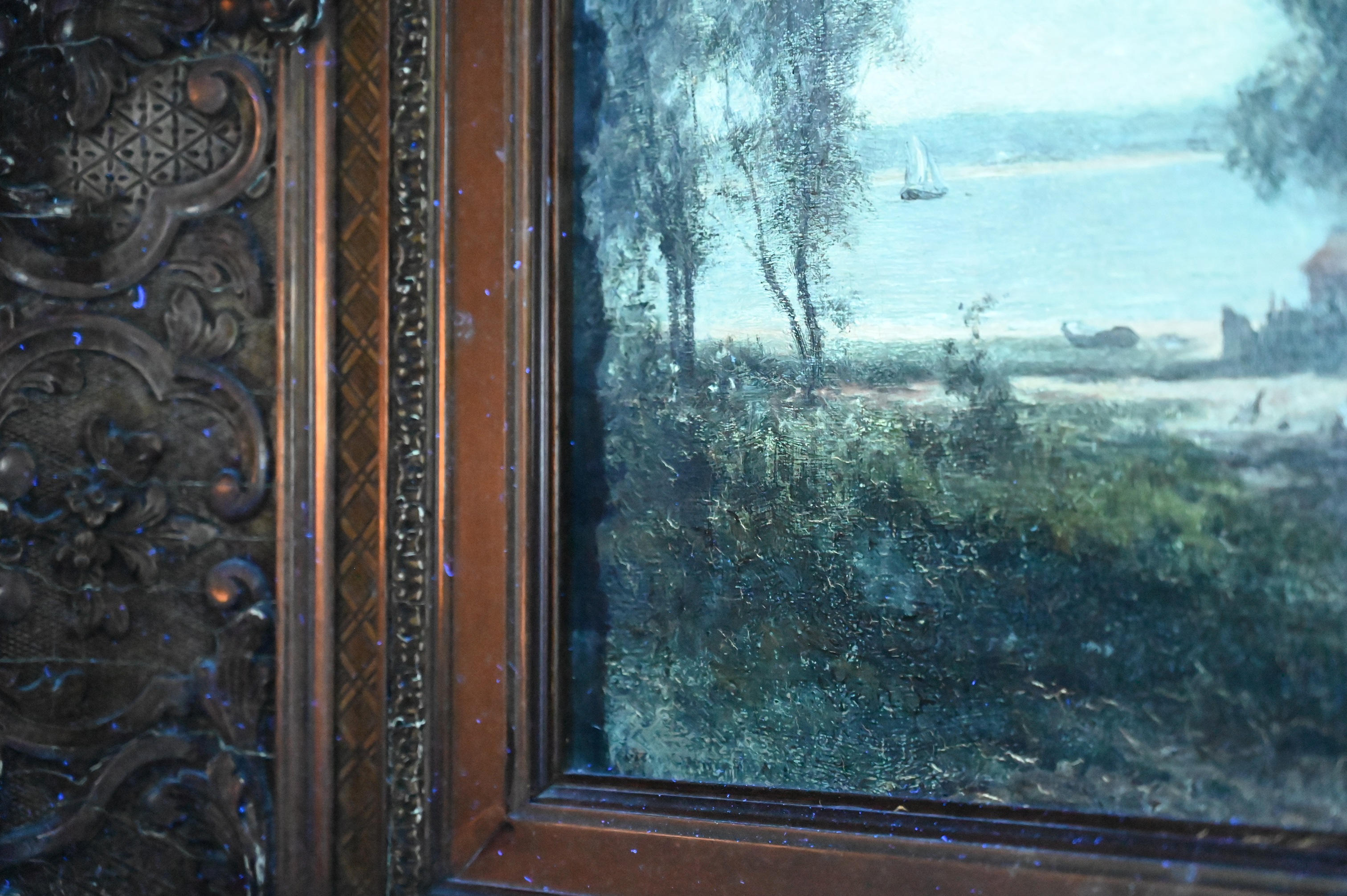 Condition: relined and restretched canvas, craquelure throughout concentrating to left border having flaking paint, and inpainting, repaired horizontal patch to sky, some inpainting visible lower right corner