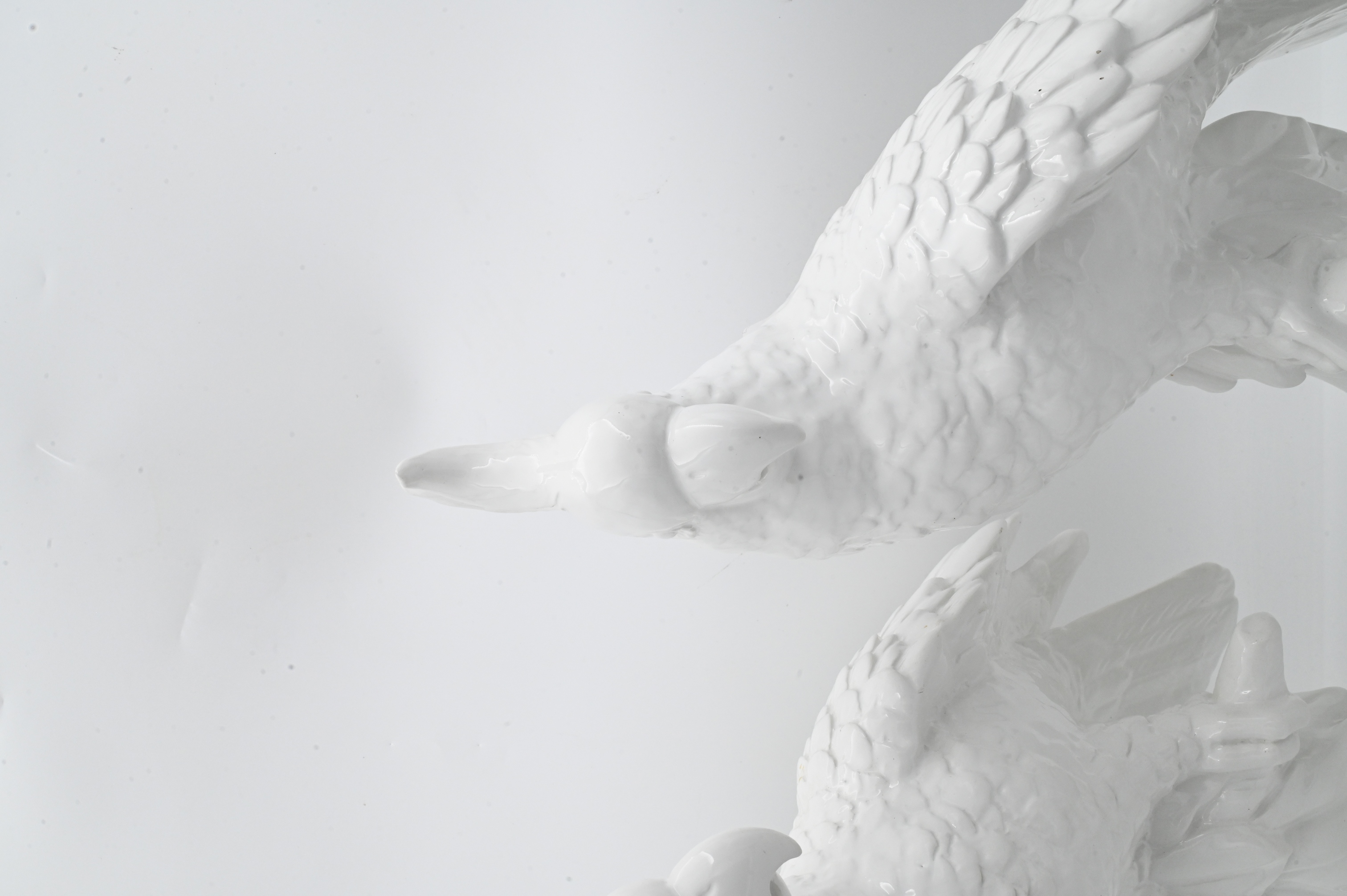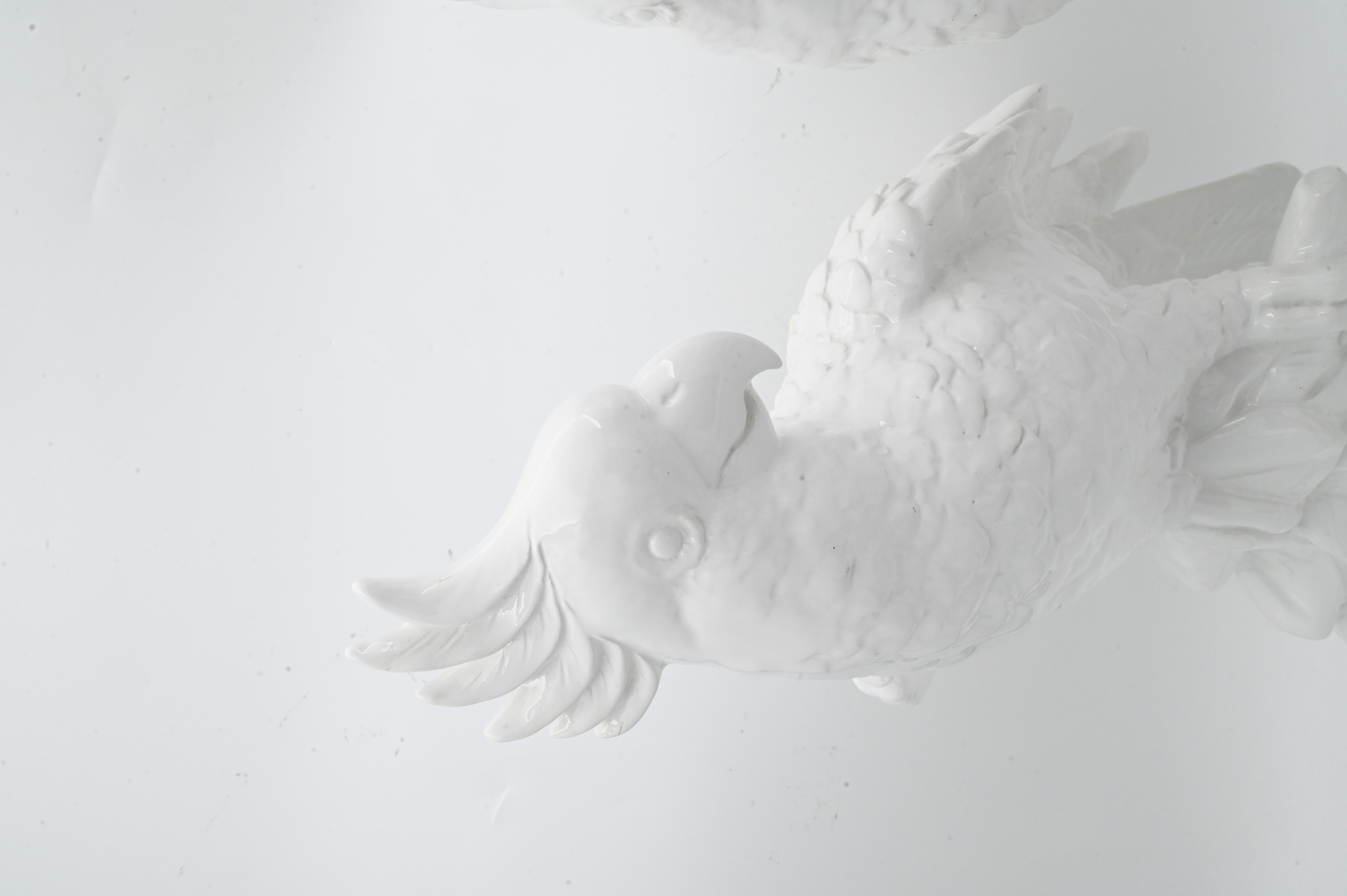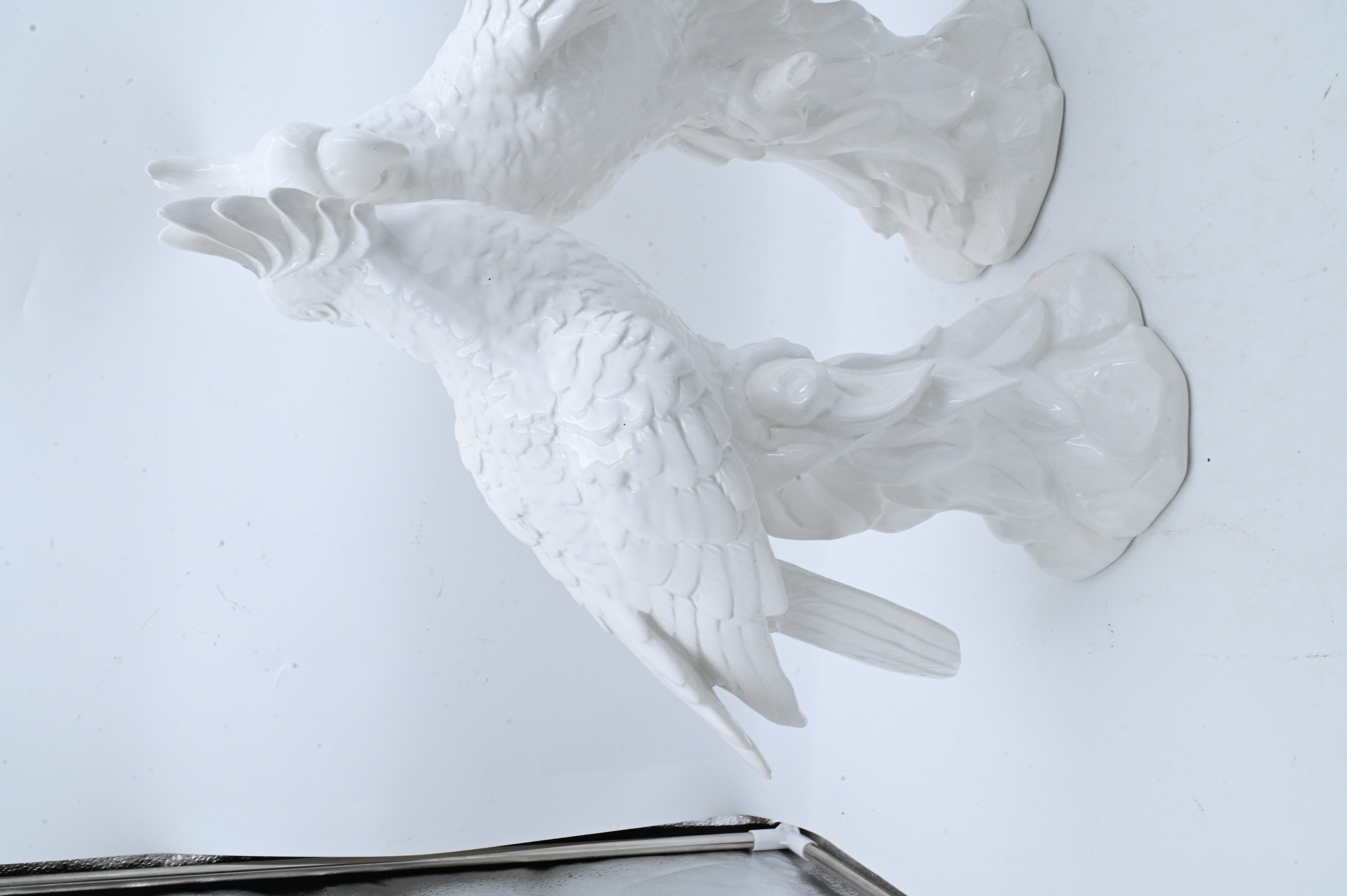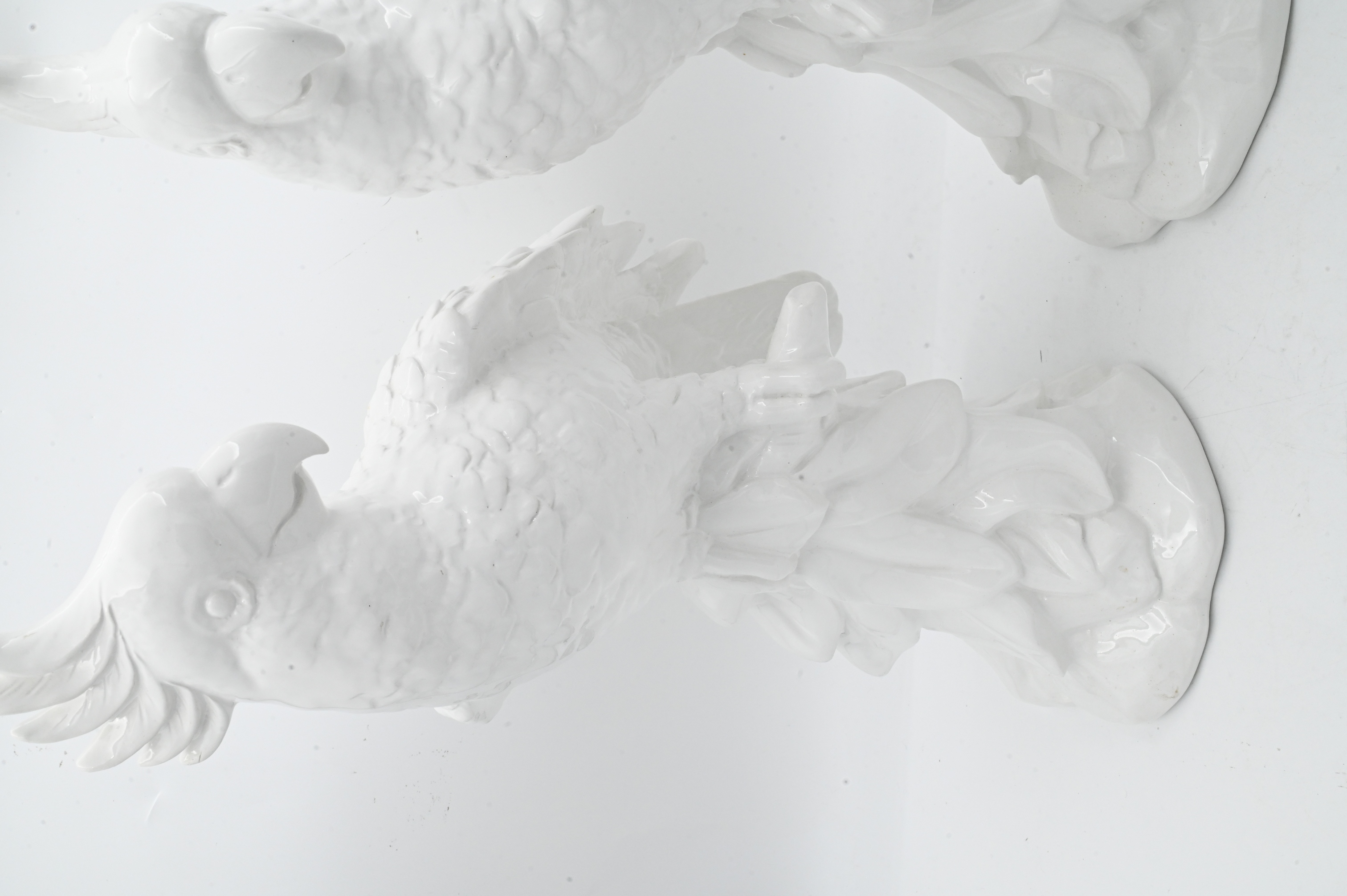 Lot 477: Pair Blanc de Chine Ceramic Cockatoos