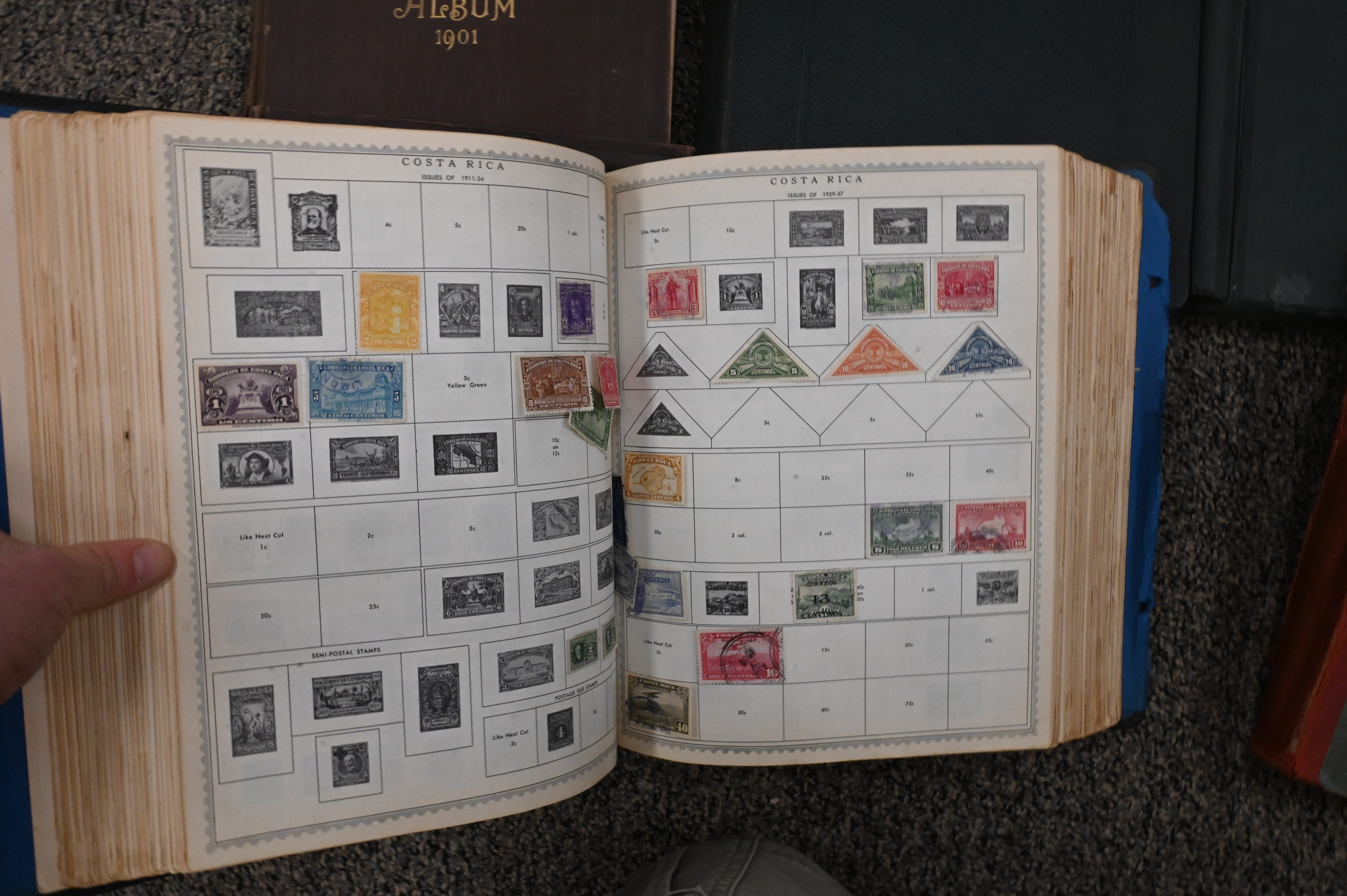 partial books of the International Postage Stamp Album 1901-1902, Scott Stamp and Coin Junior Edition, the Master Globe Album etc…