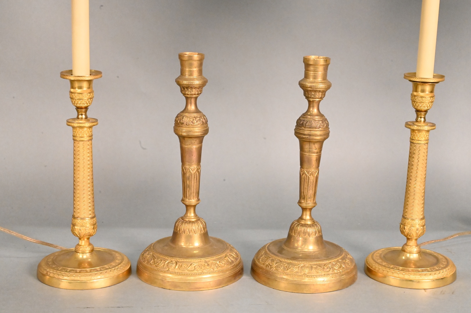Three Pairs of Continental Gilt-Metal Candlesticks