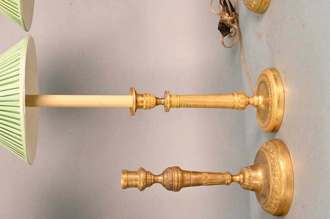 Lot 477: Three Pairs of Continental Gilt-Metal Candlesticks