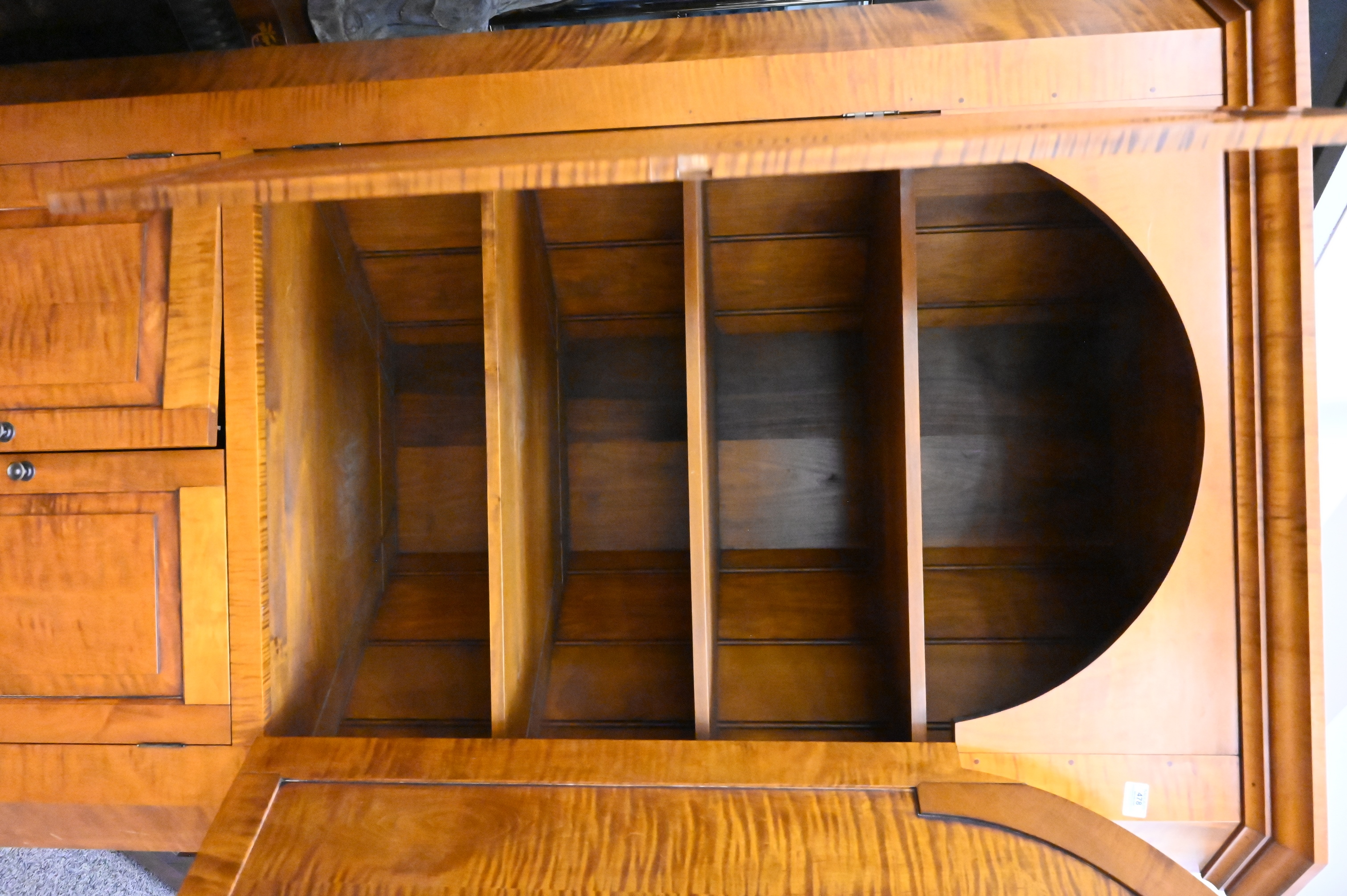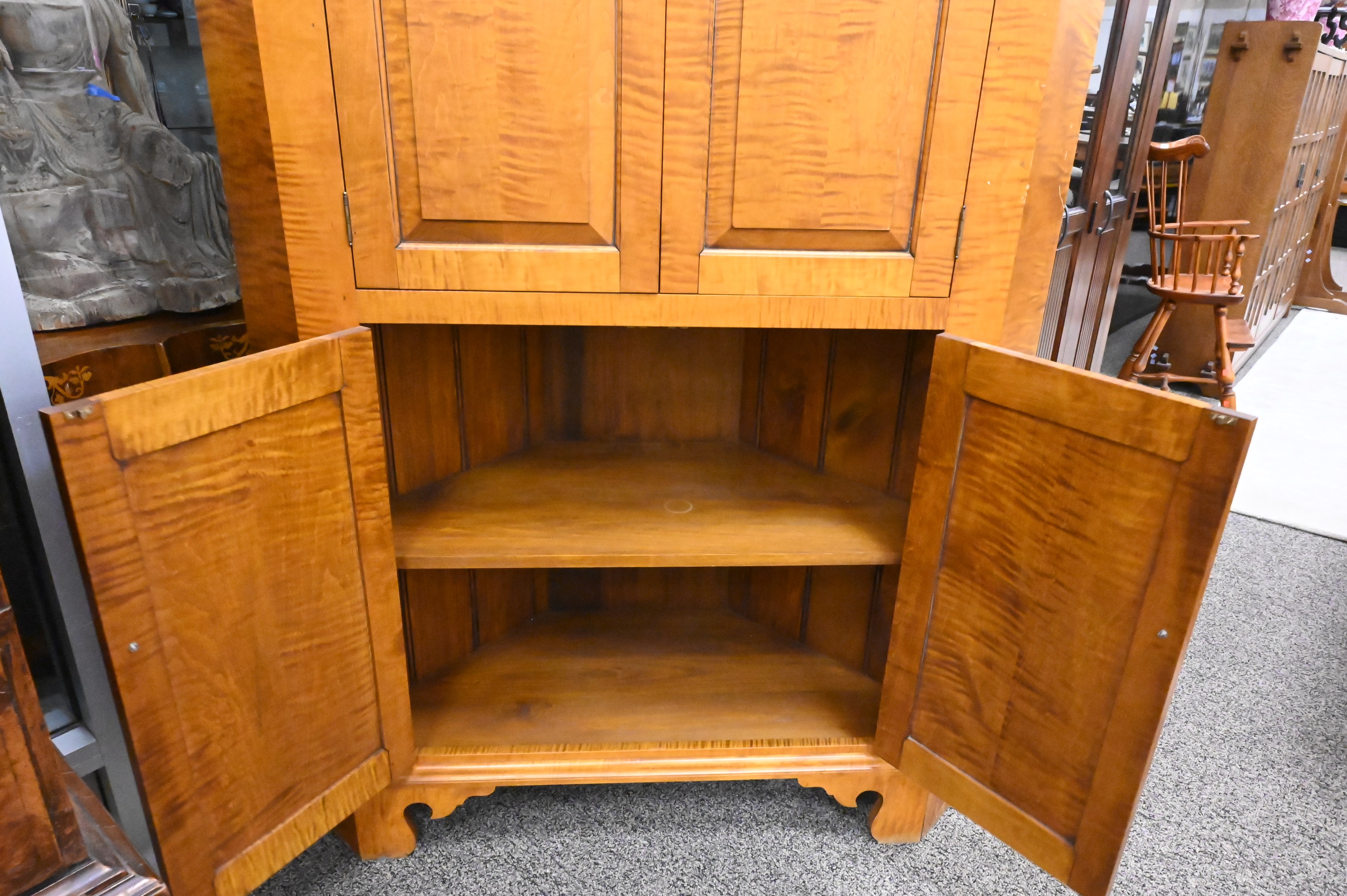 Lot 478: Custom / Benchmade Tiger Maple Corner Cabinet