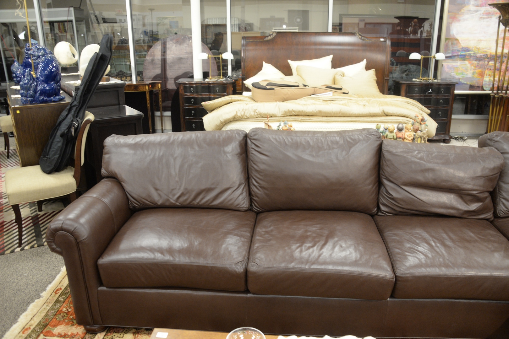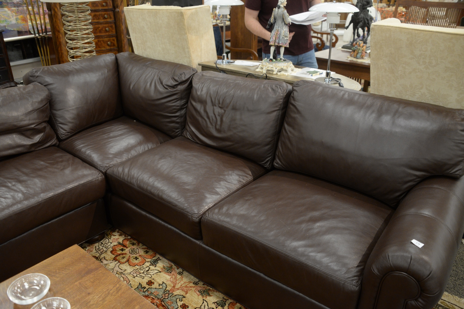 Ethan Allen Leather Sectional Sofa, height 31 inches, 106″ x 128″.