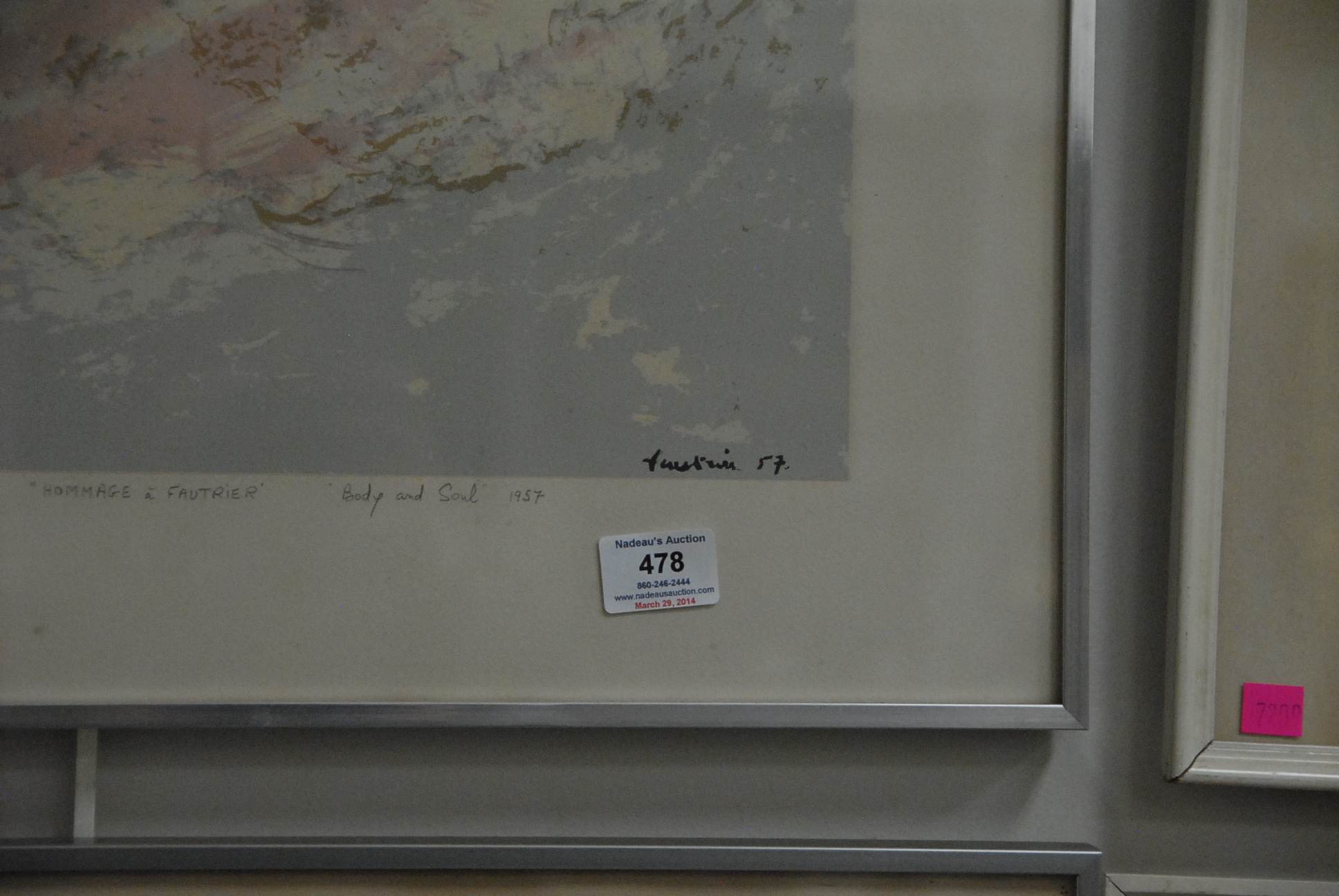 Lot 478: Jean Fautrier 1898-1964 BODY AND SOUL lithograph signed lower right in print Fautrier 57 titled lower right Body and Soul marked bottom center in pencil Hommage a Fautrier 14 x 19
