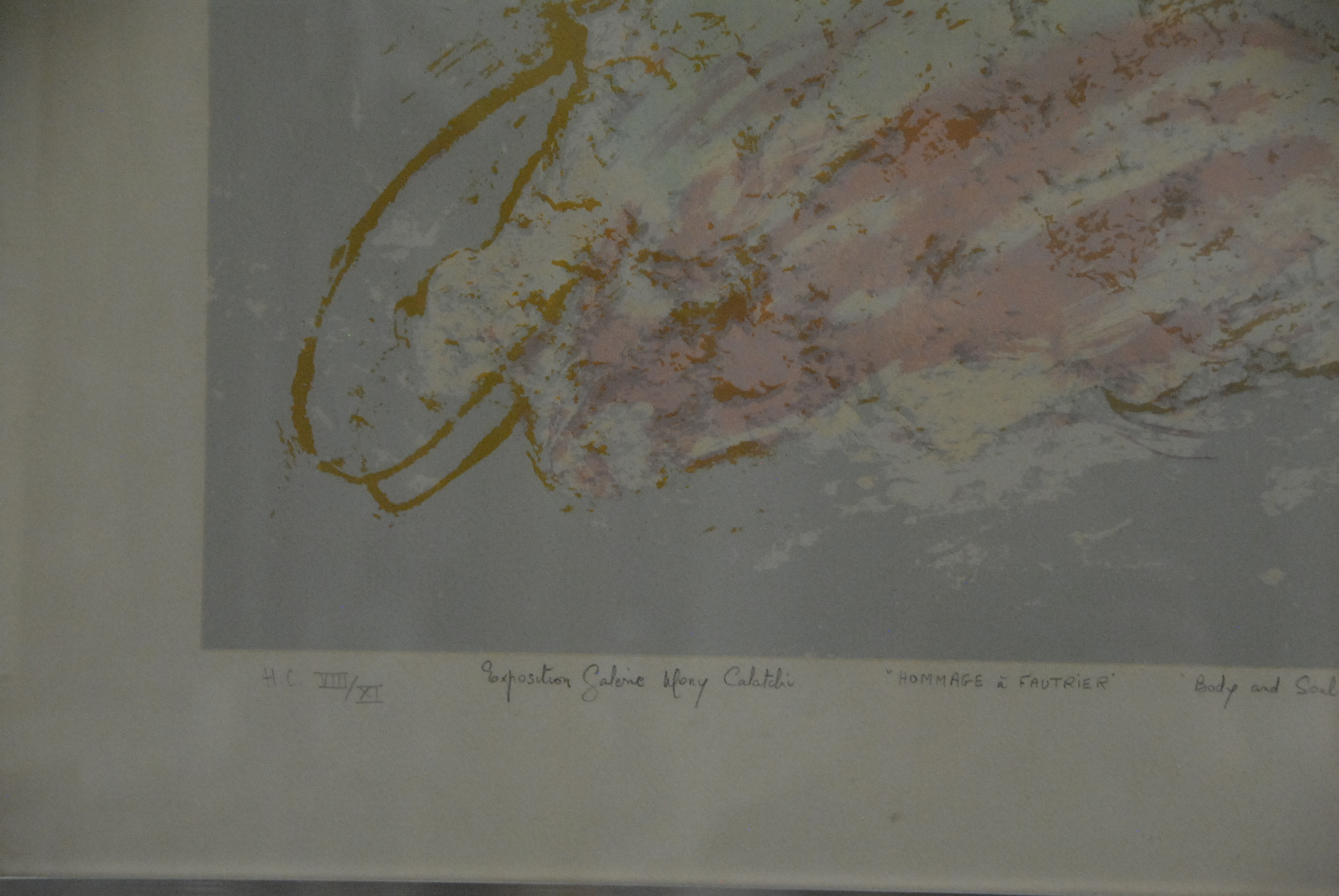 Jean Fautrier 1898-1964 BODY AND SOUL lithograph signed lower right in print Fautrier 57 titled lower right Body and Soul marked bottom center in pencil Hommage a Fautrier 14 x 19