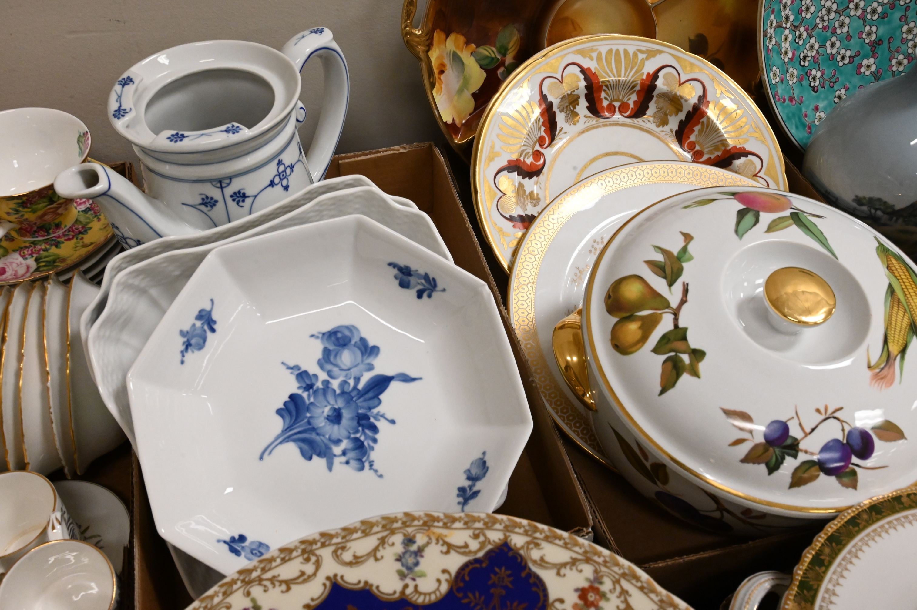 to include Wedgwood, Royal Worcester, Limoges, Royal Copenhagen Blue Onion Service, trinket boxes, plates, tea cups, platters, etcetera