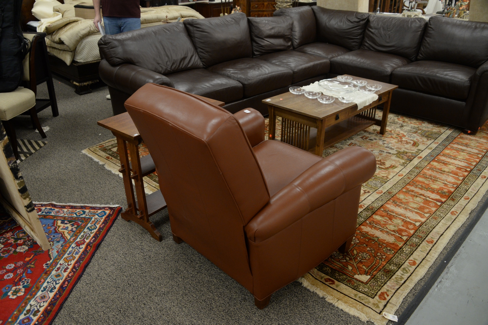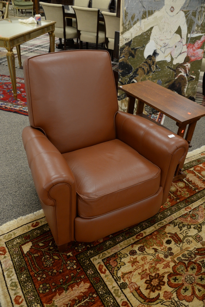 Ethan Allen Leather Reclining Chair, height 36 inches, width 36 inches.